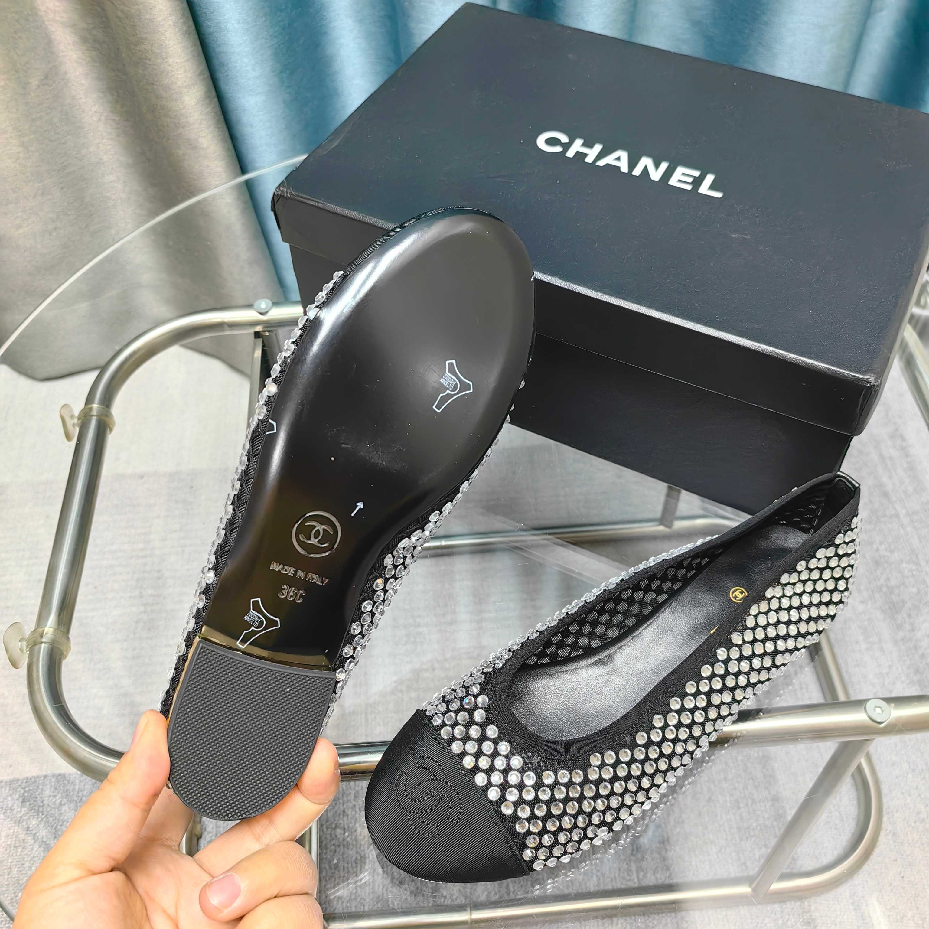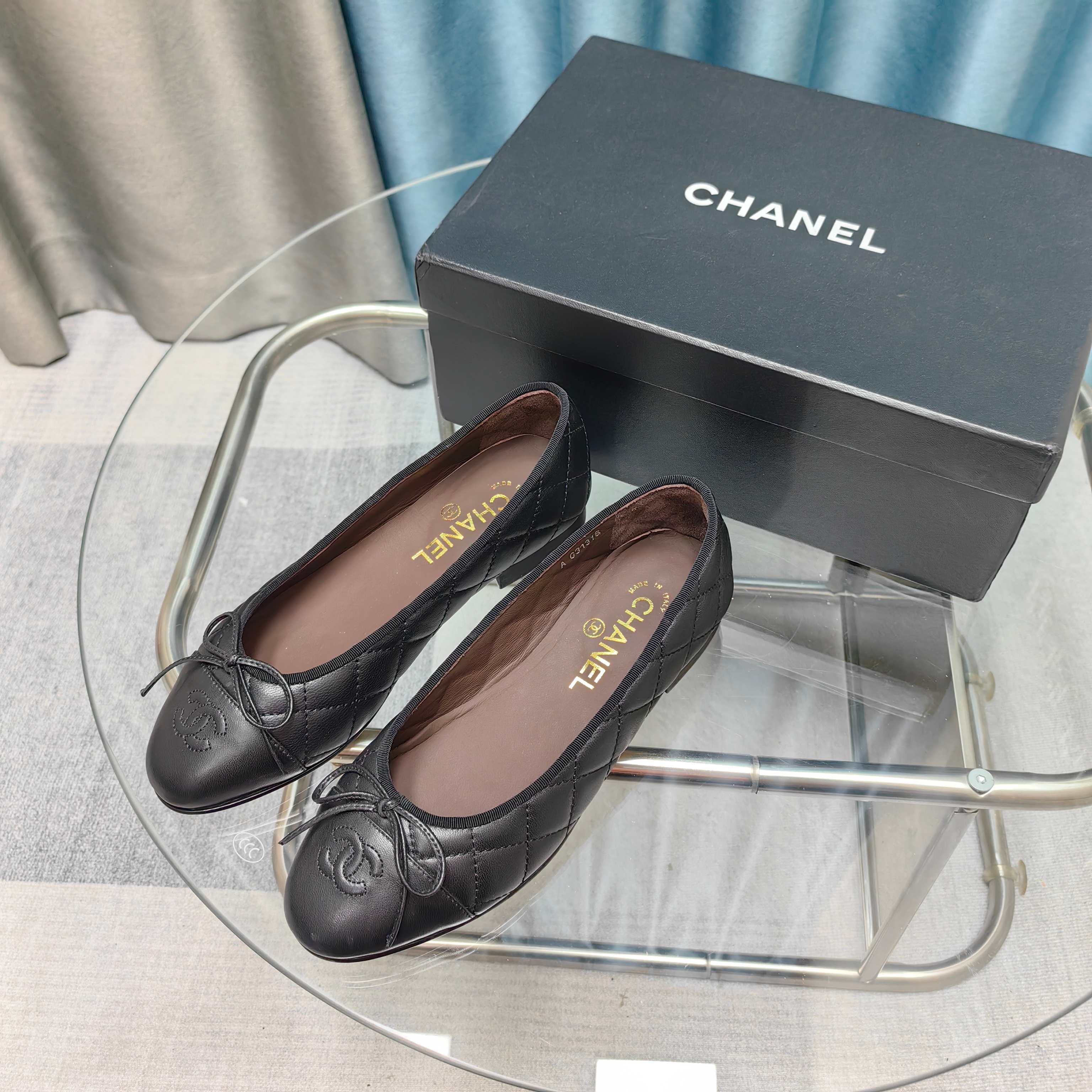 CC 25 Cambon Ballet Flat Black Quilted Calfskin