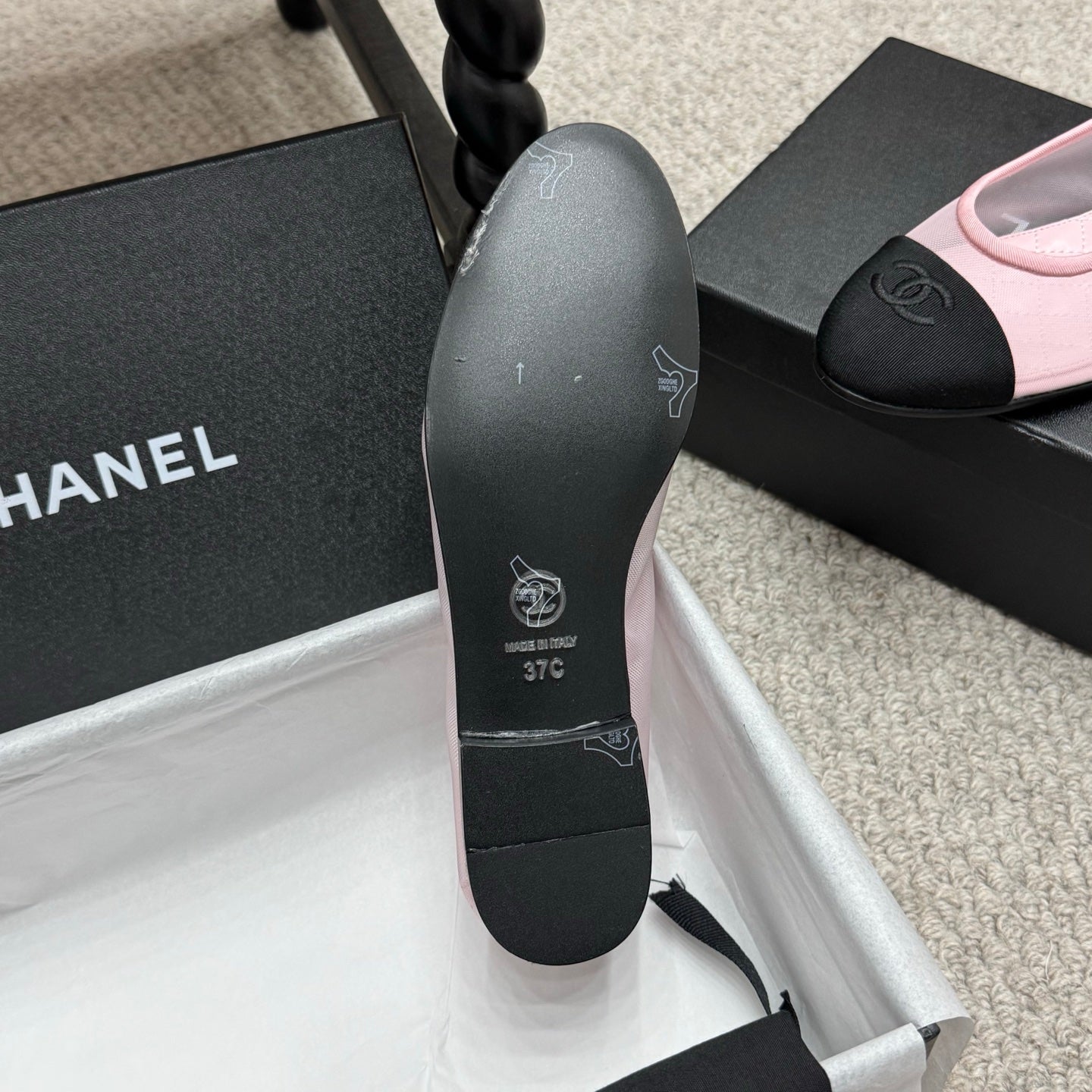 CC 25P Ballet Flat Pink Calfskin Black Grosgrain