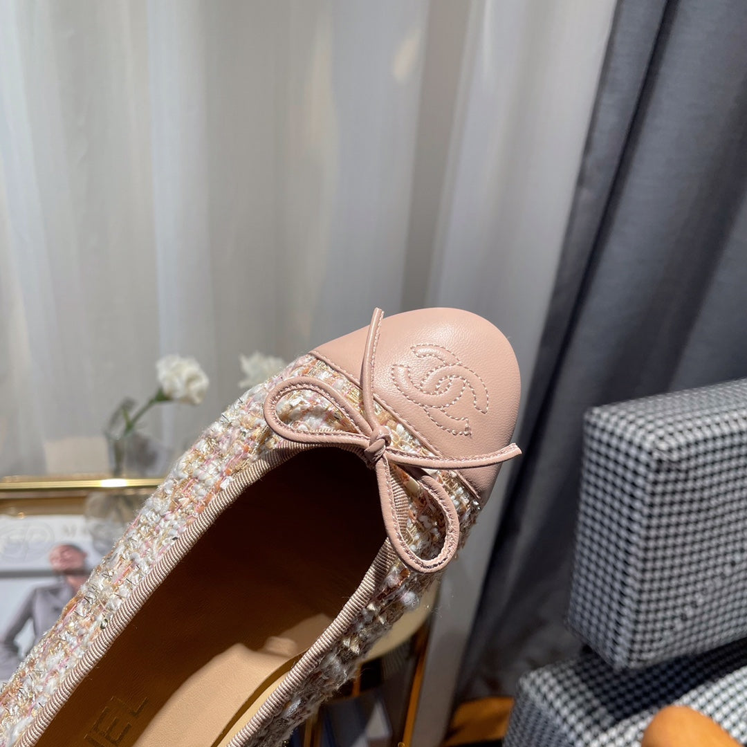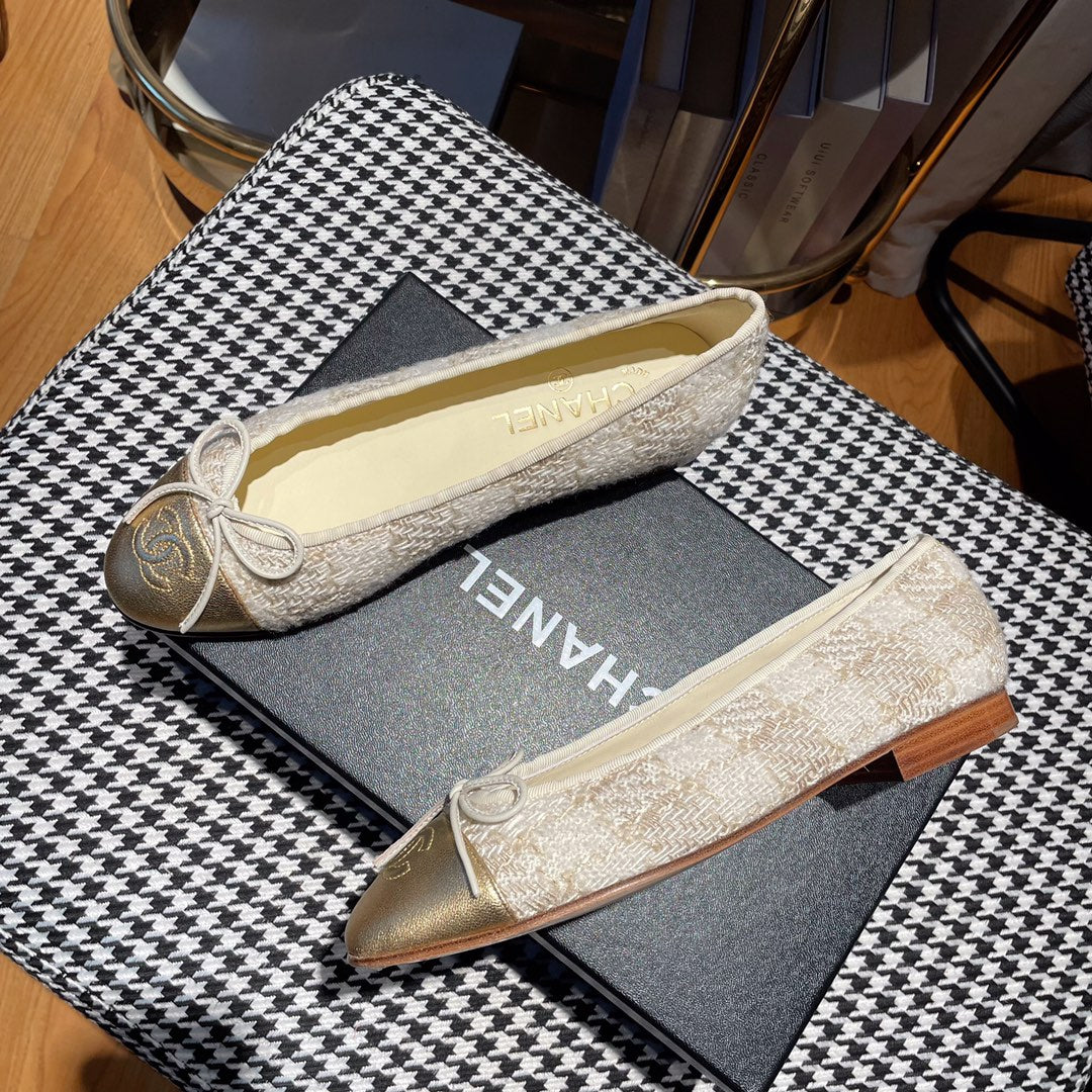 BALLET FLAT BEIGE CREAM CALFSKIN AND FABRIC