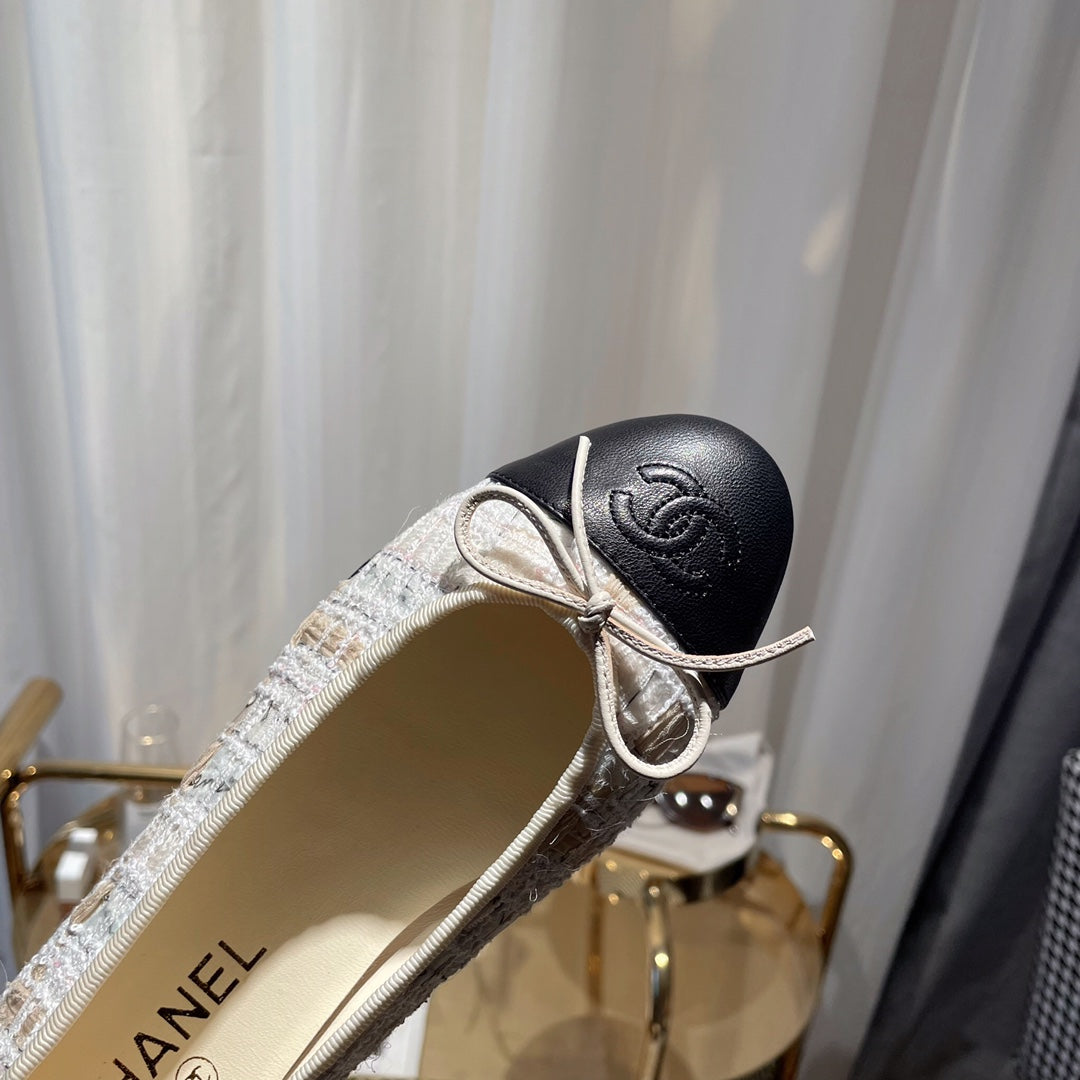 Chanel 25A Ballet Flats Big Chain Double C White Black Sheepskin 393819