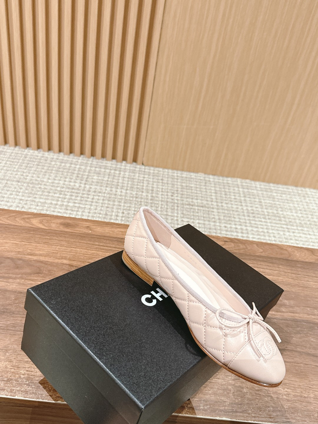 ballet flat powder pink quilted lambskin