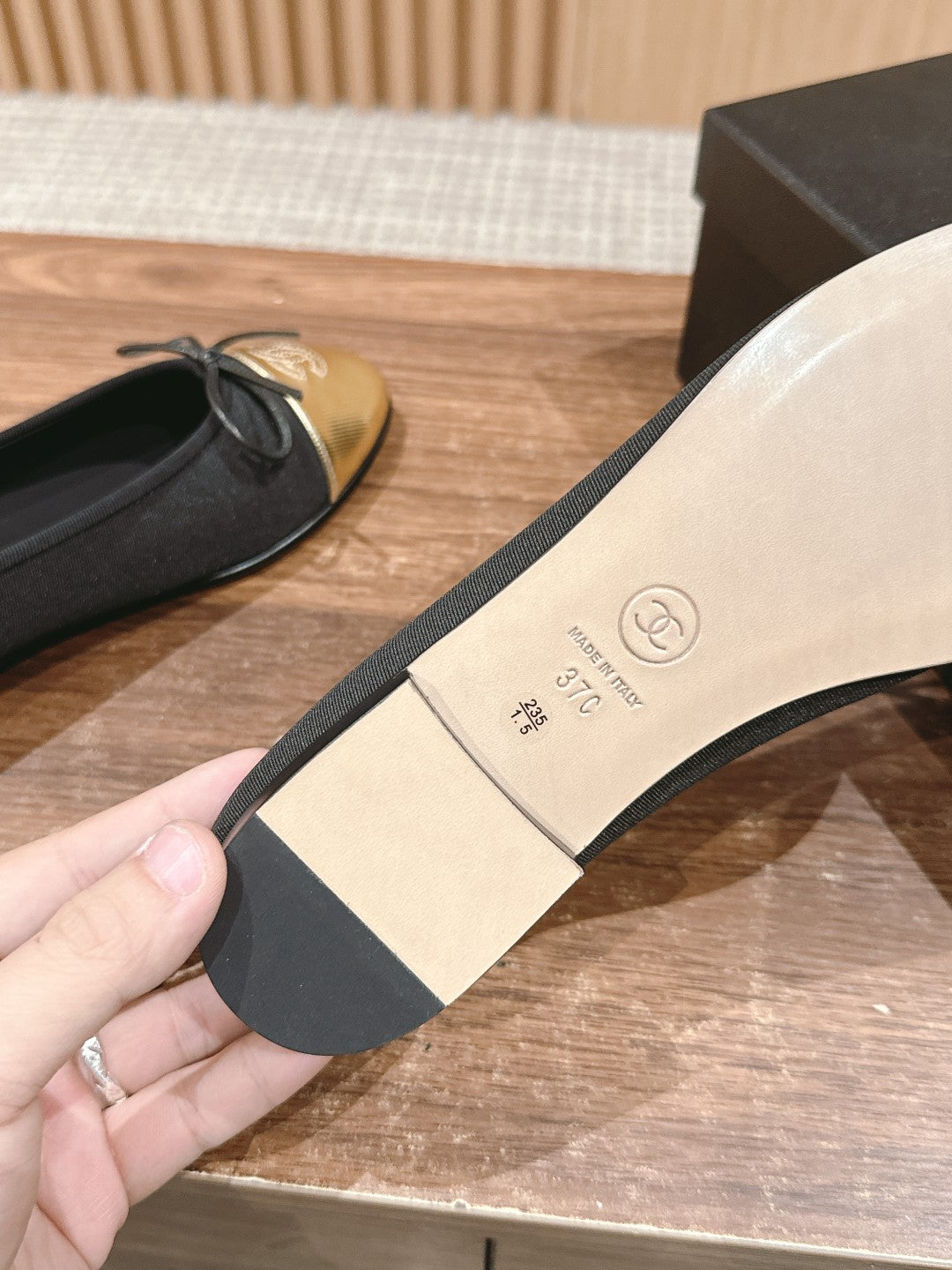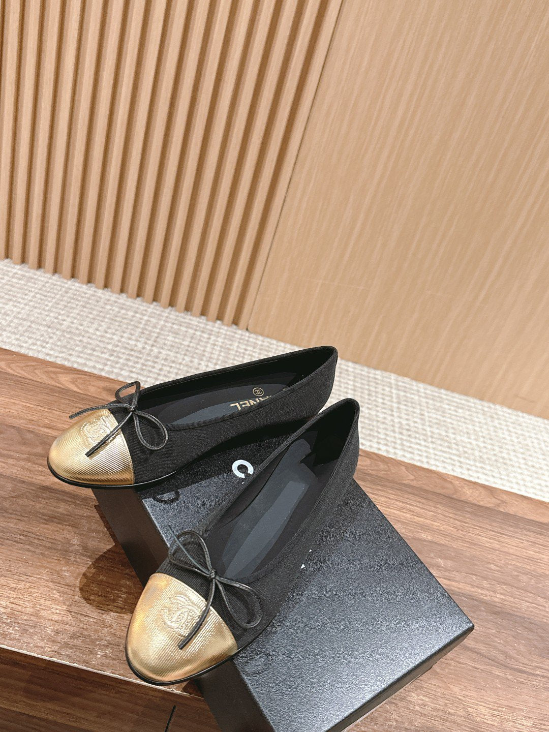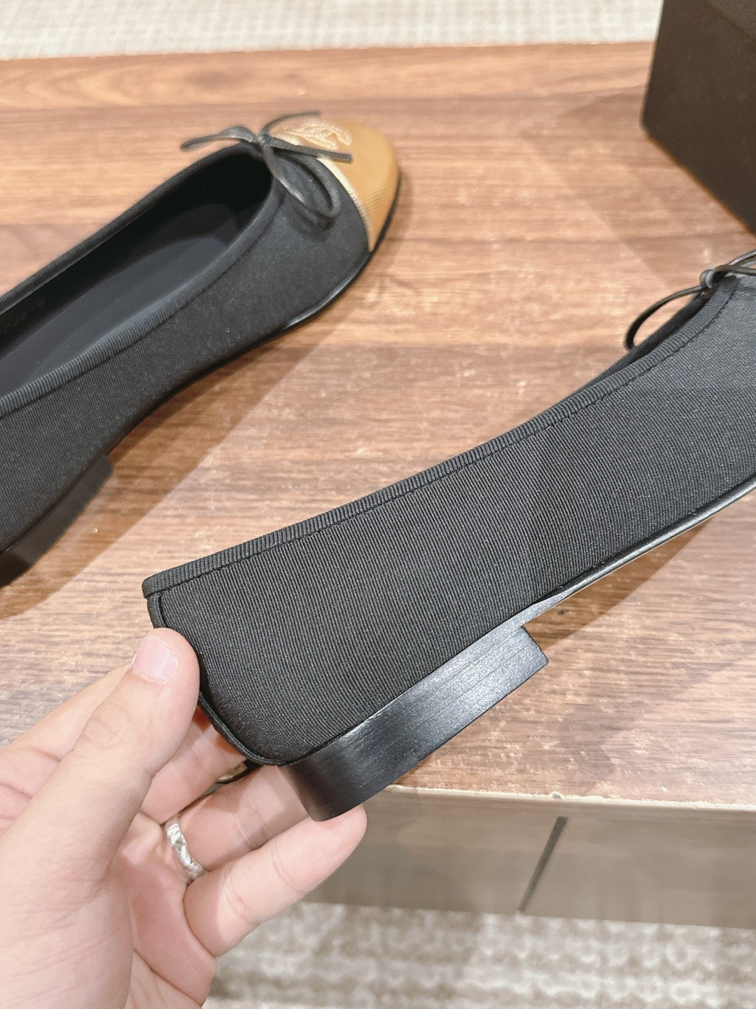 ballet flats beige lambskin black patent calfskin