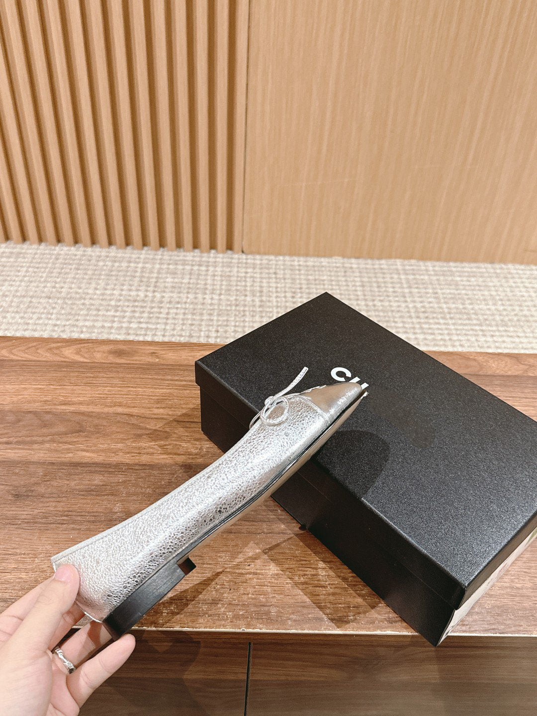 ballet flat silver metalic calfskin