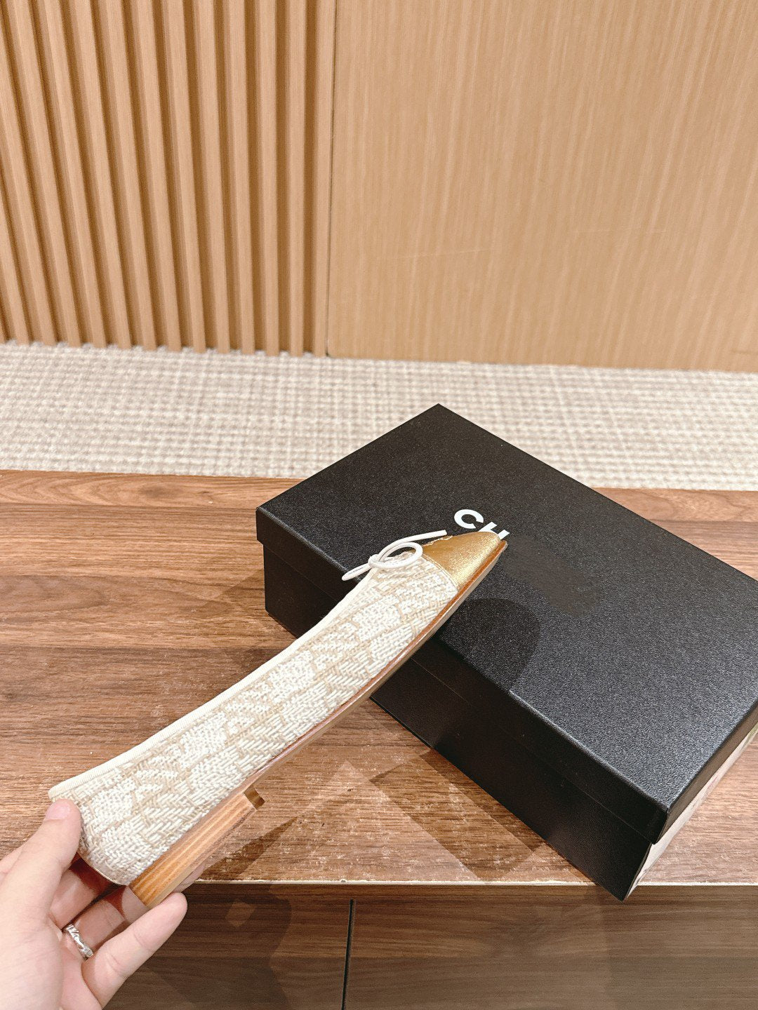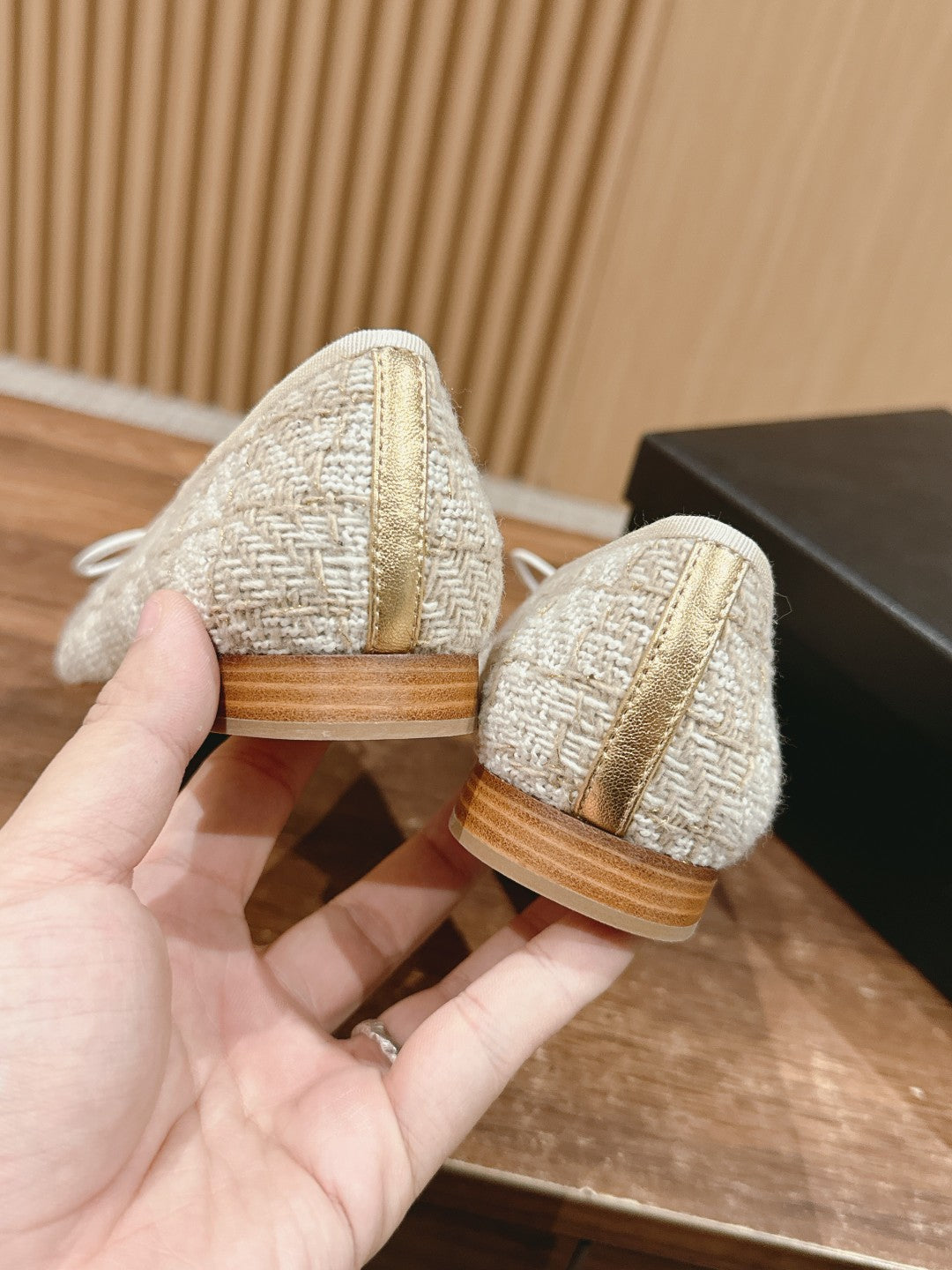 ballet flat black gold tweed metal calfskin