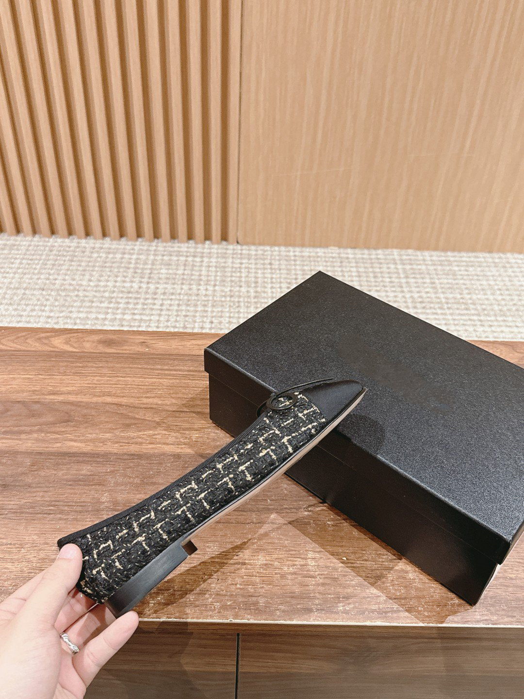 ballet flat black white tweed lambskin