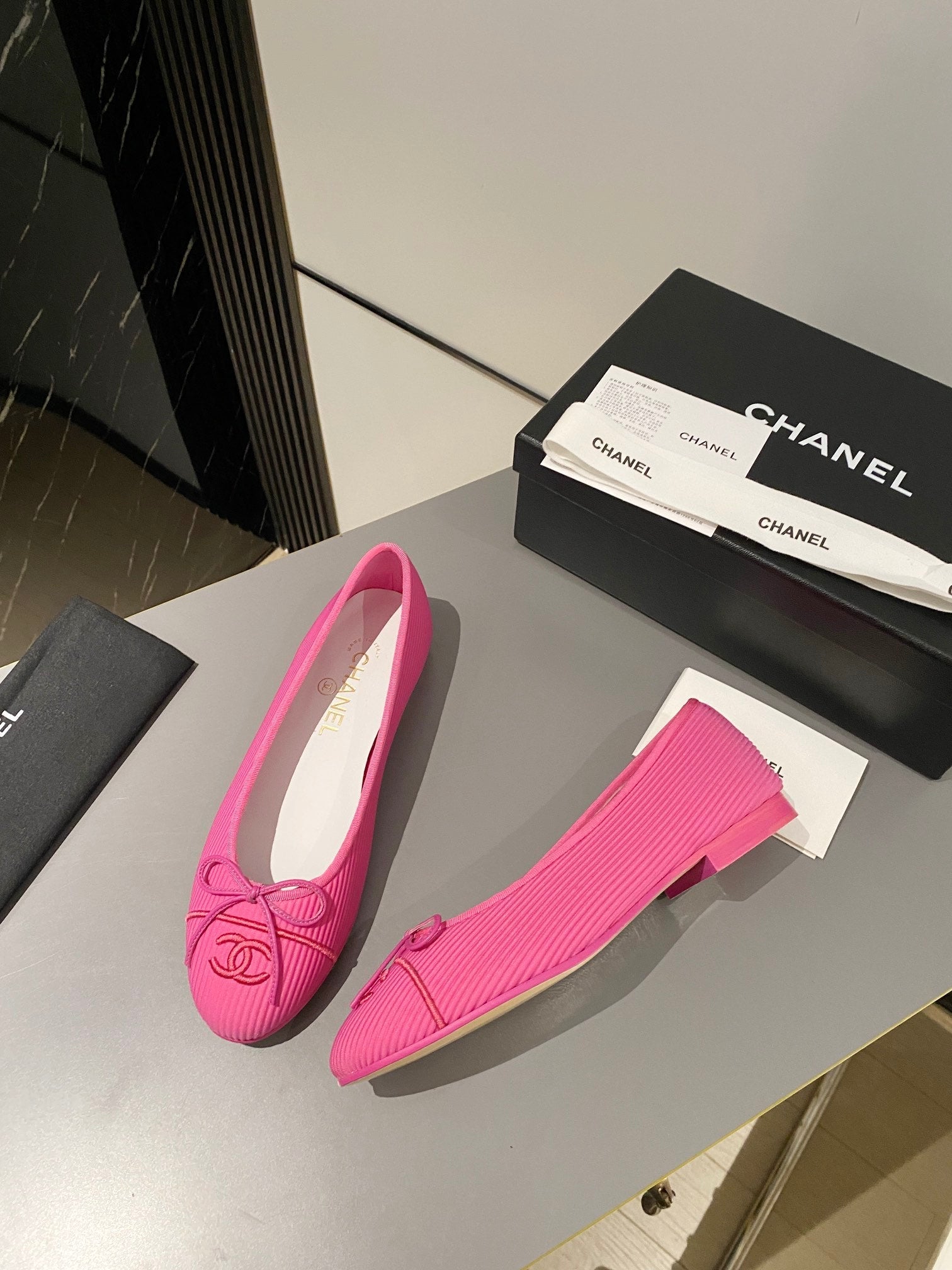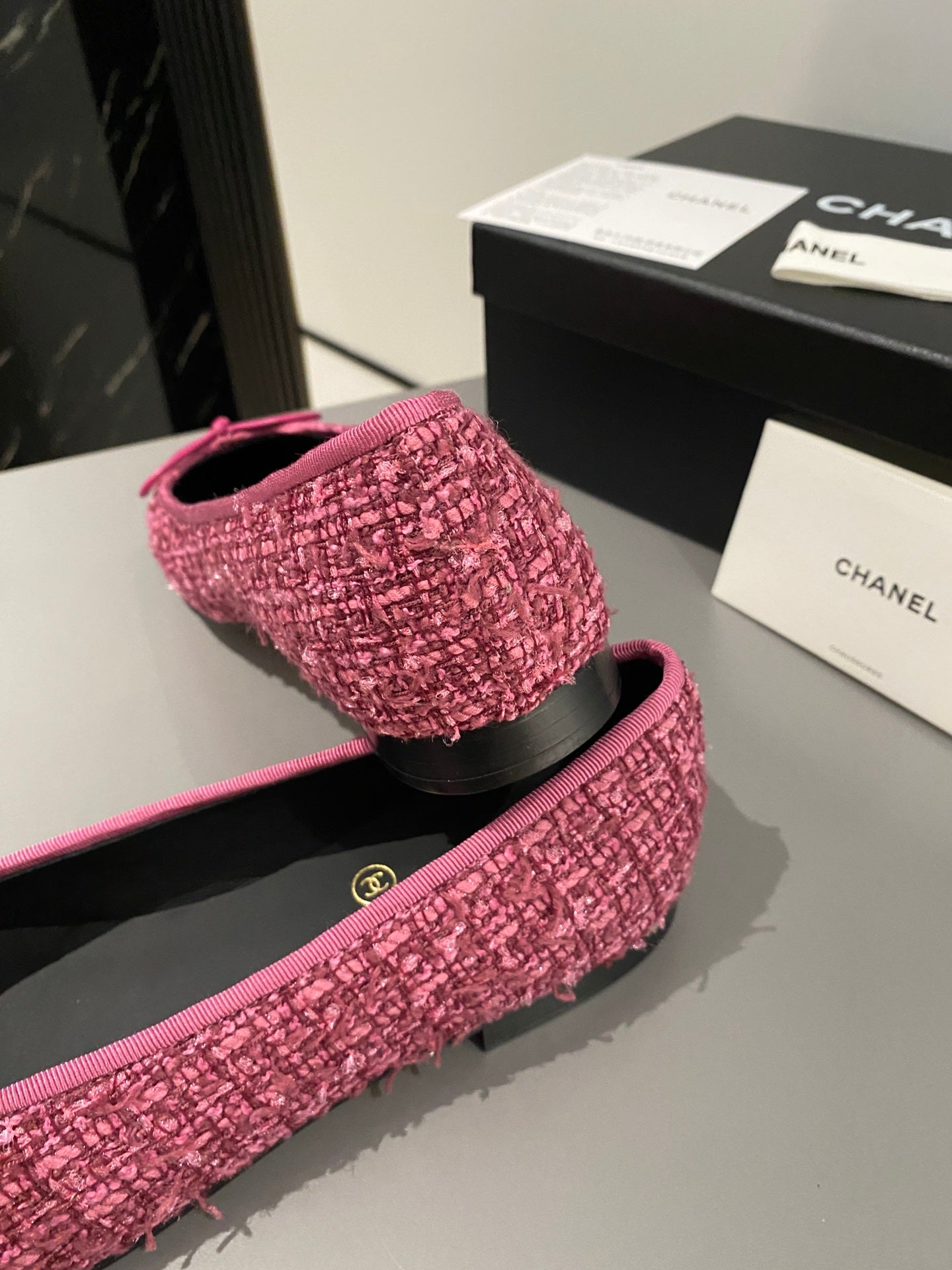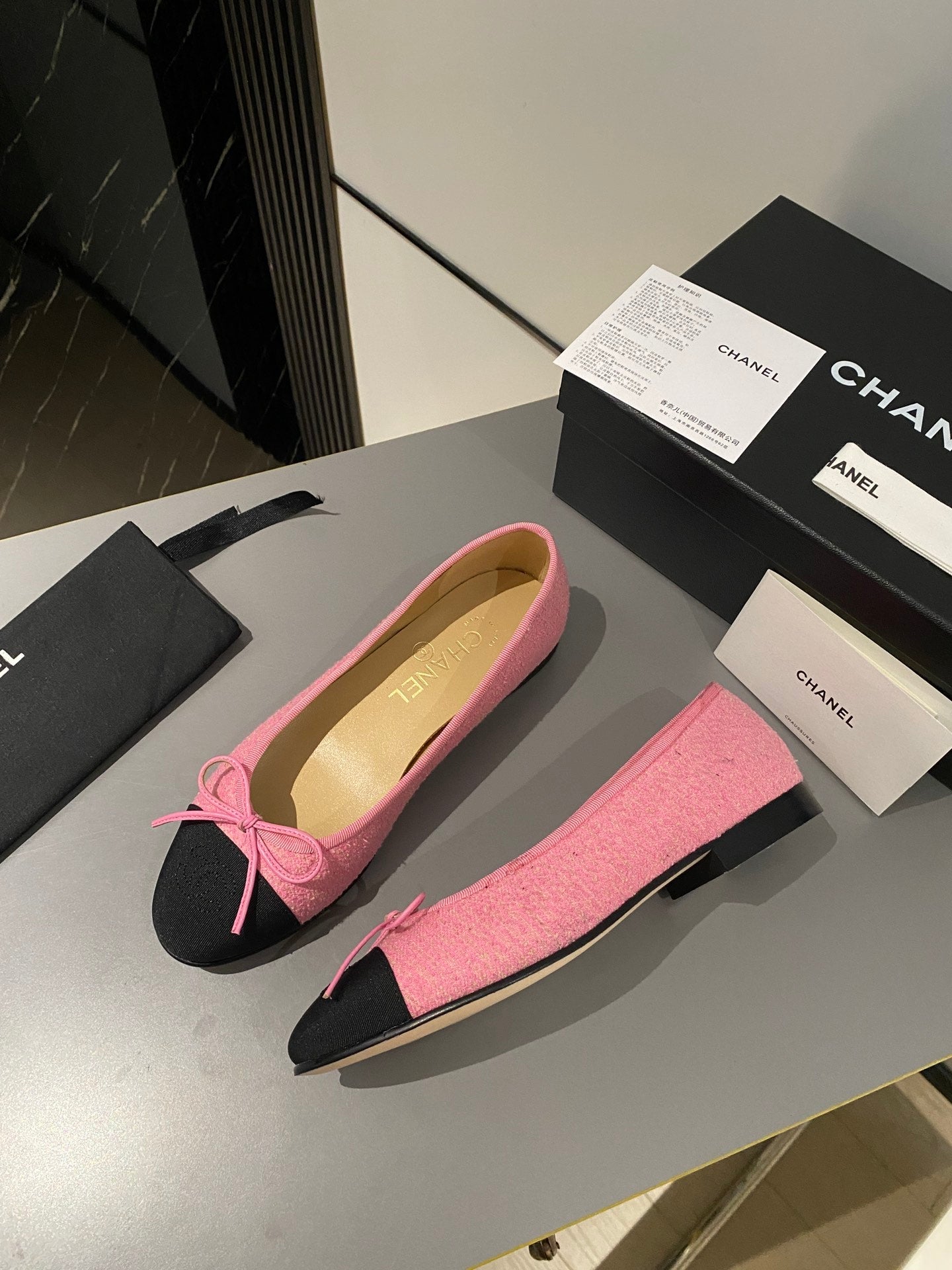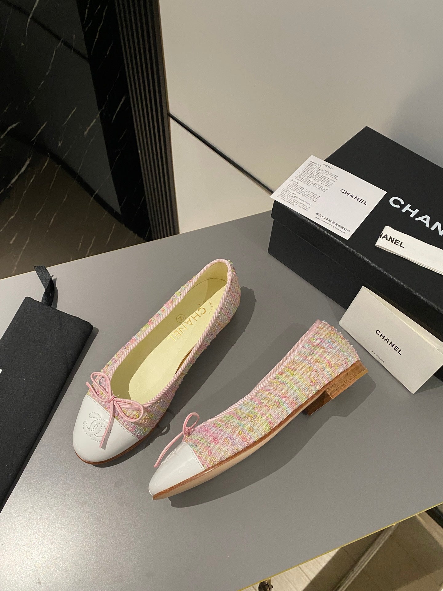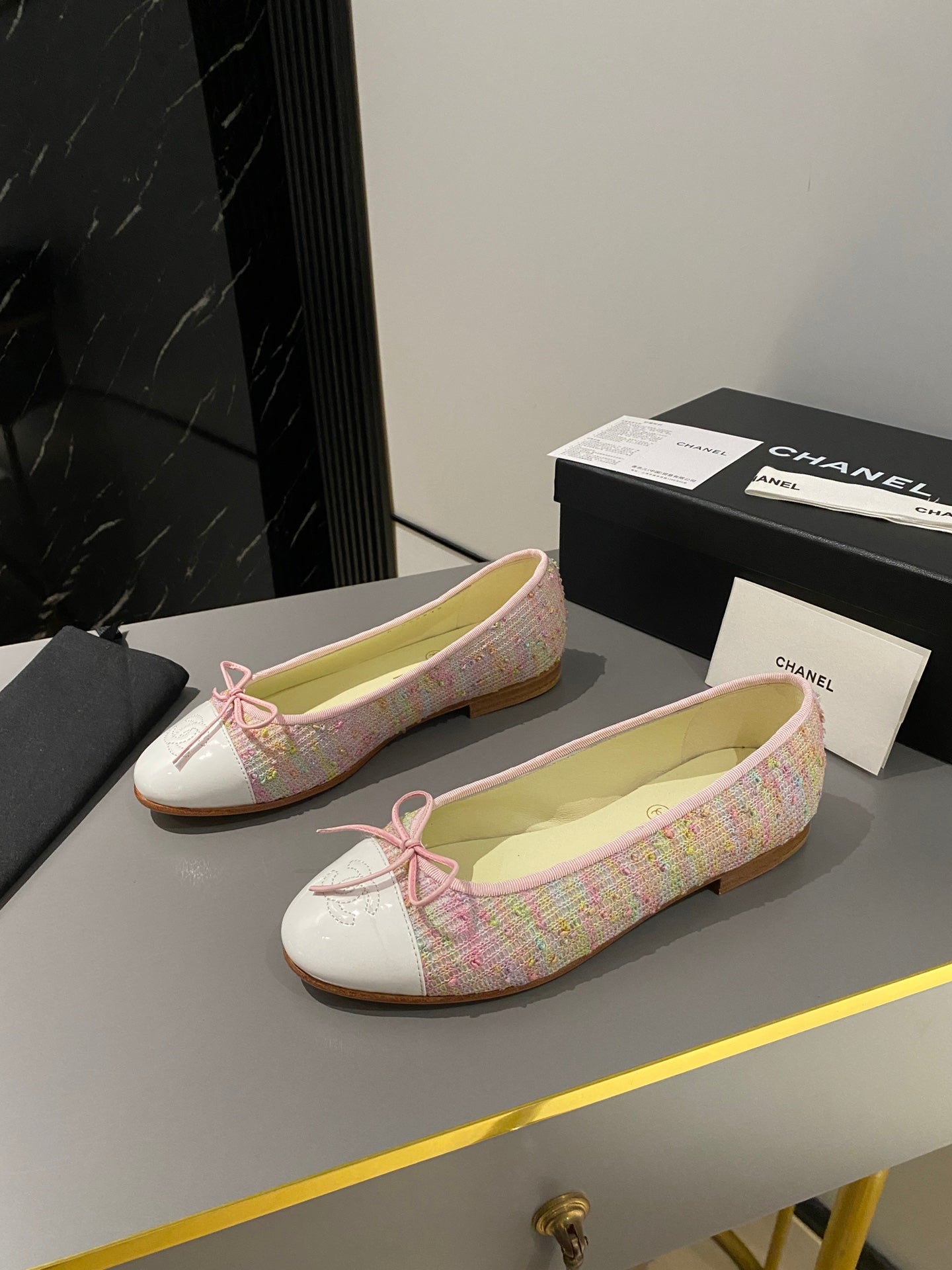 ballet flats light pink black tweed