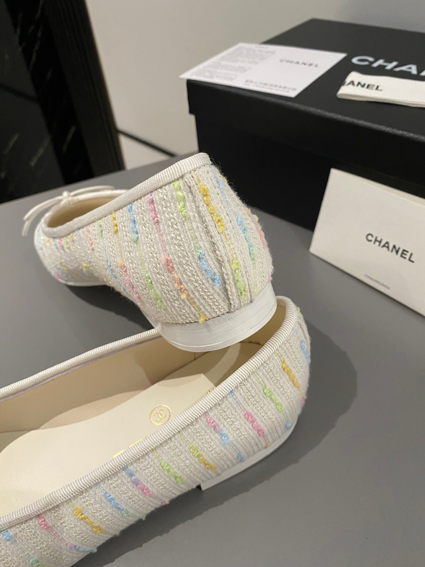 ballet flat pink yellow green tweed white calfskin