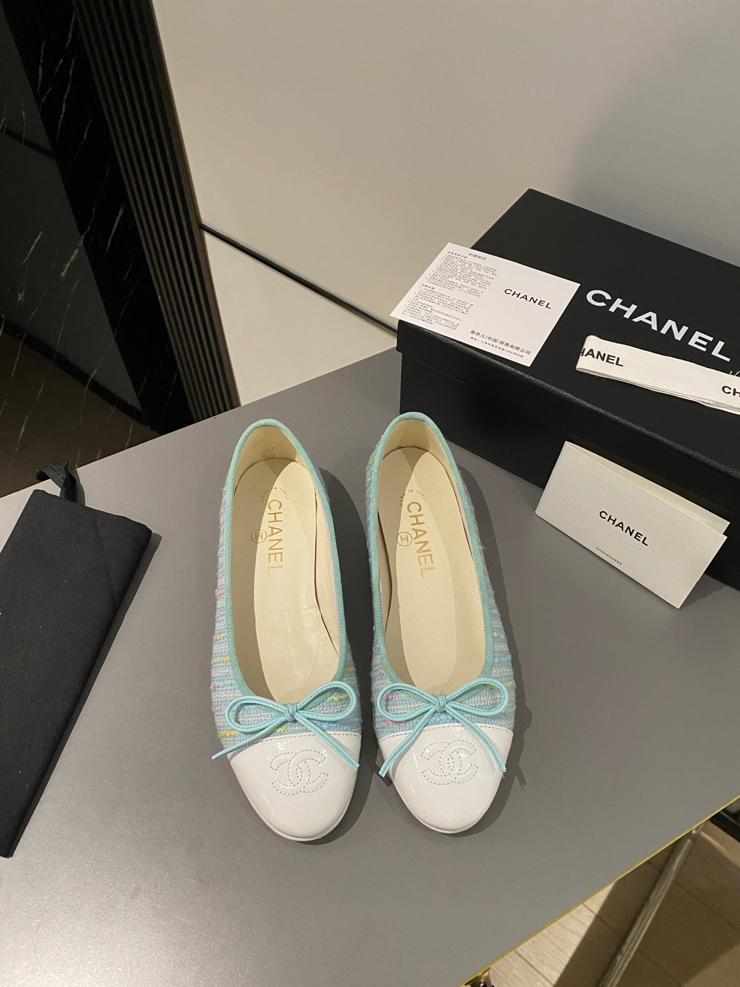 ballet flat grey tweed beige black lambskin