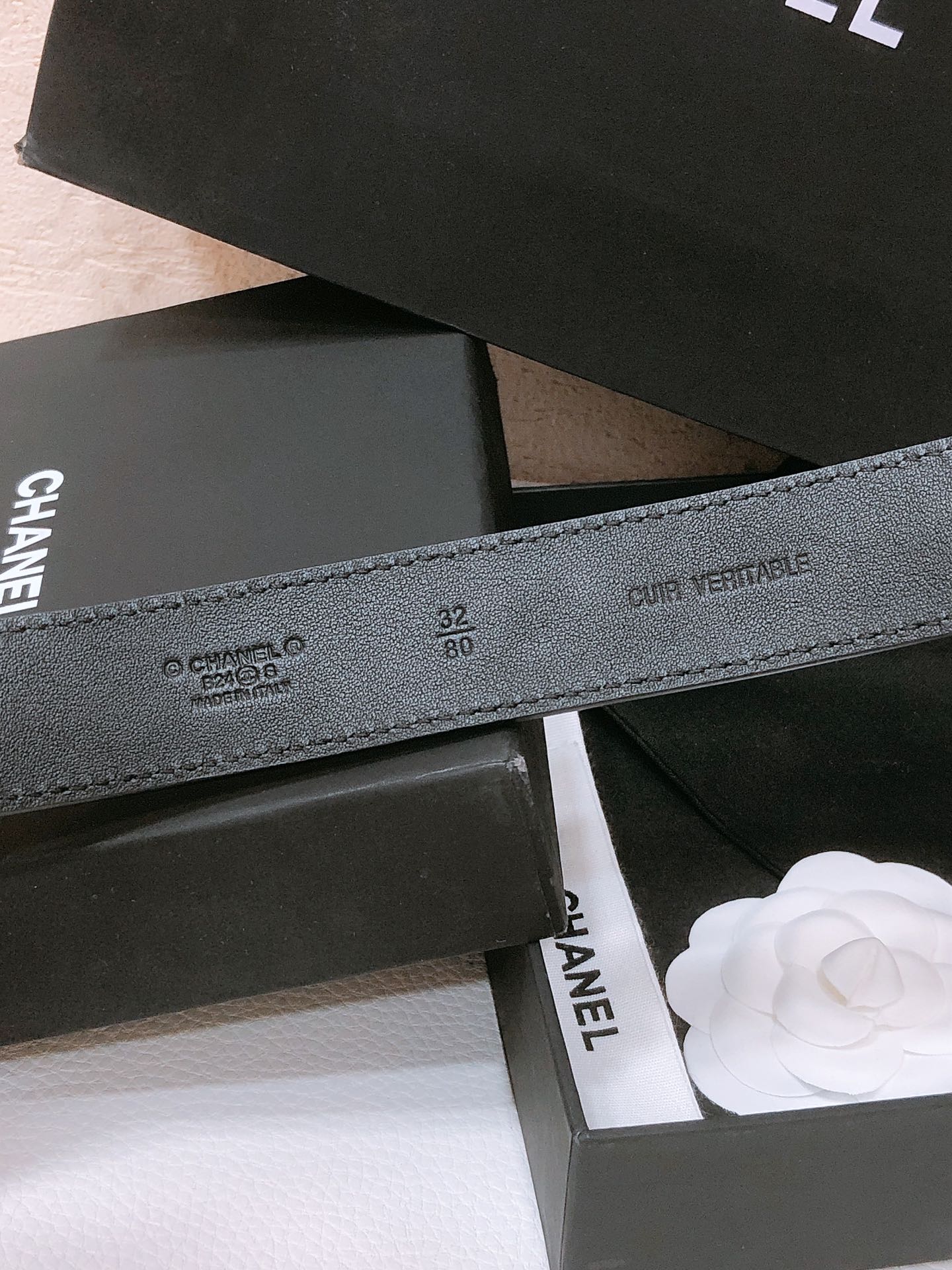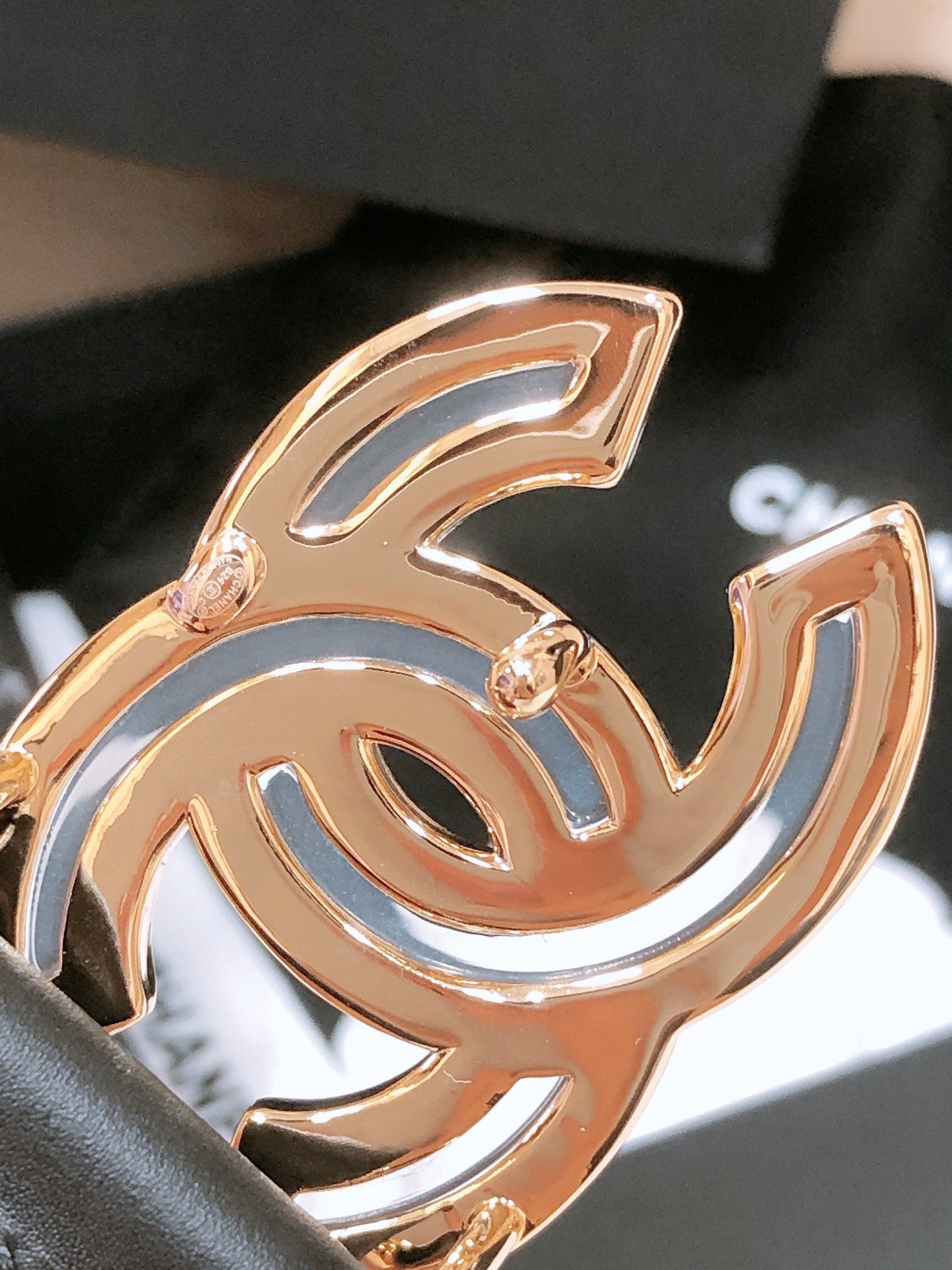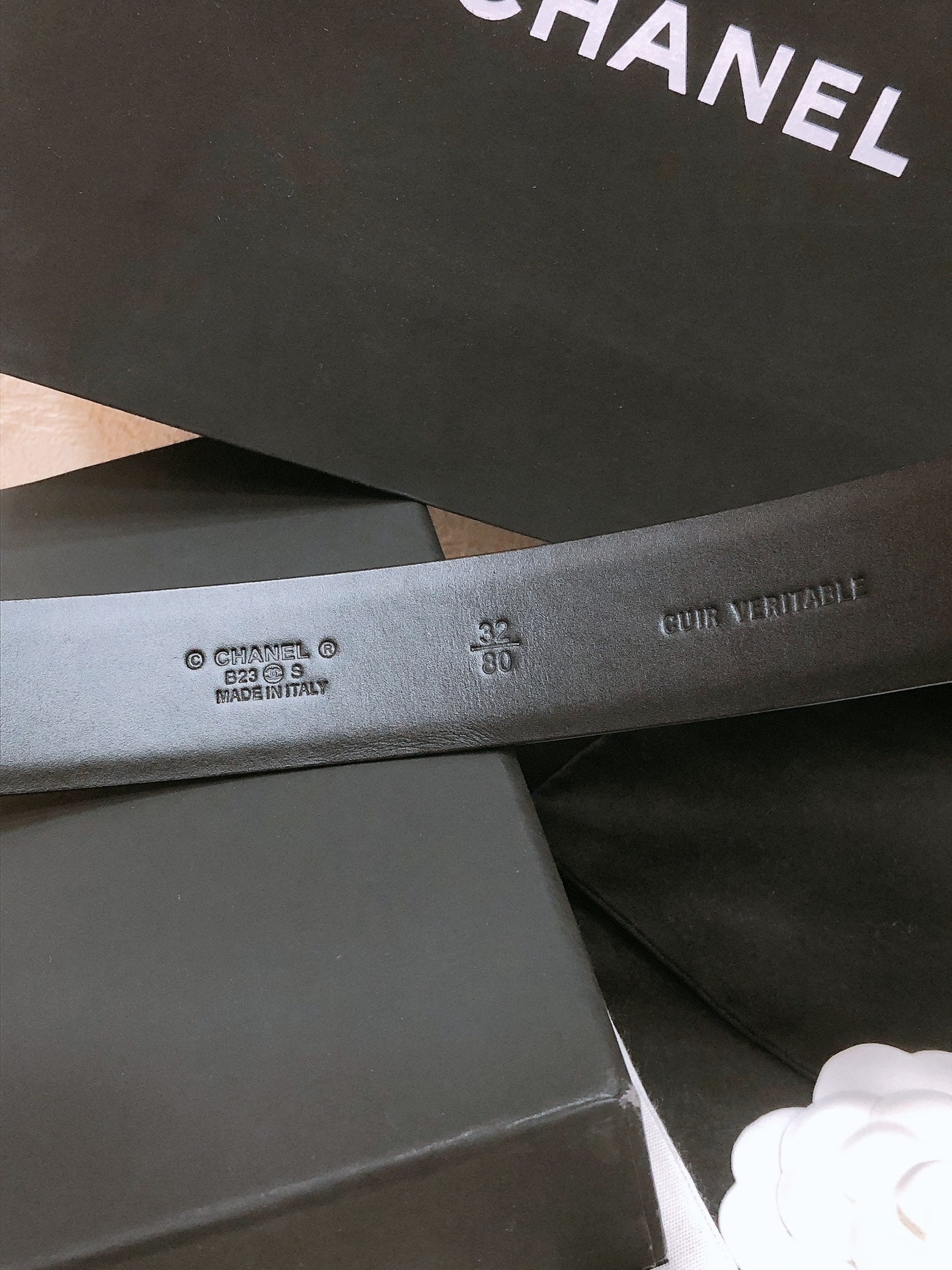 CC BELT 3.0CM LEATHER BLACK BUCKLE GOLD PEARL DIAMOND