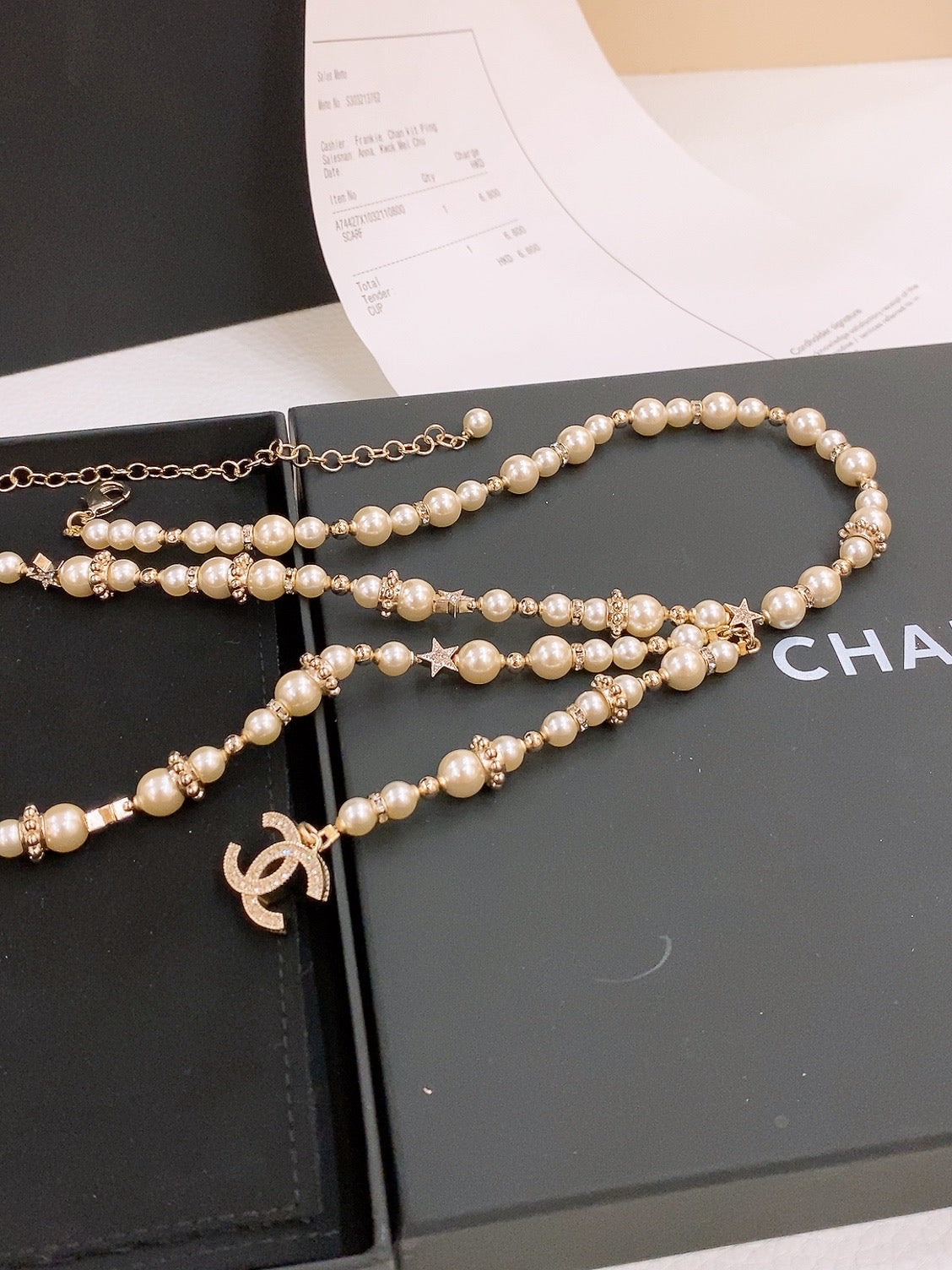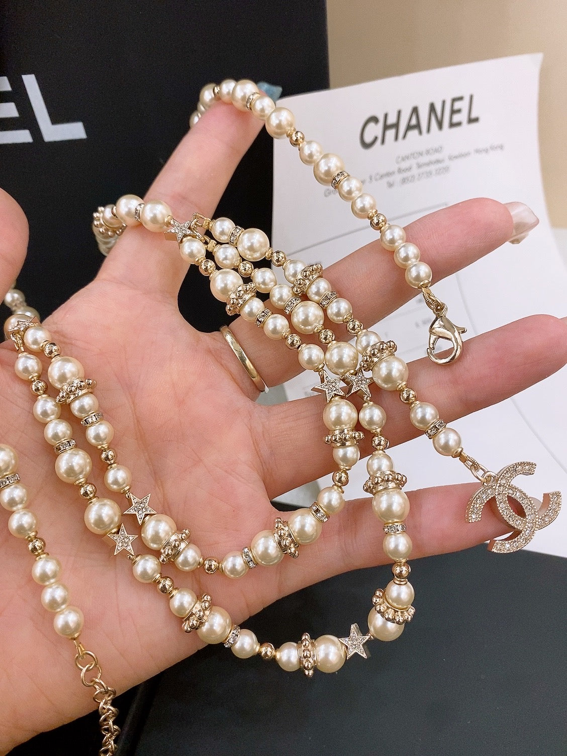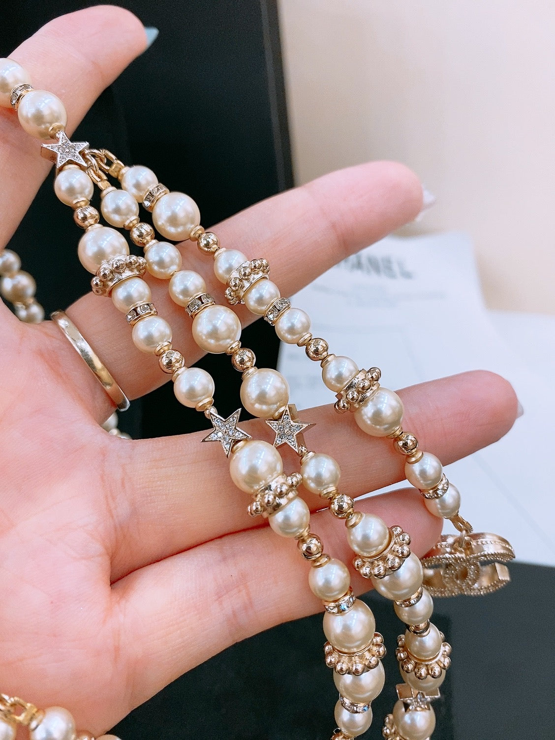 CC BELT 3.0CM LEATHER BLACK BUCKLE GOLD PEARL DIAMOND