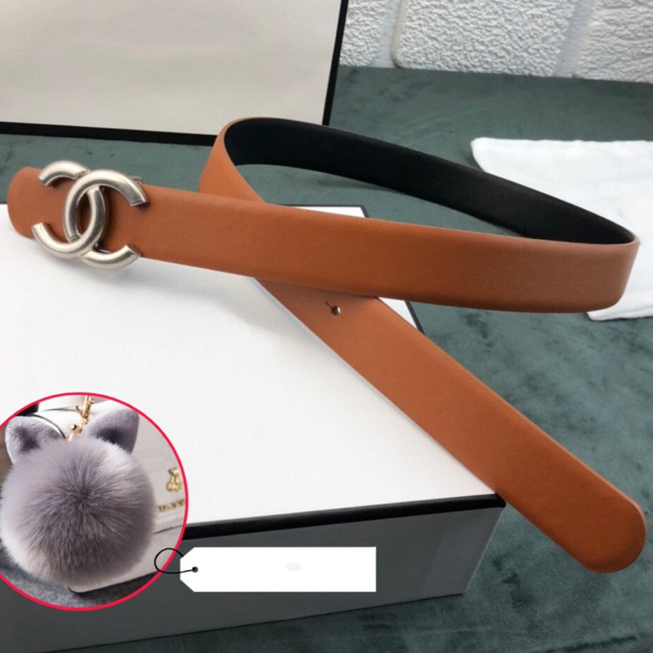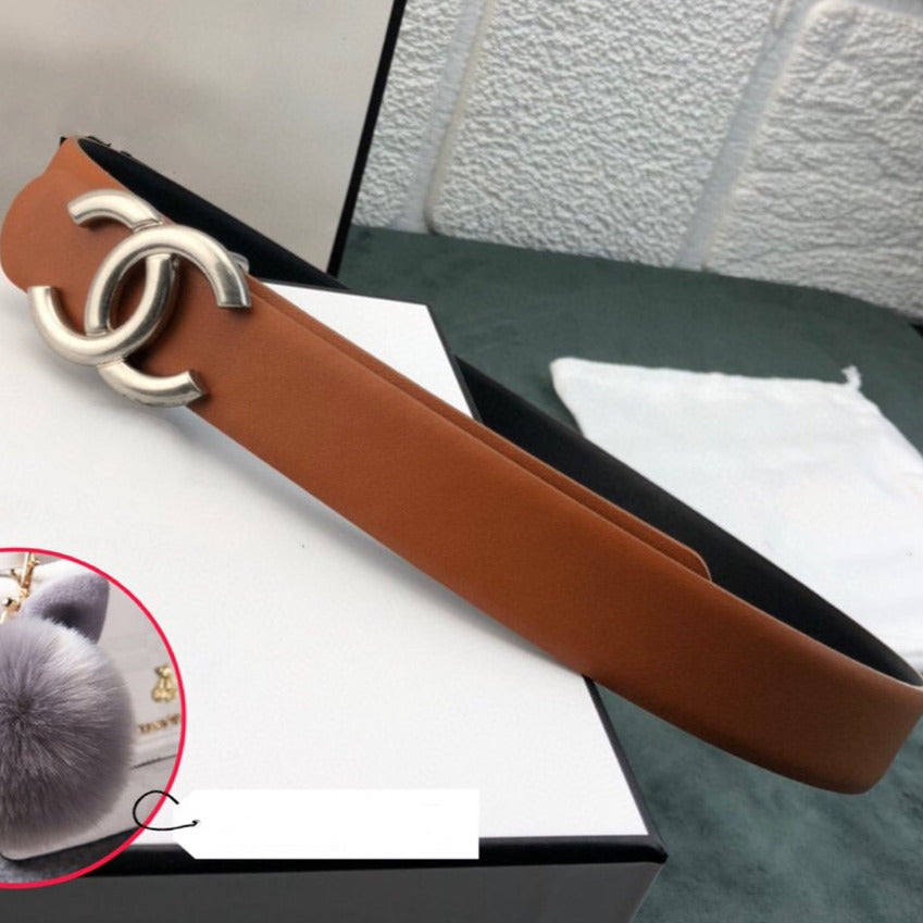 CC WOMEN'S BELT 3.0CM LEATHER BROWN BUCKLE SILVER