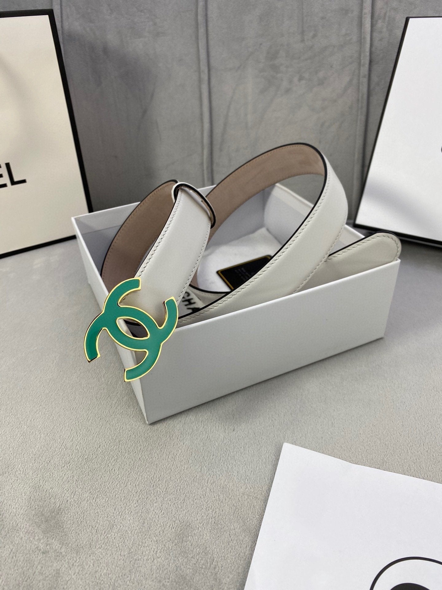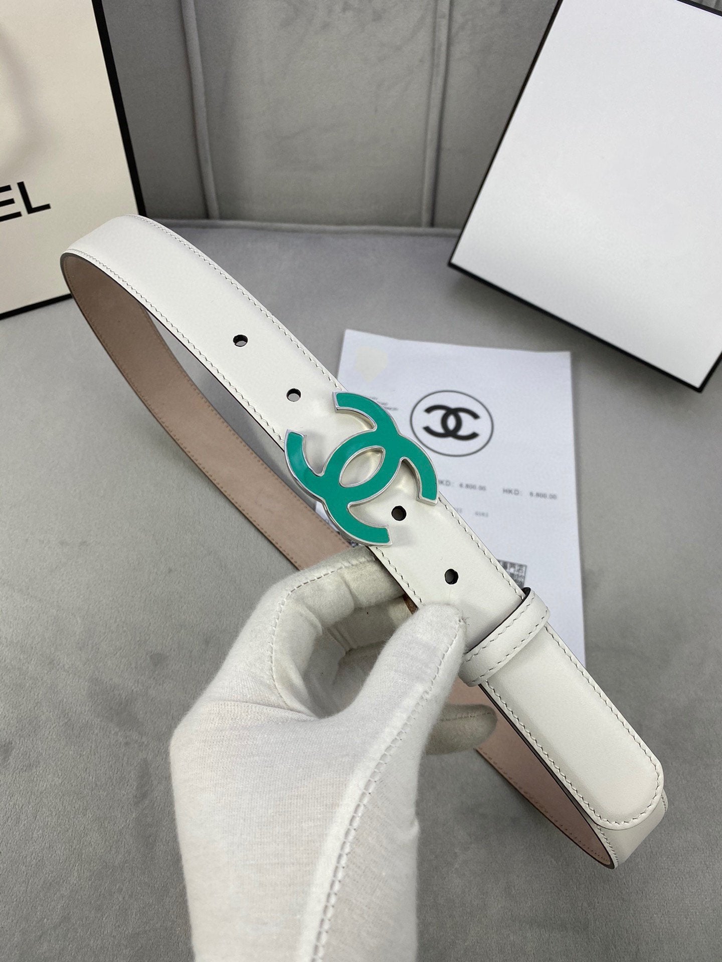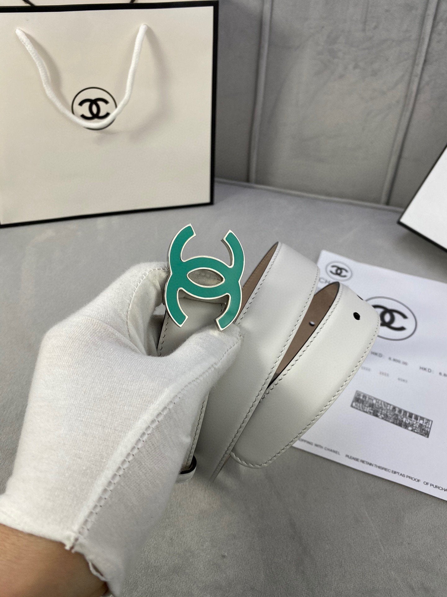 CC WOMEN'S BELT 3.0CM BUCKLE MULTICOLOR LEATHER WHITE
