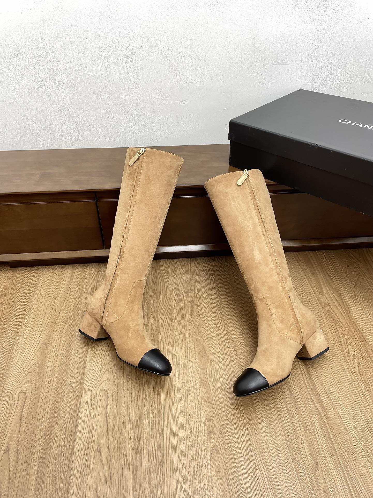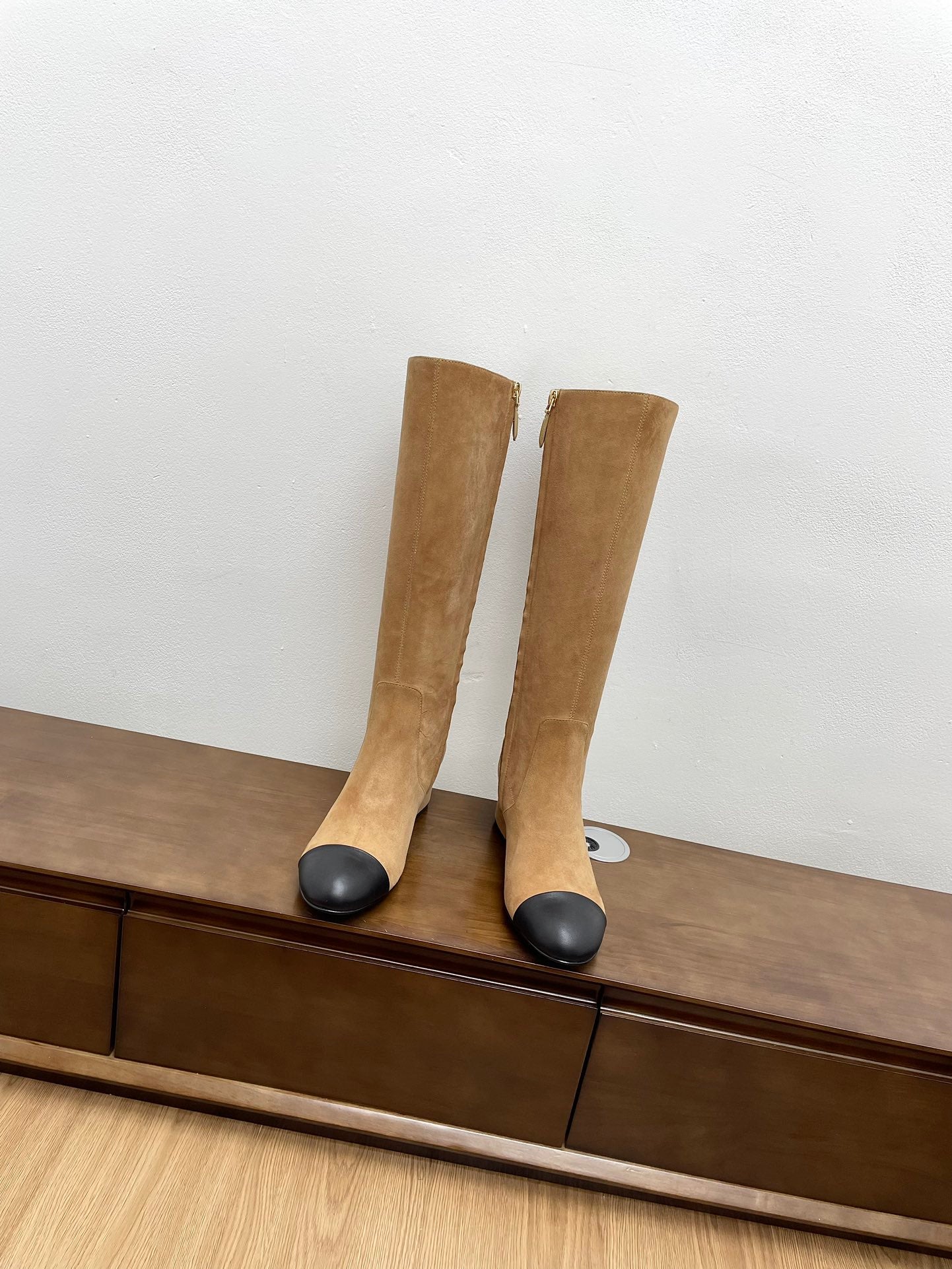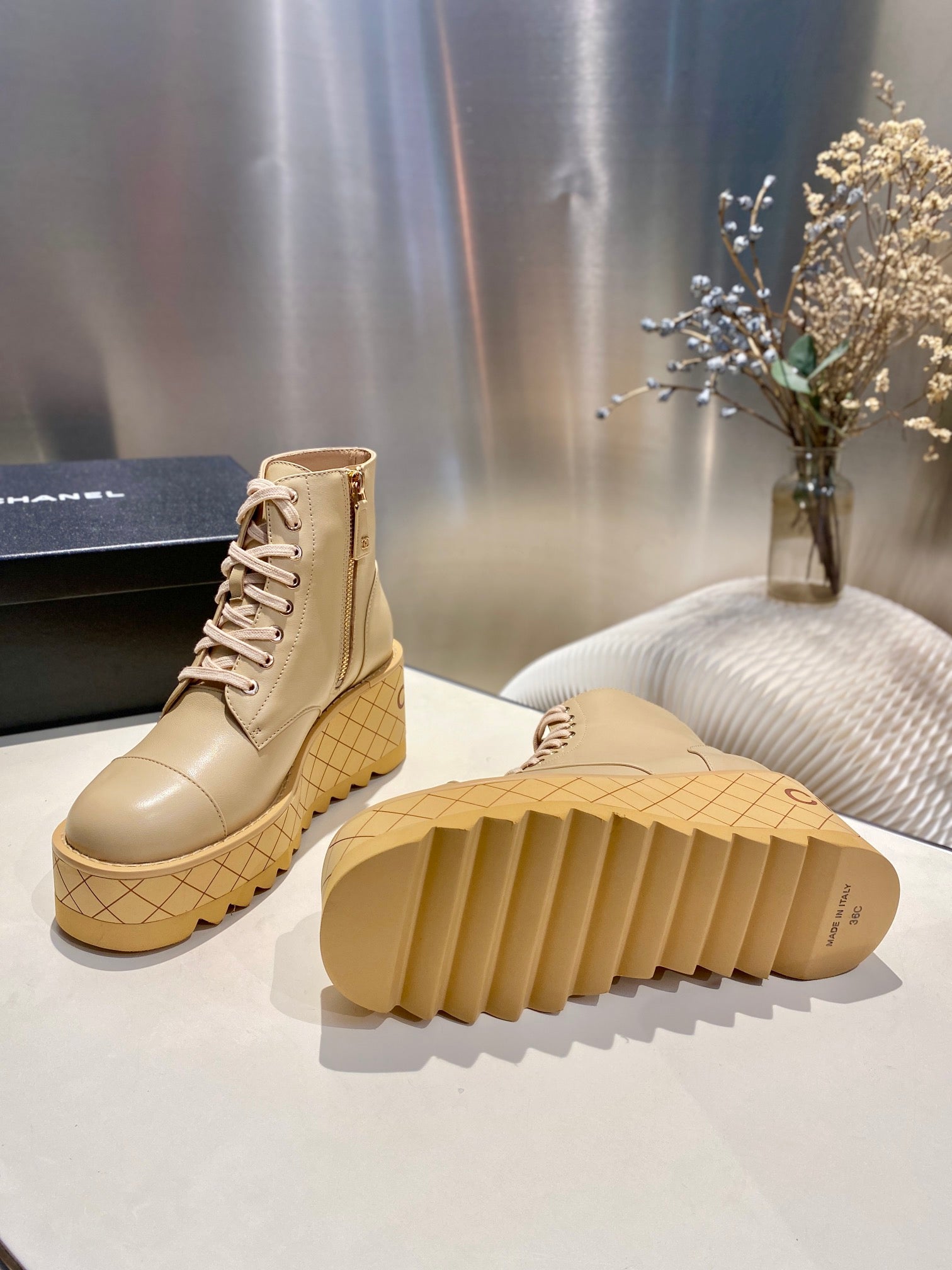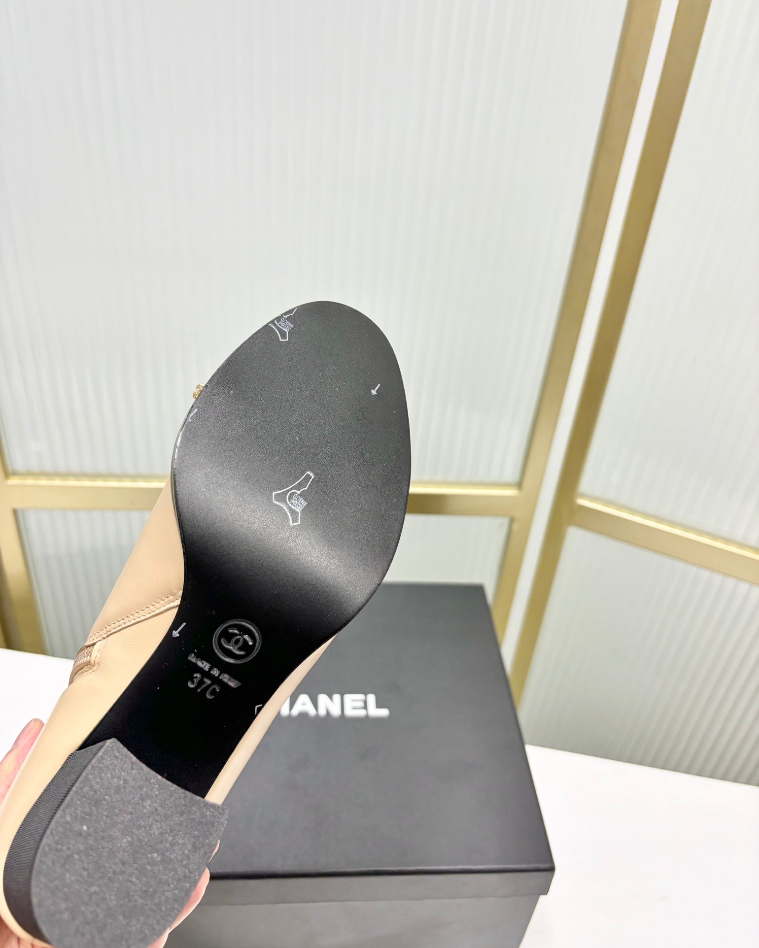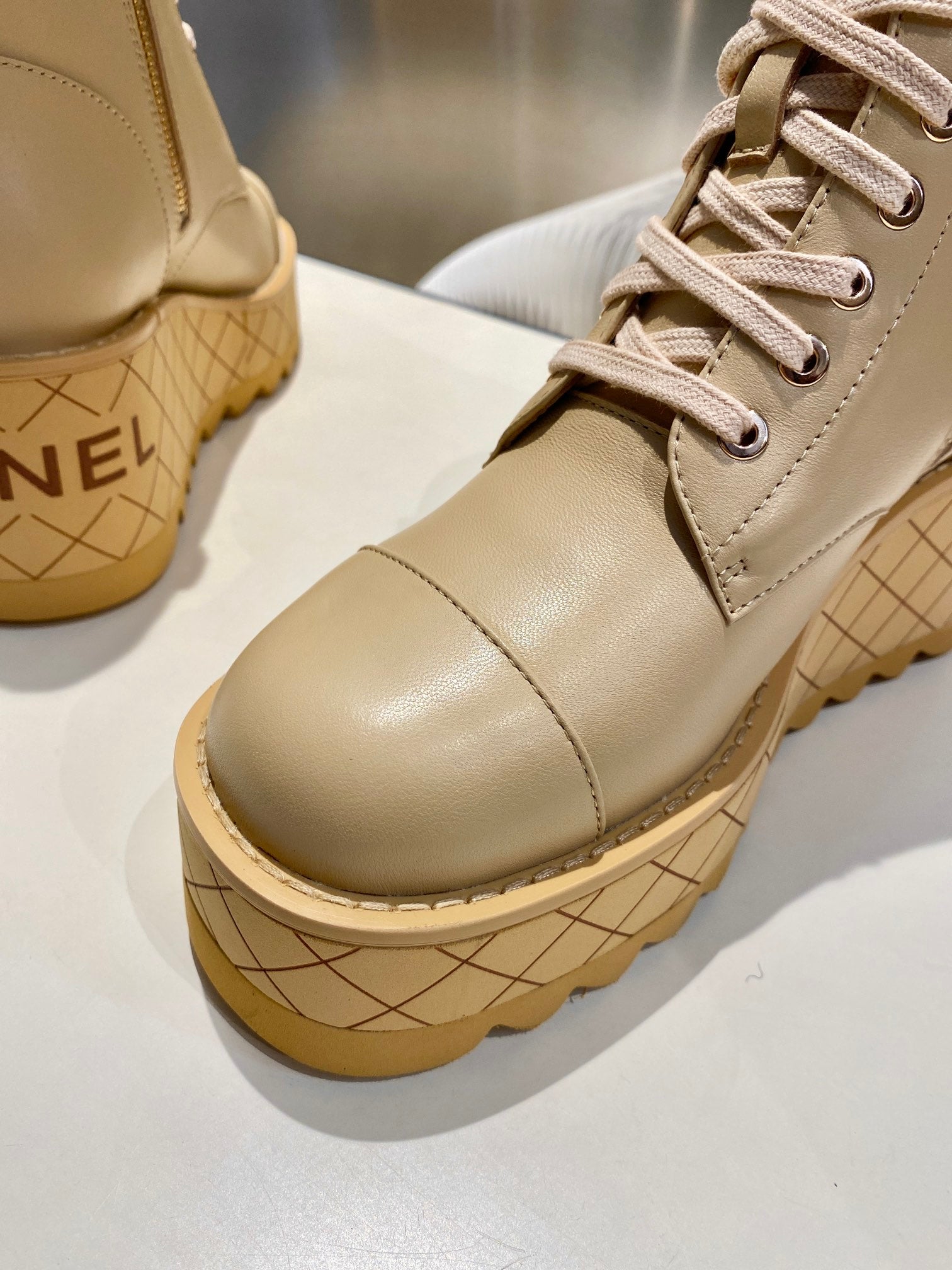CC CHUNKY BOOTS IN BISQUE BEIGE SMOOTH FLEECE AND BLACK CALFSKIN