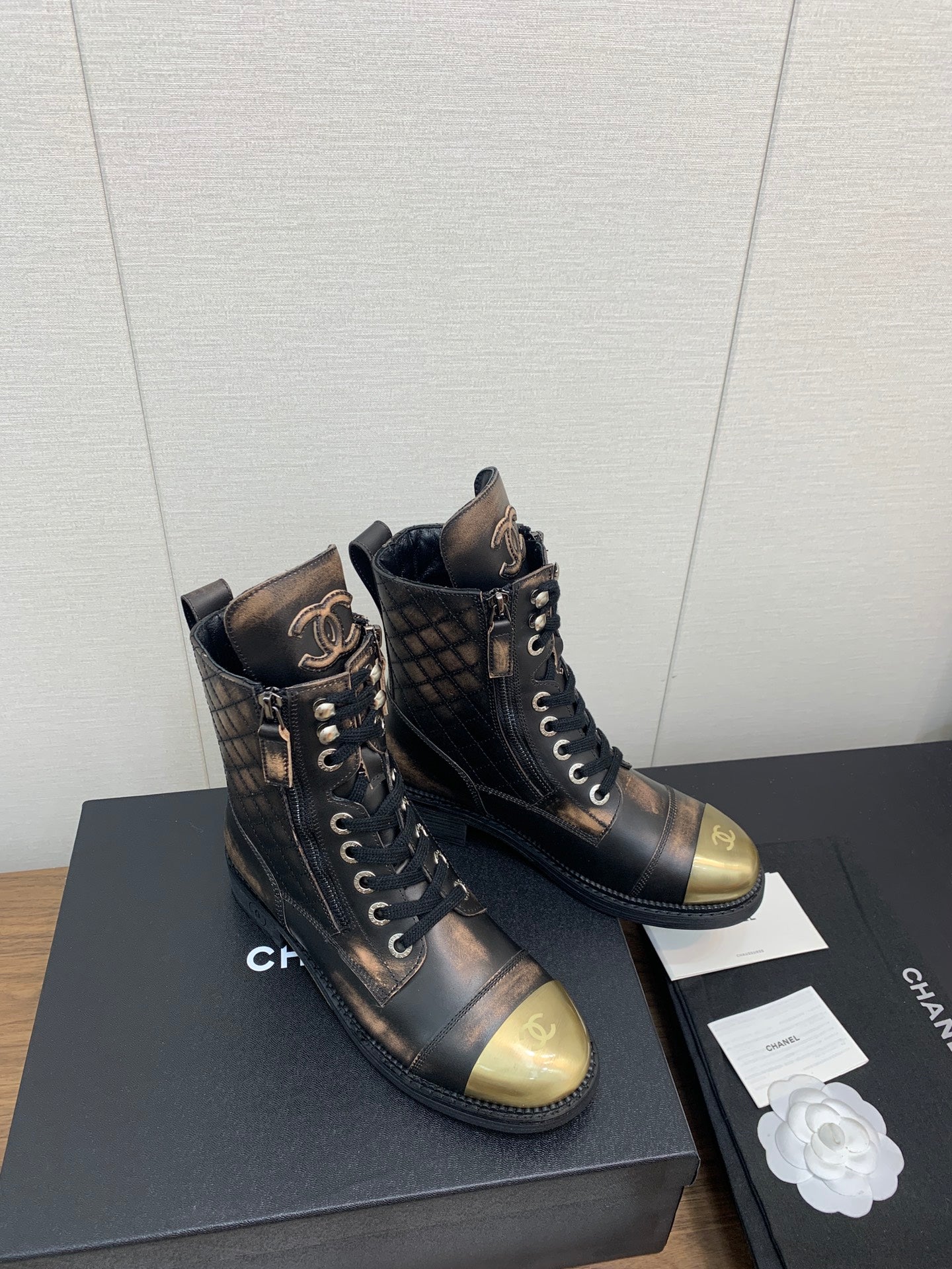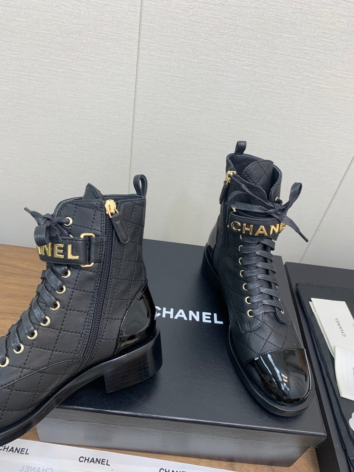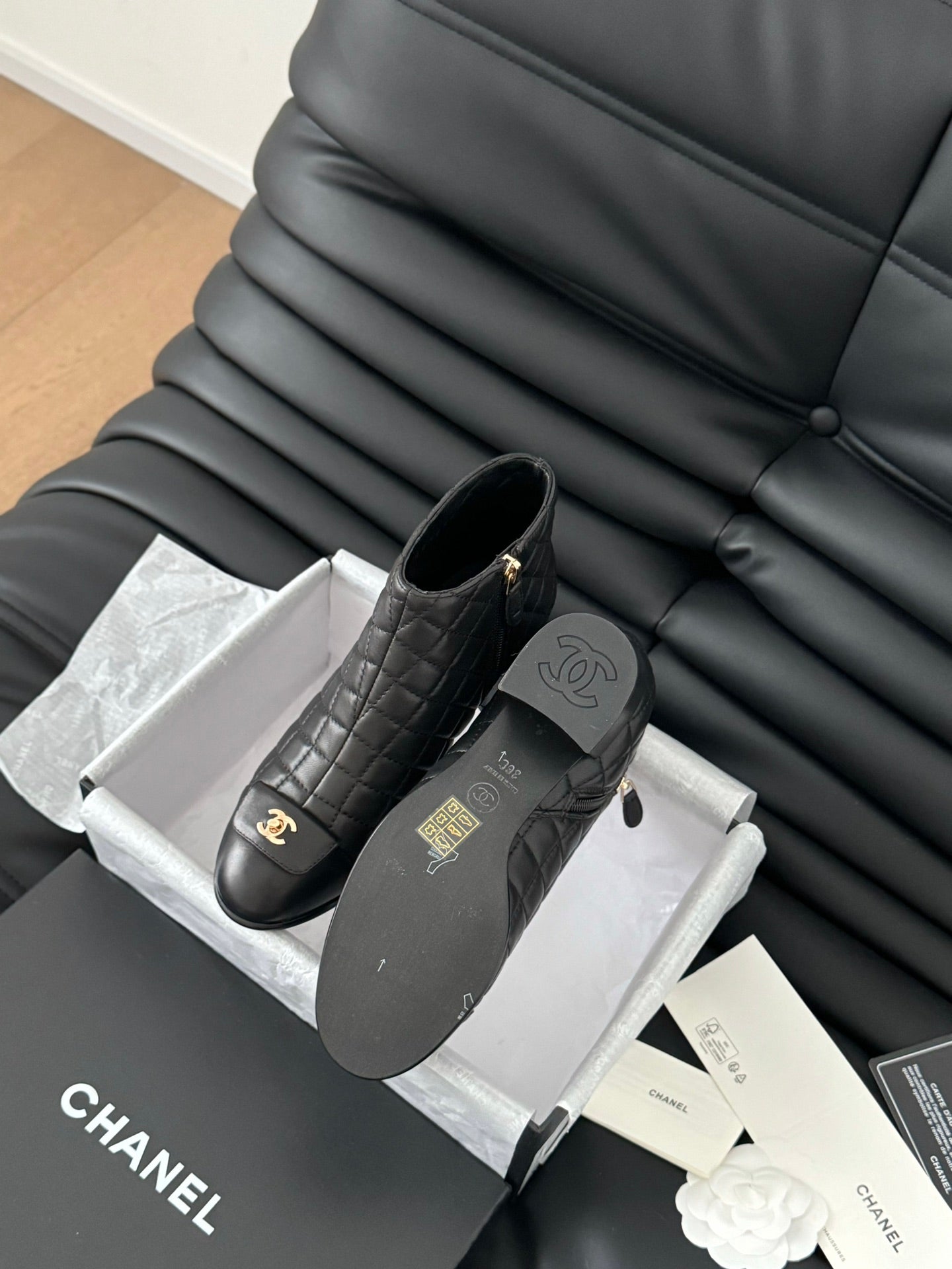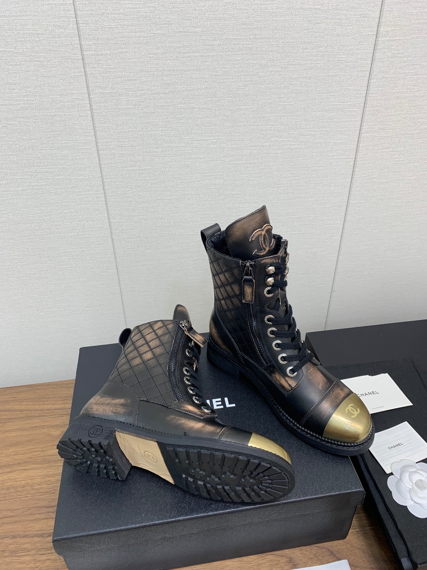 CC Short Boot Gold Metalic Lambskin Black Patent Calfskin