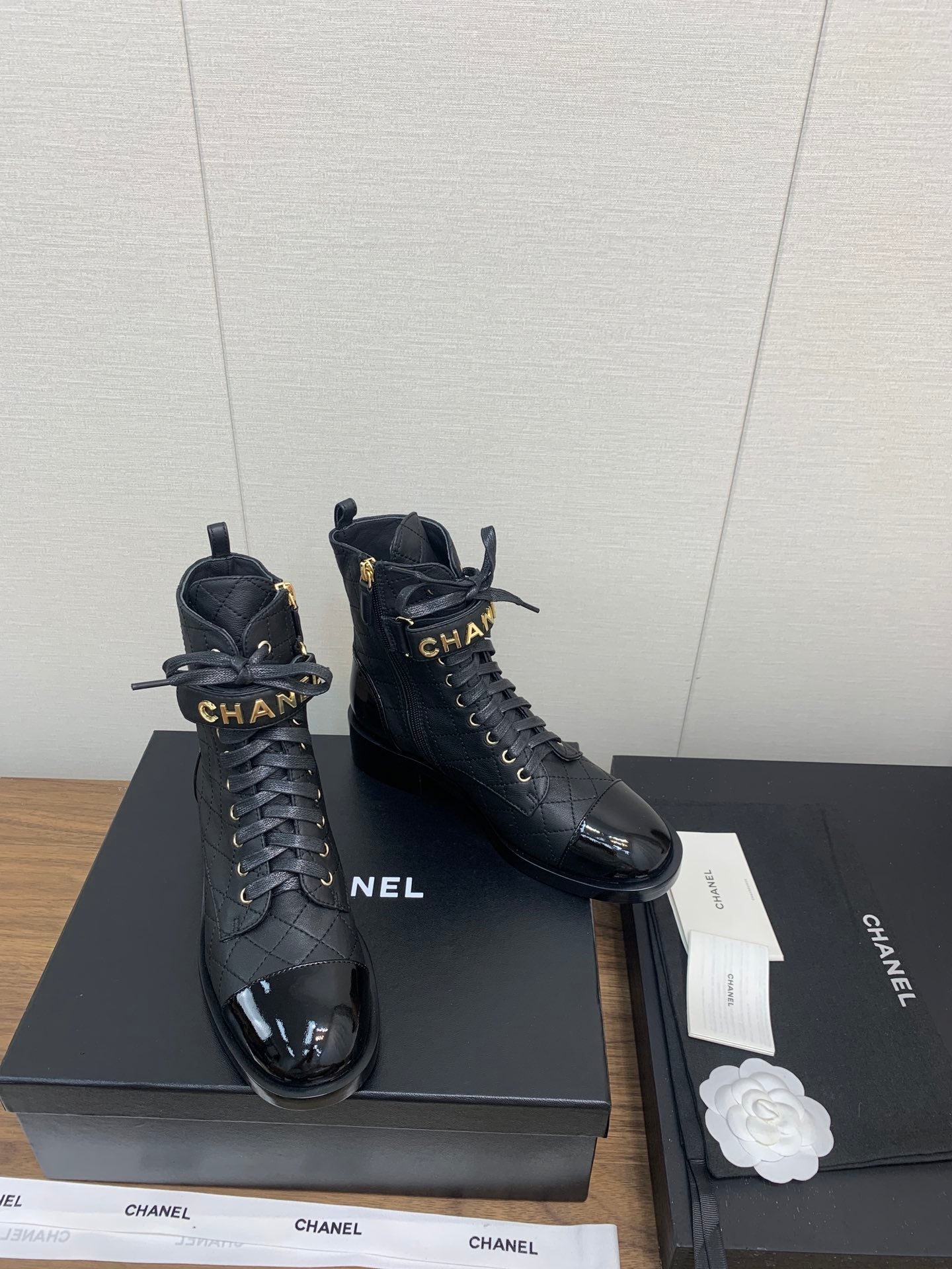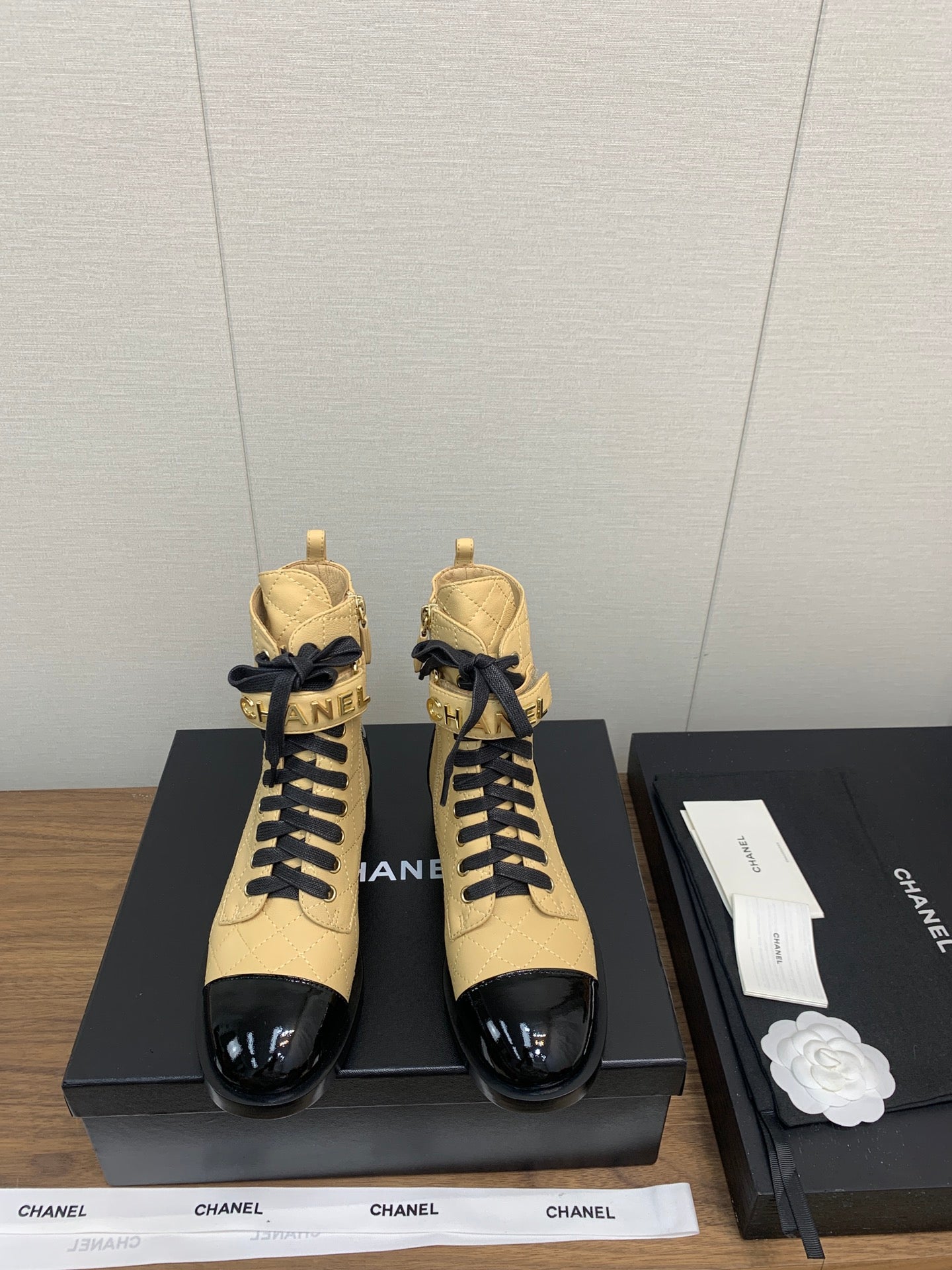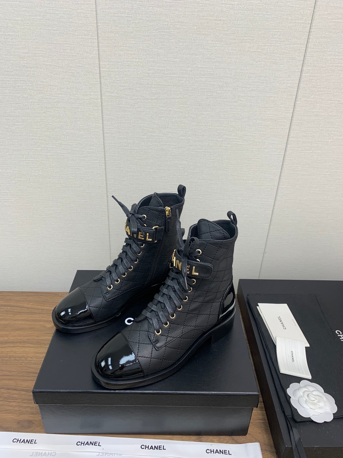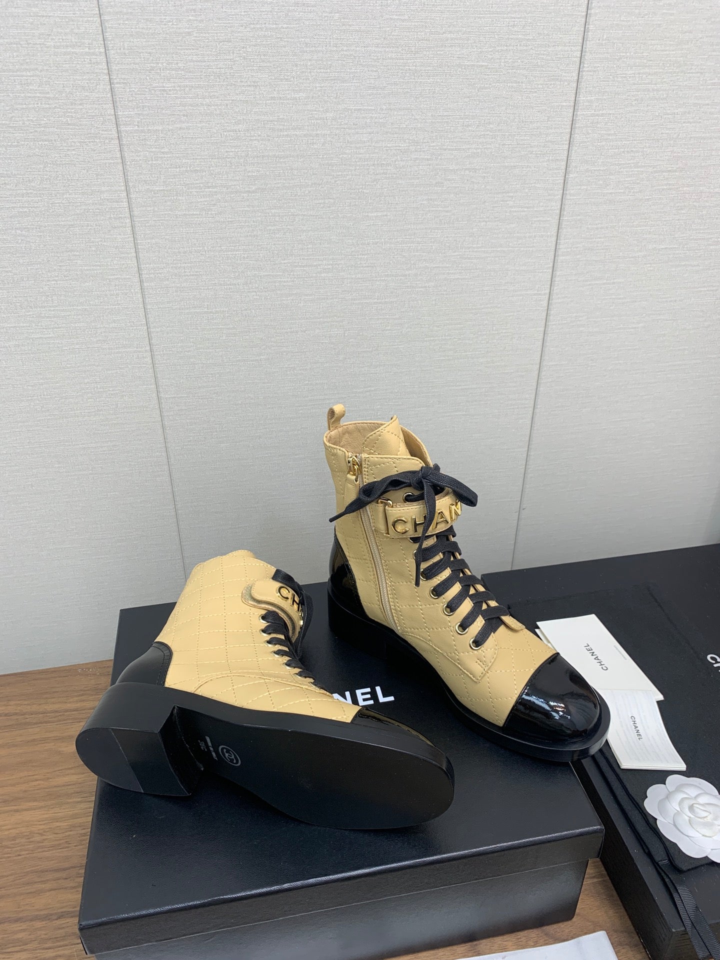 CC Short Boot Gold Metalic Lambskin Black Patent Calfskin