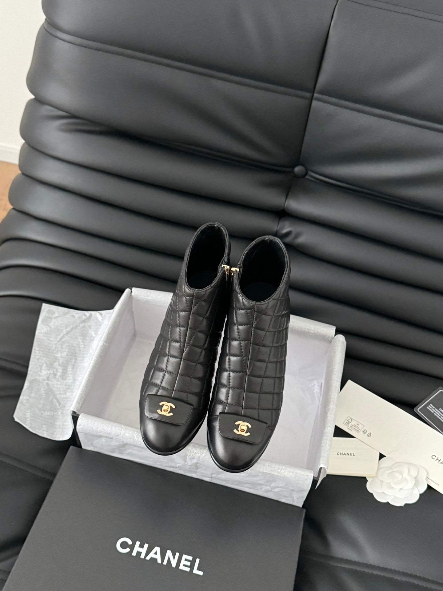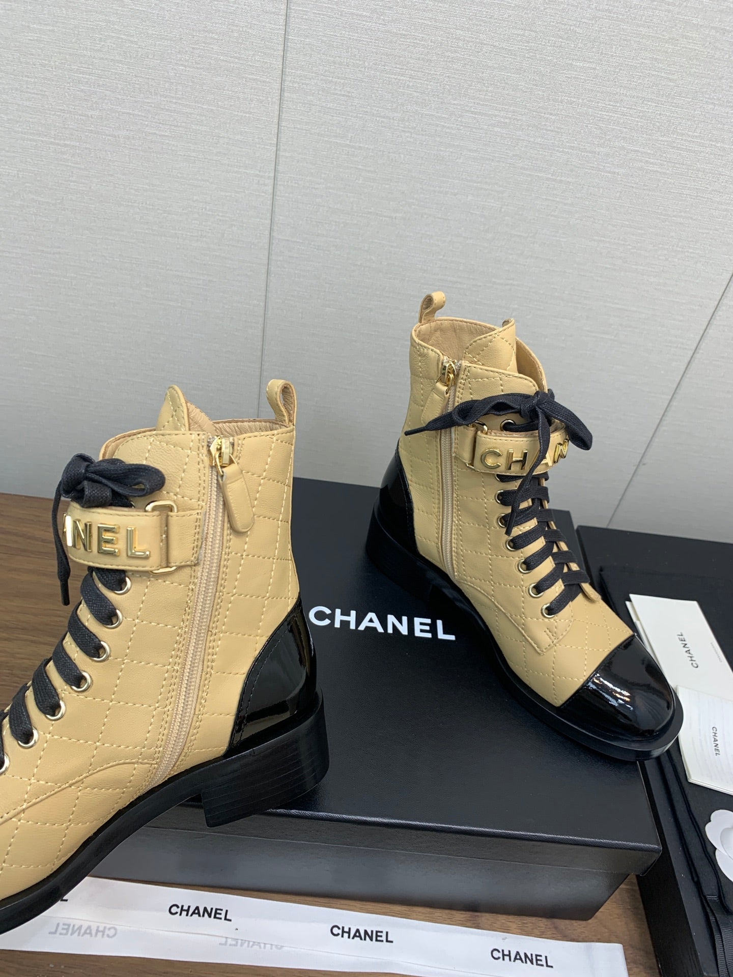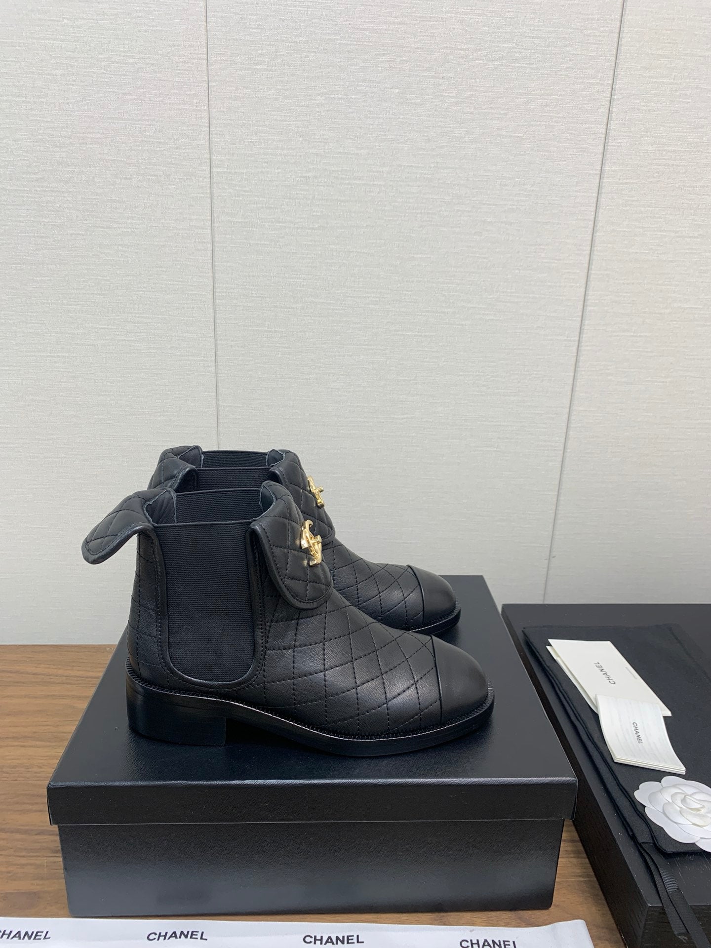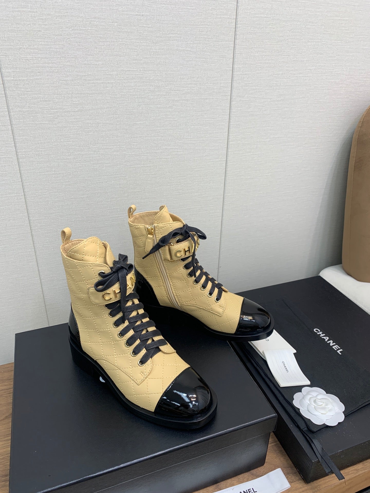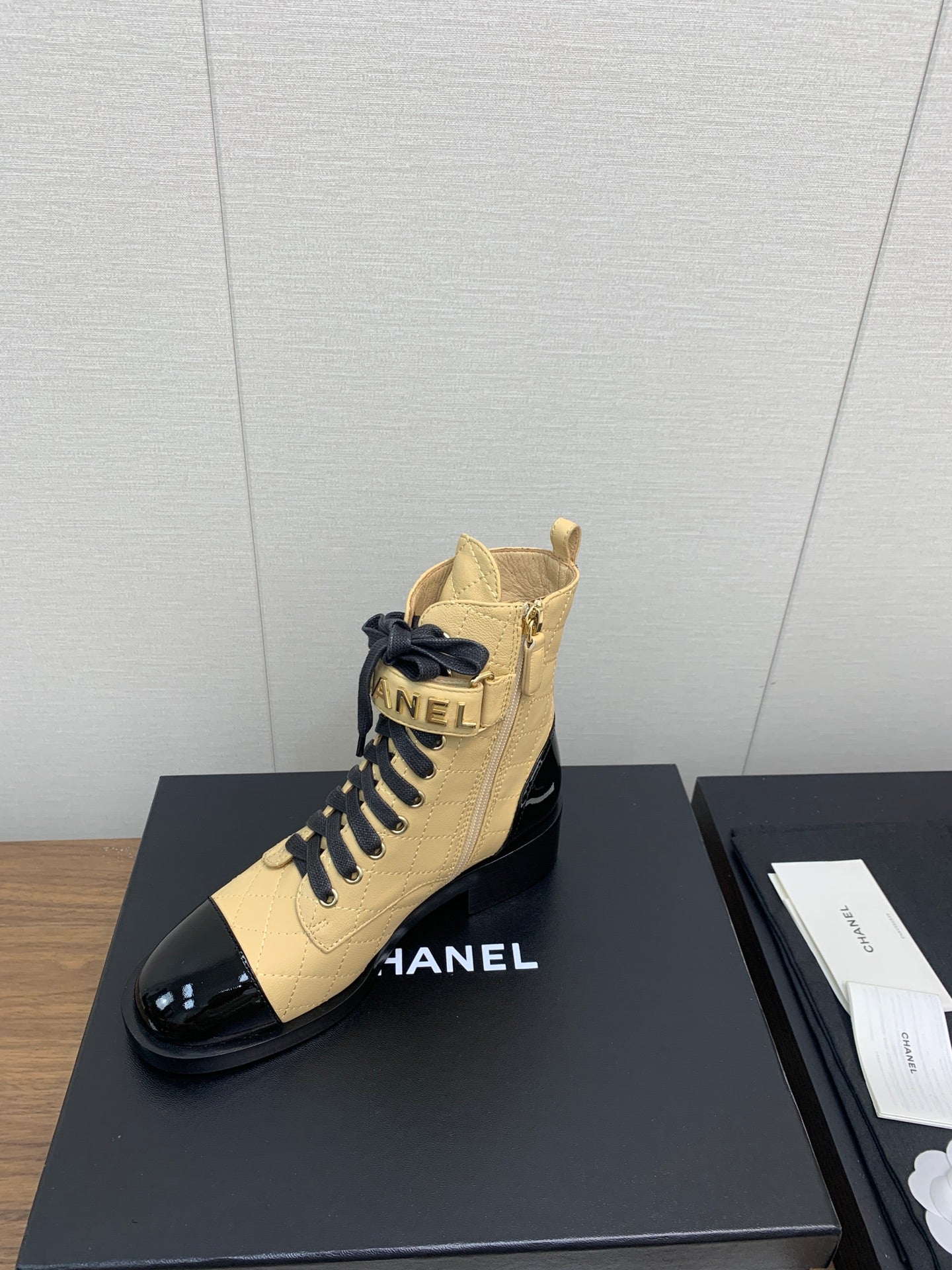 CC Short Boot Gold Metalic Lambskin Black Patent Calfskin