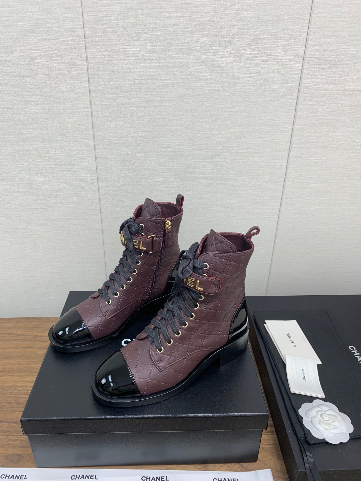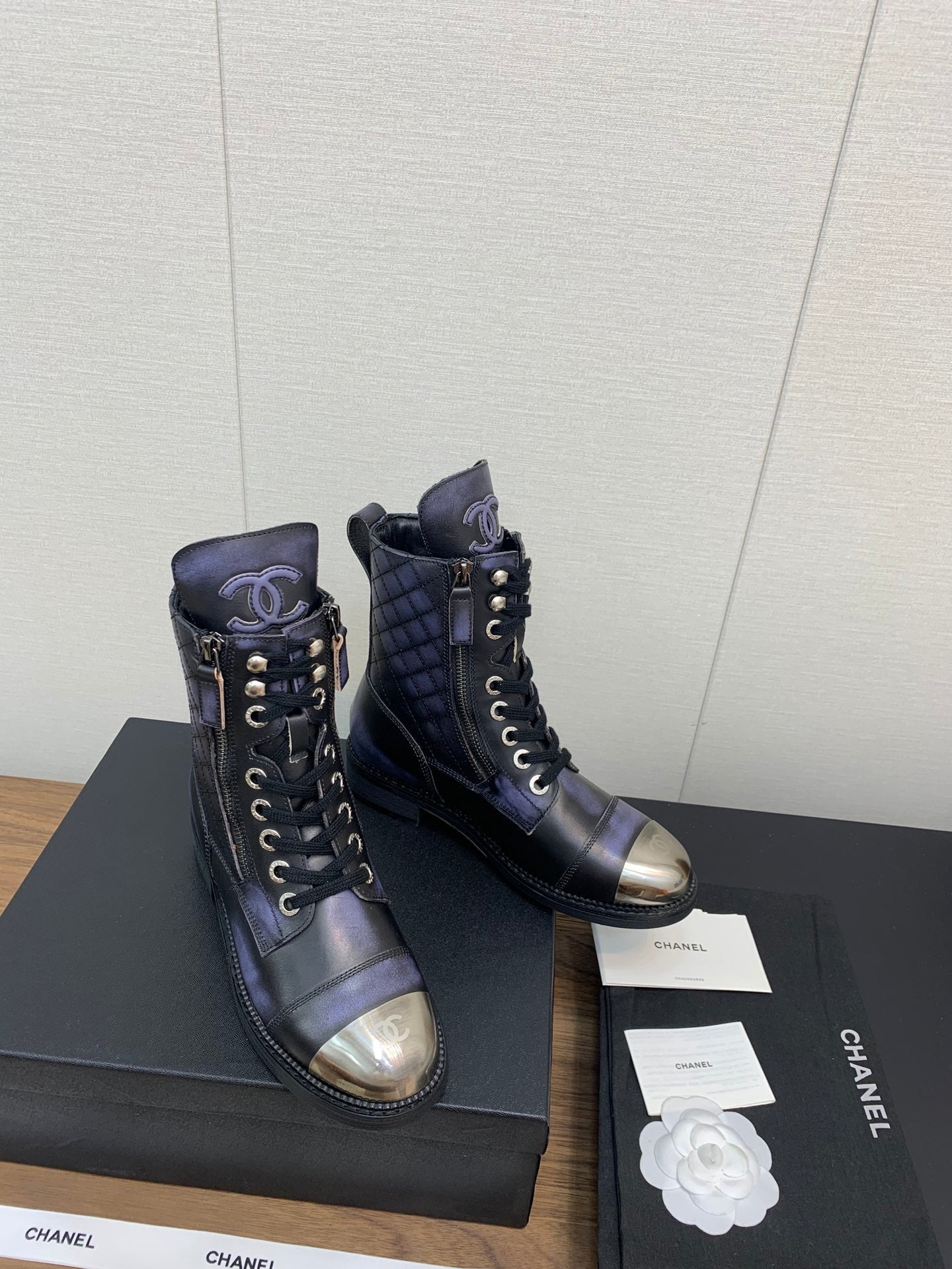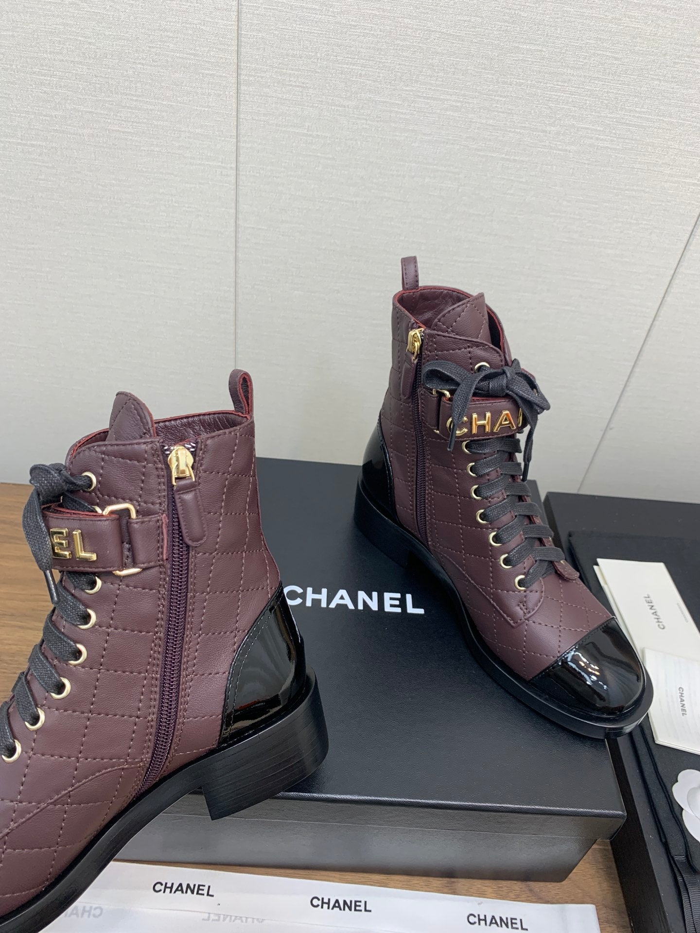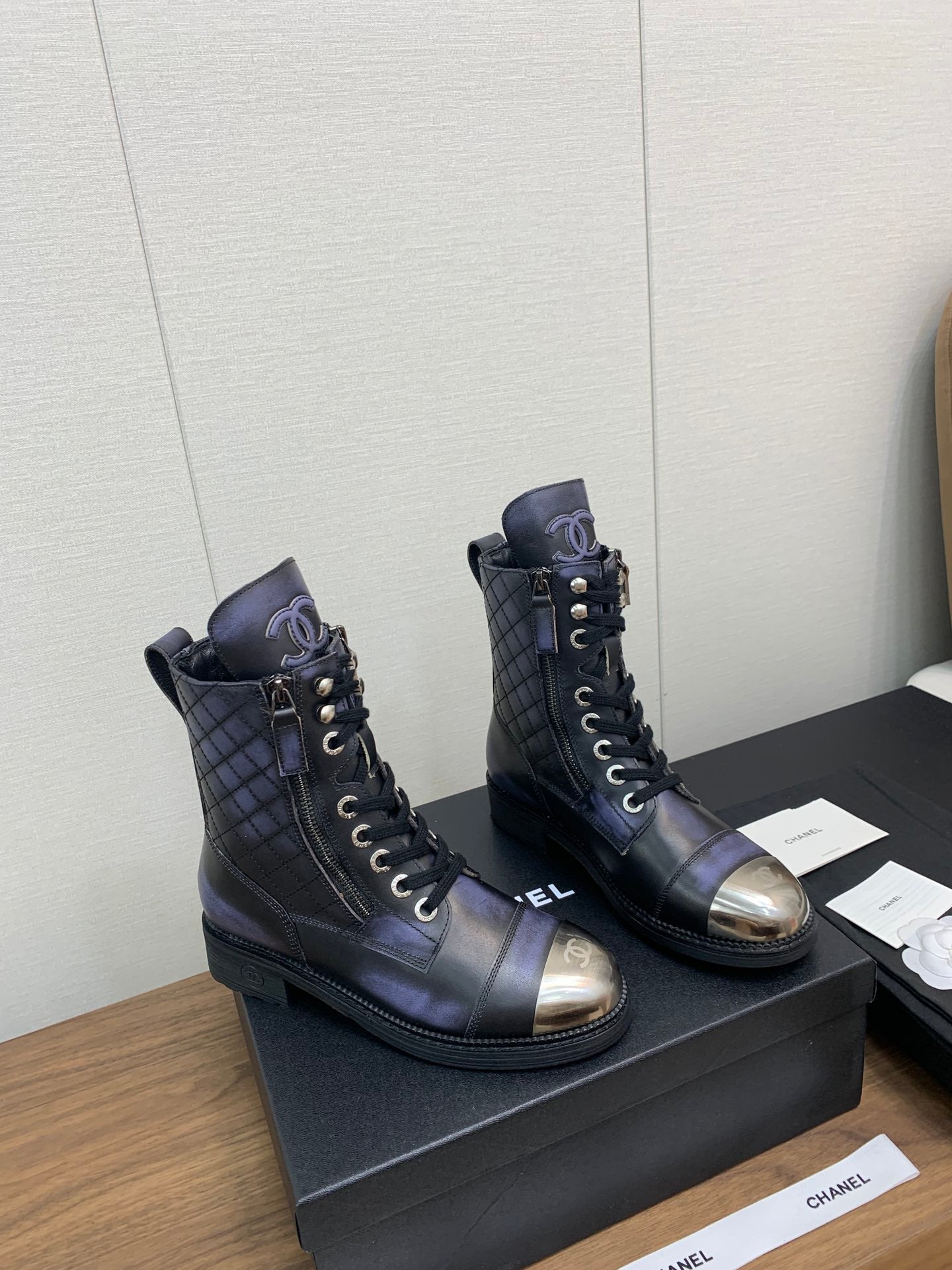 CC Short Boot Gold Metalic Lambskin Black Patent Calfskin