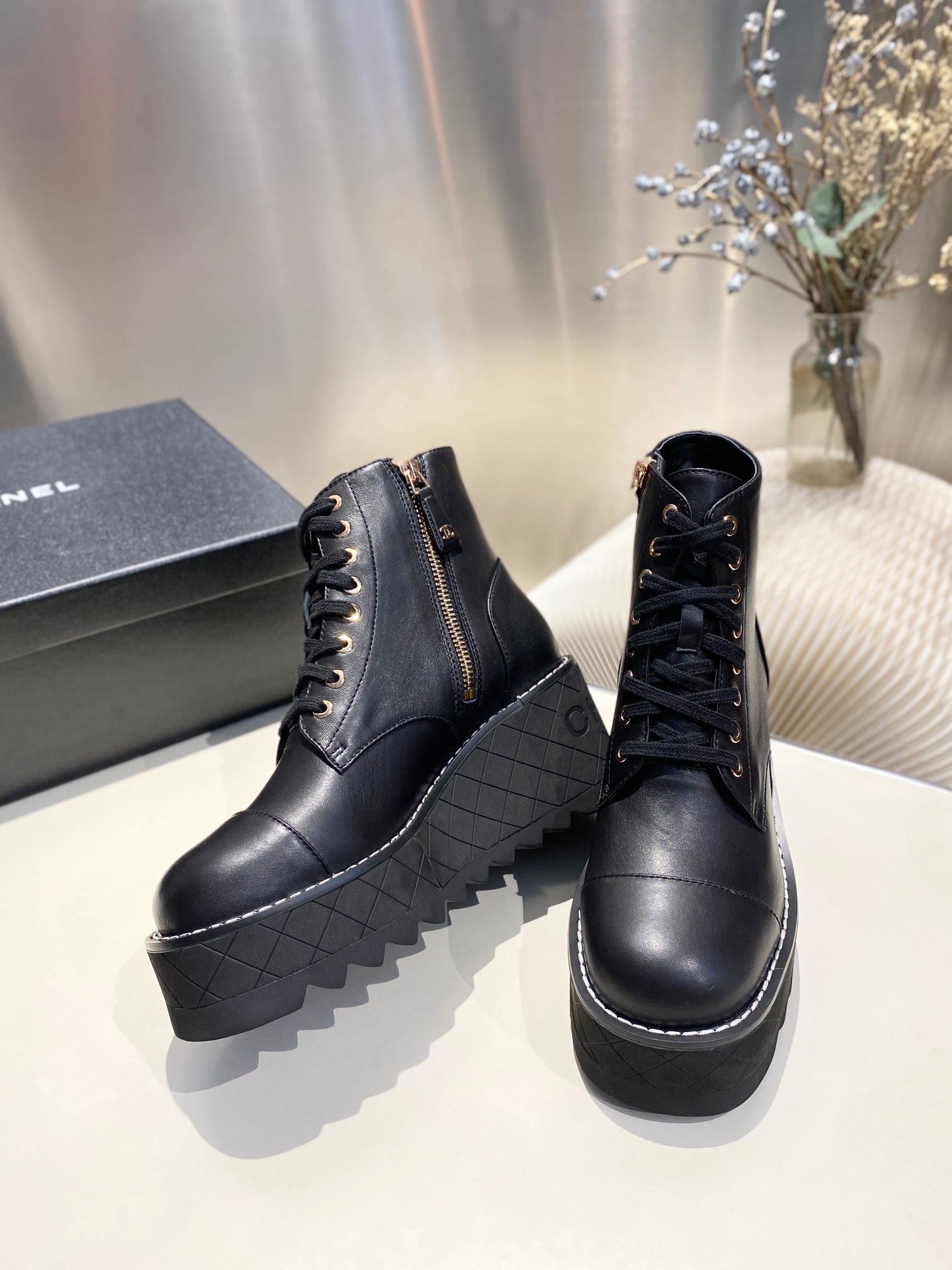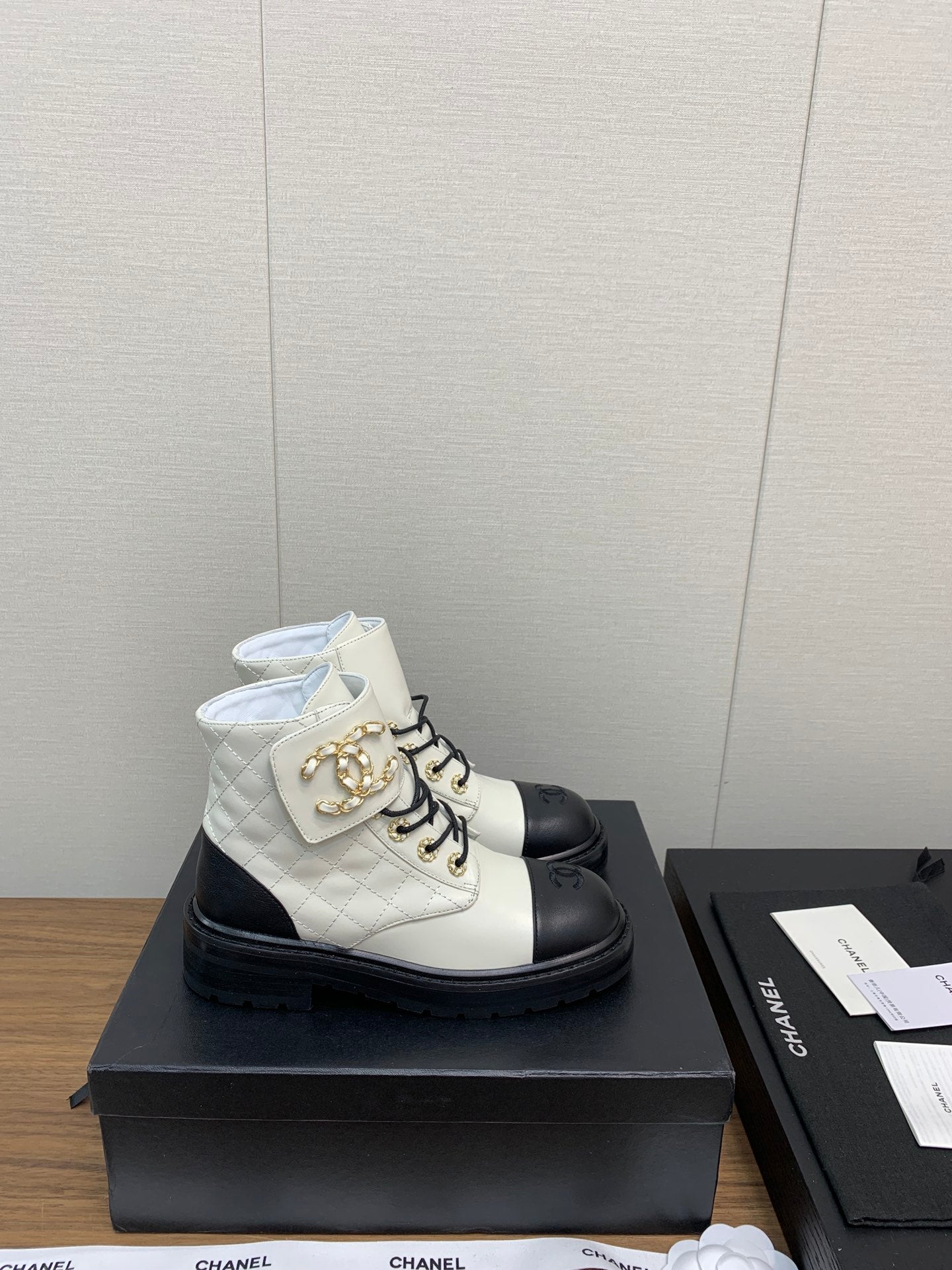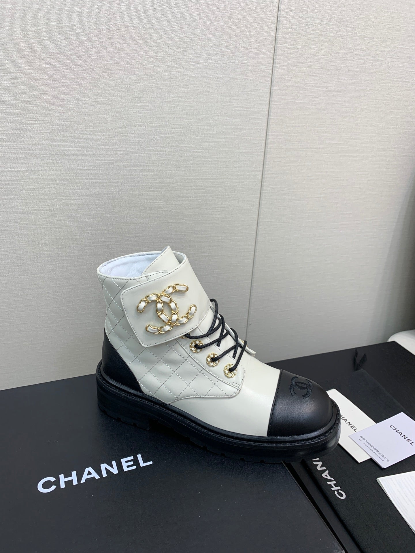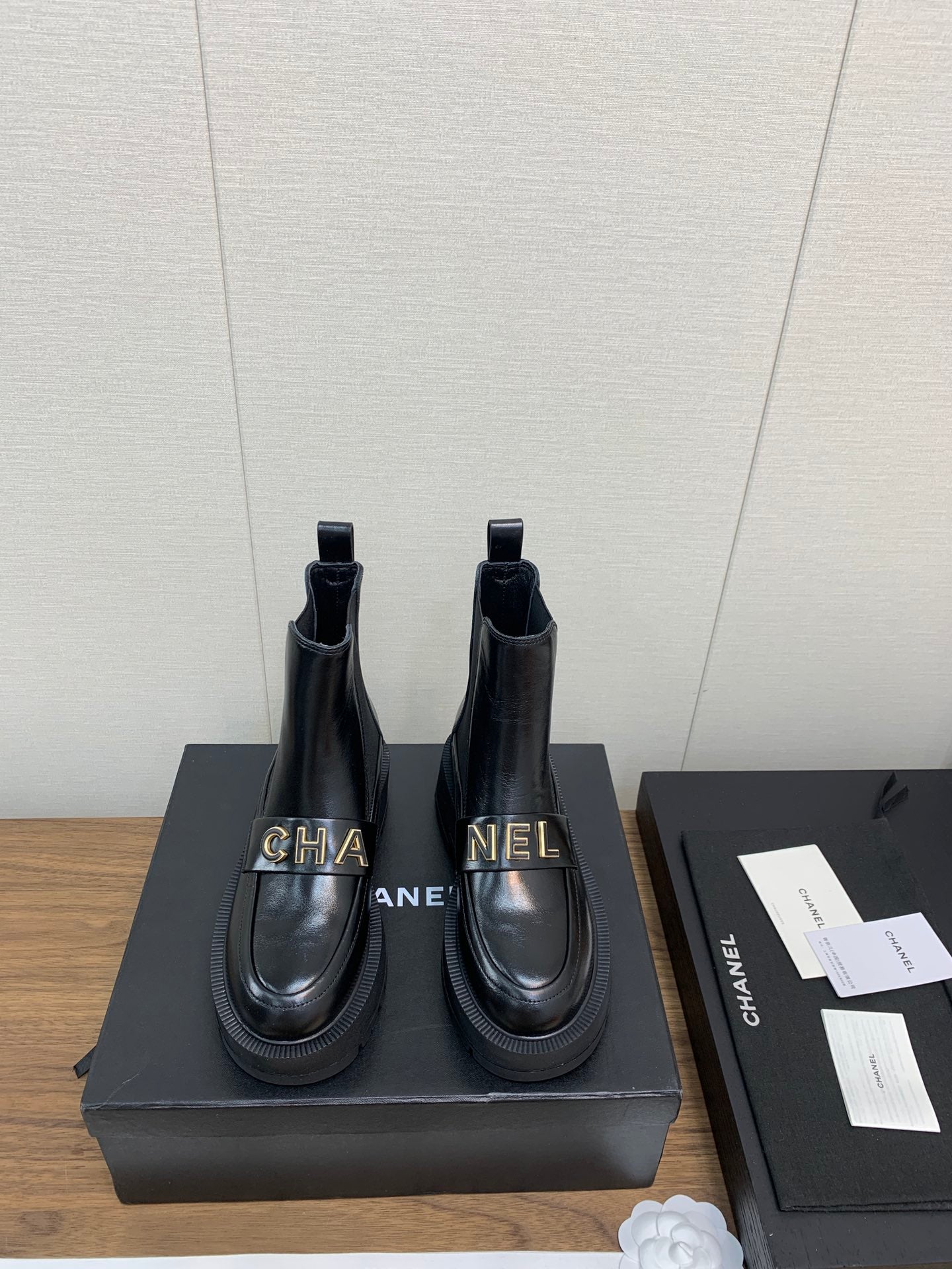 CC Short Boot Gold Metalic Lambskin Black Patent Calfskin