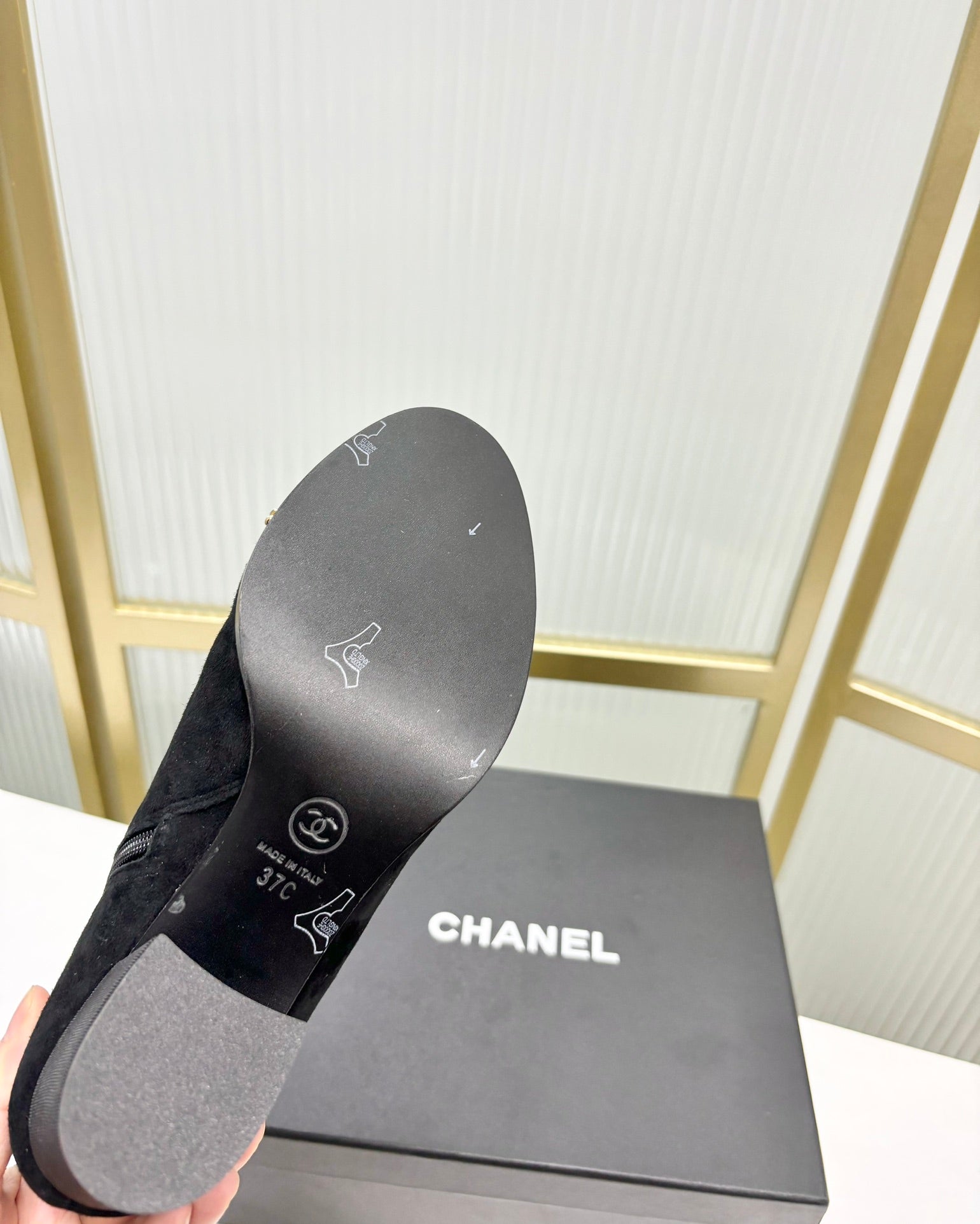CC Short boots Black Cowhide Mix Tweed Fabric