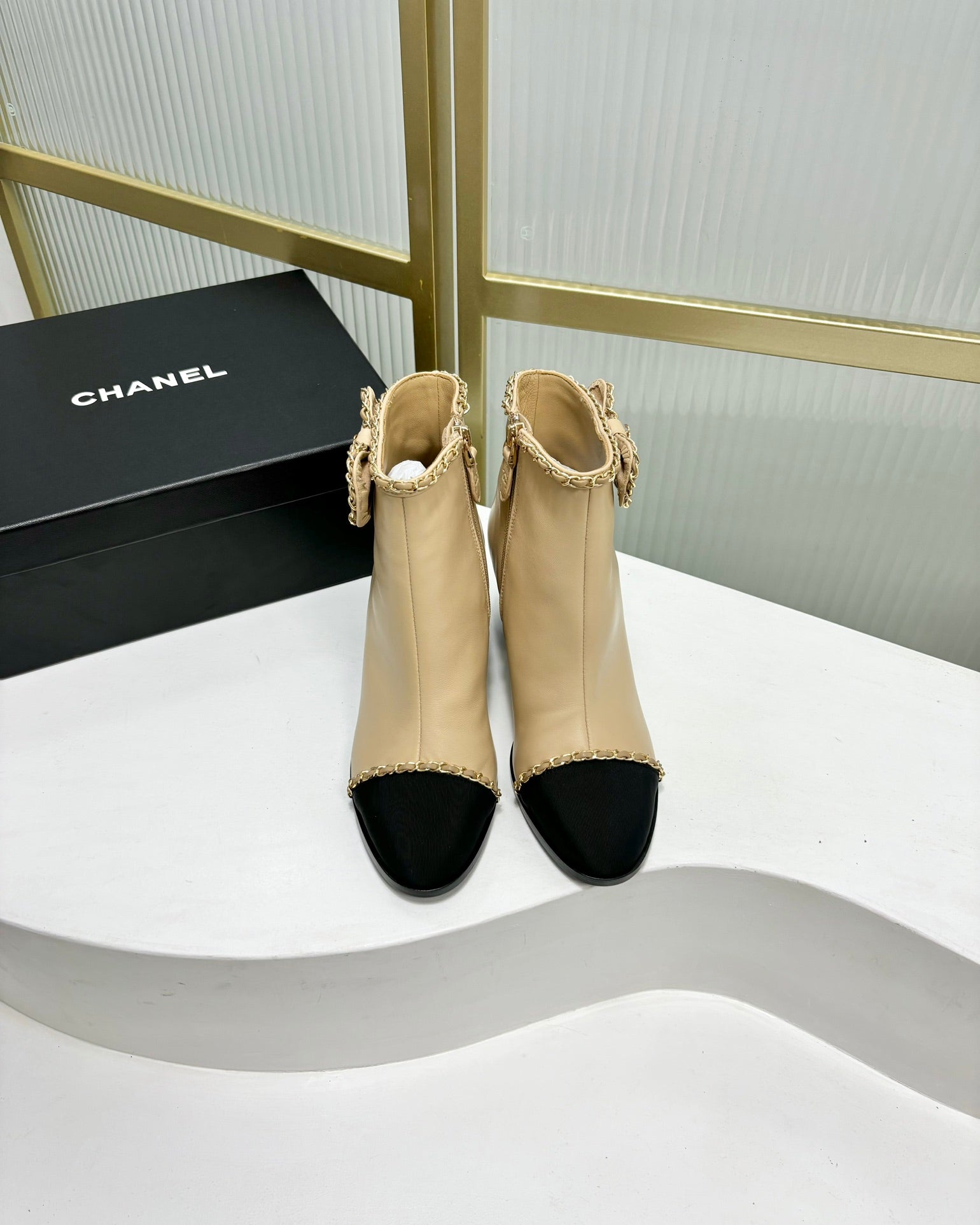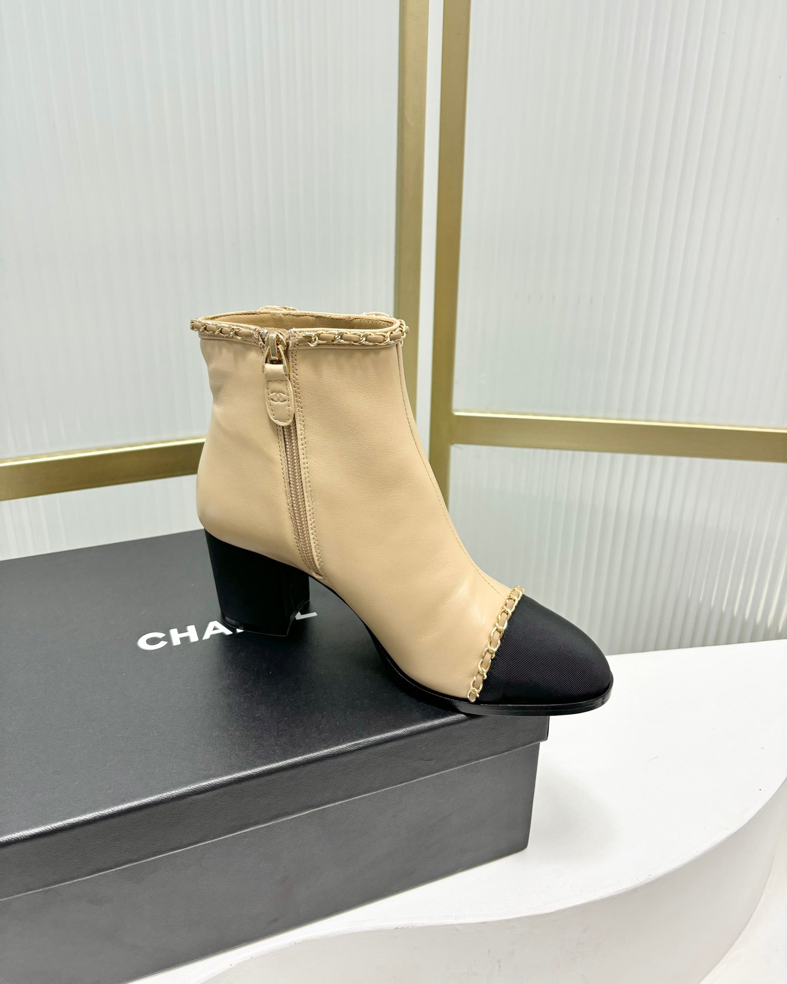 CC Ankle Boot 65 Beige Calfkin Black Grosgrain Leather Strap