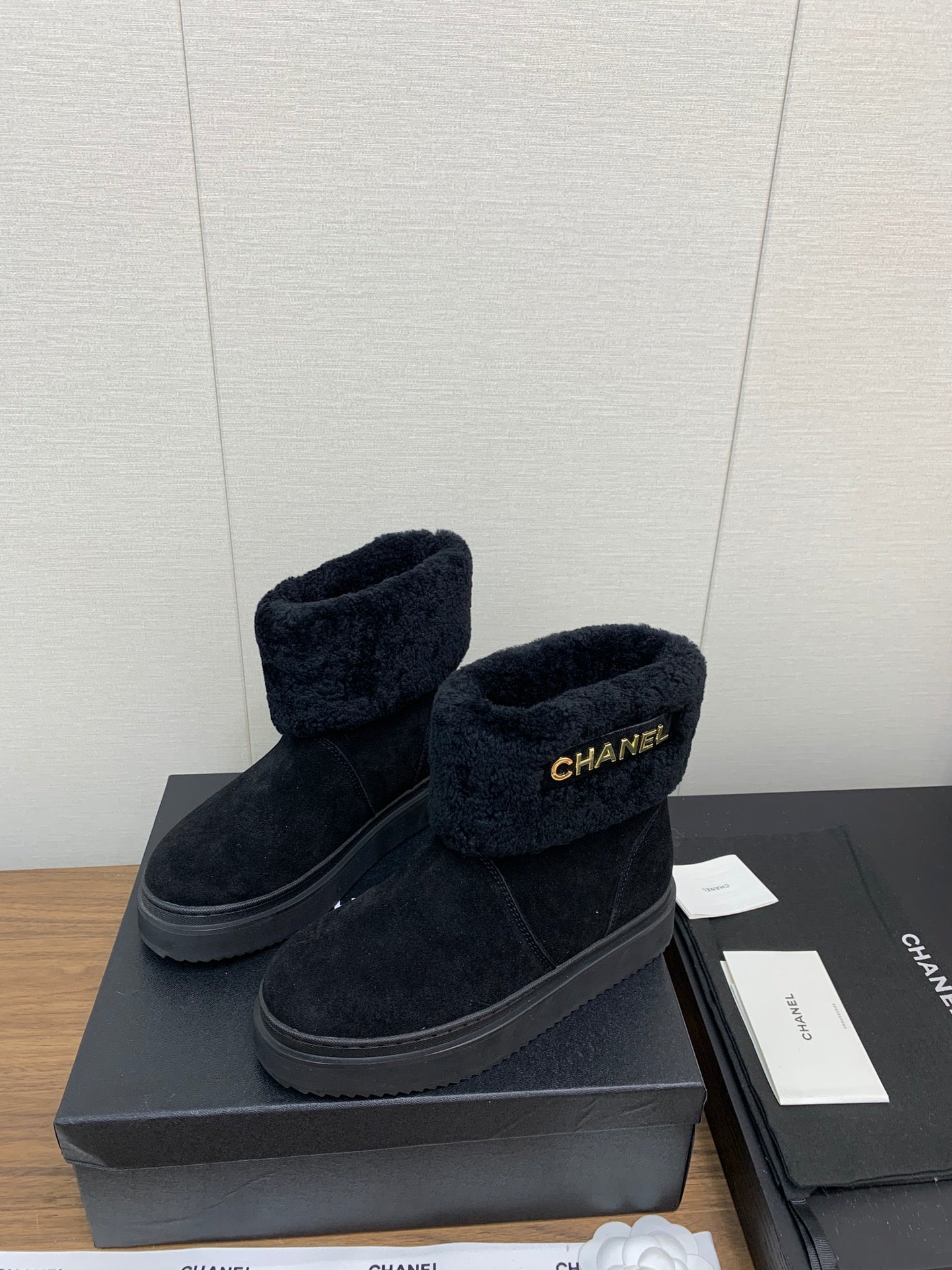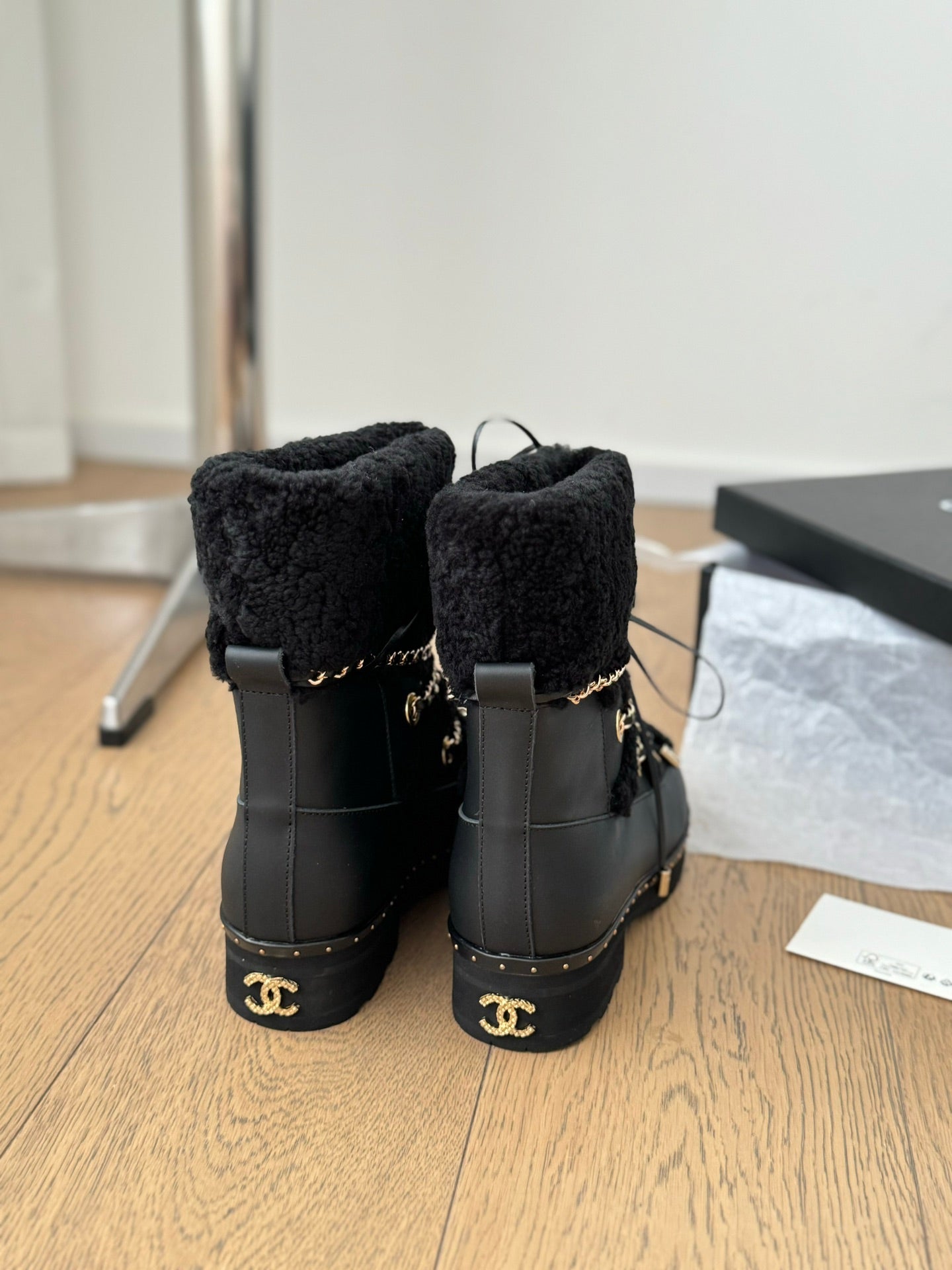 CC CHUNKY BOOTS IN BLACK SMOOTH FLEECE AND CALFSKIN