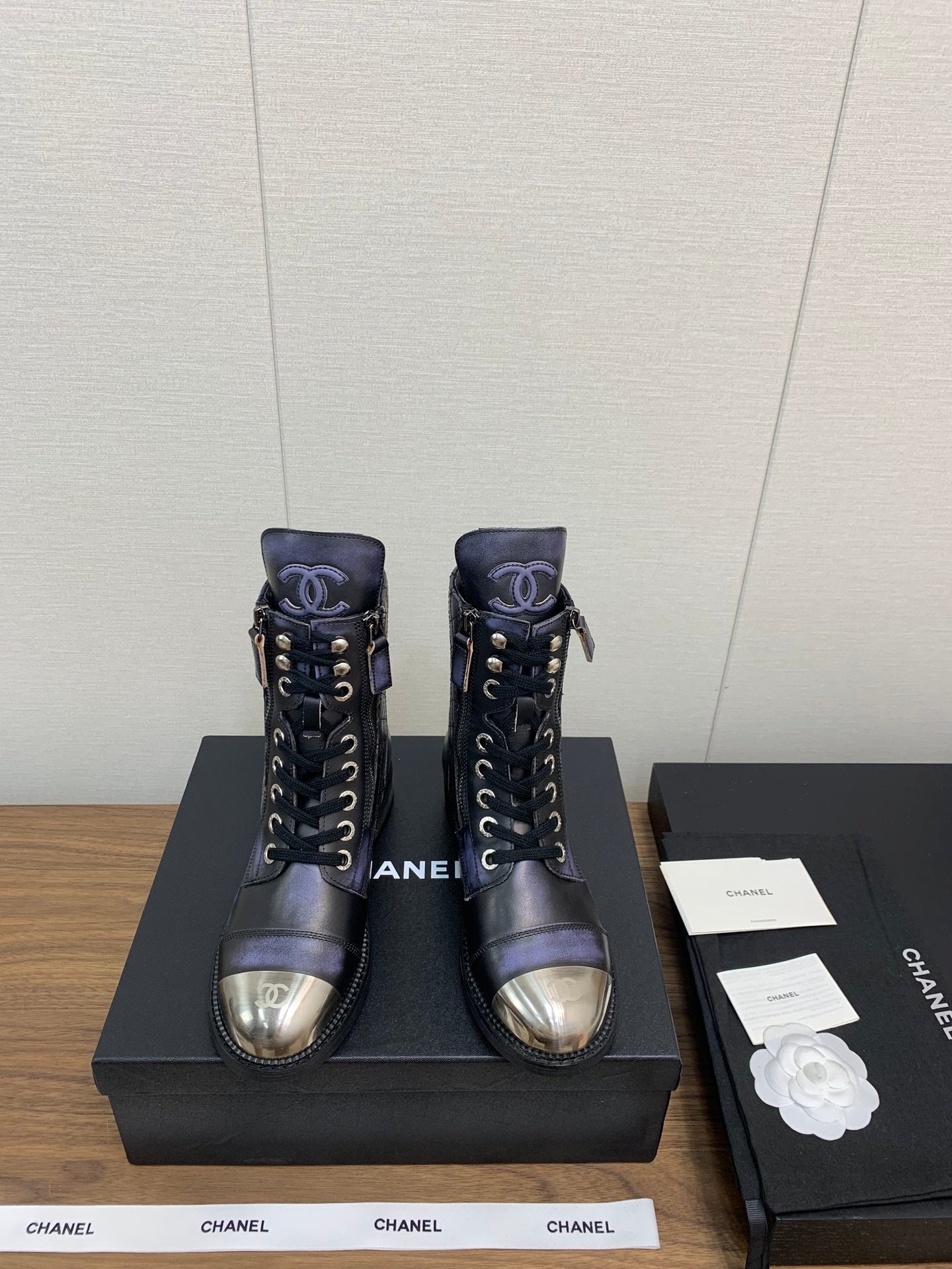 CC Short Boot Silver Metalic Lambskin Black Patent Calfskin