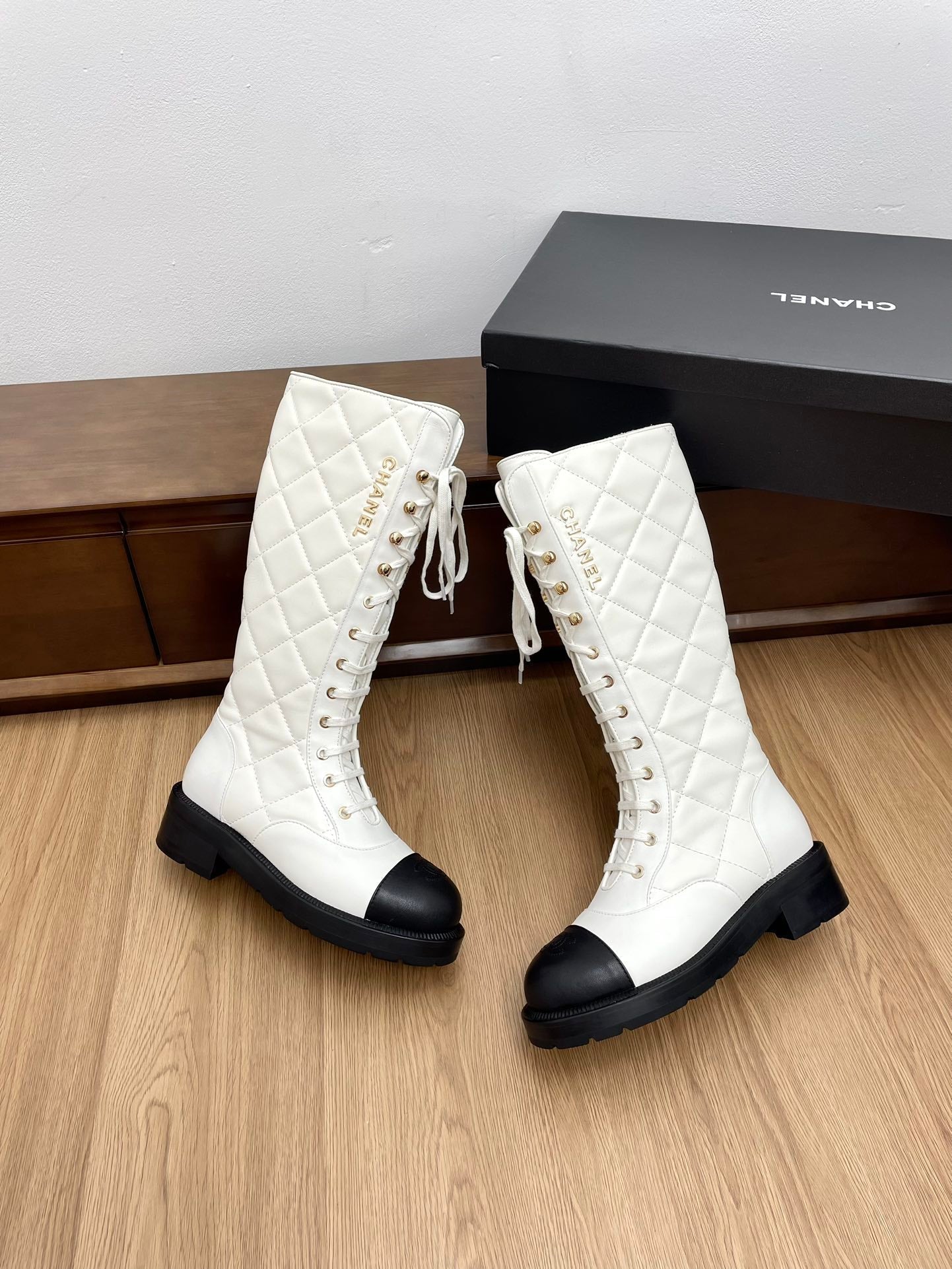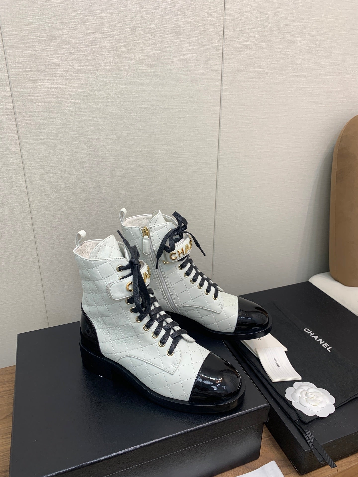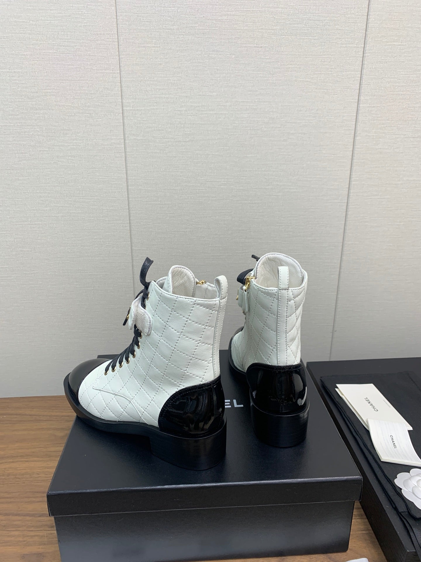 CC SHORT BOOTS 65 MM IN WHITE MIX BLACK QUILTED PATTERN LAMBSKIN
