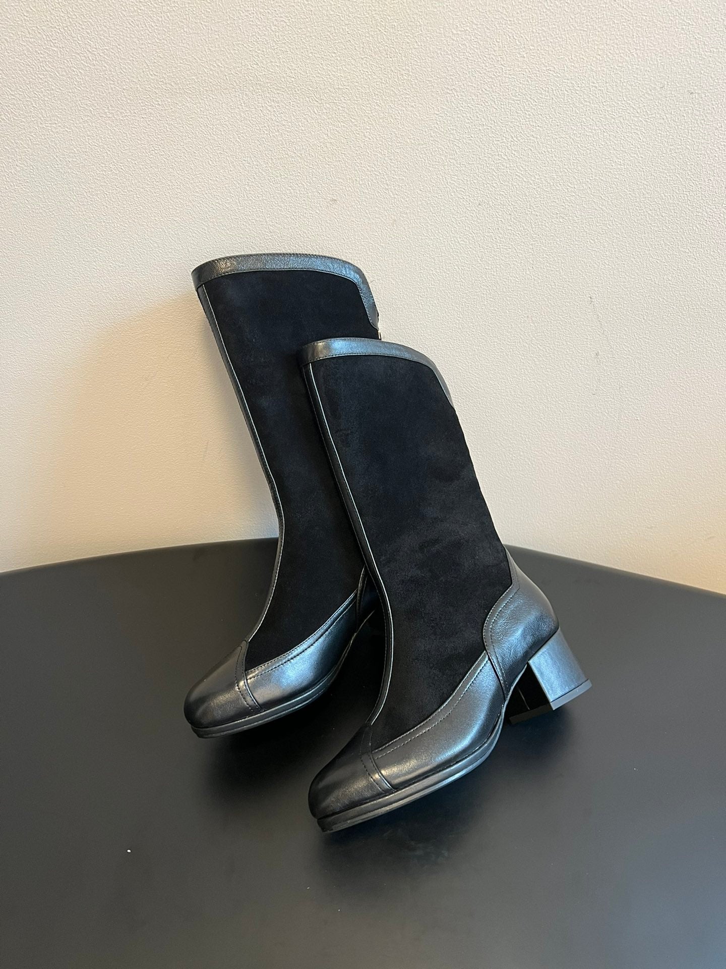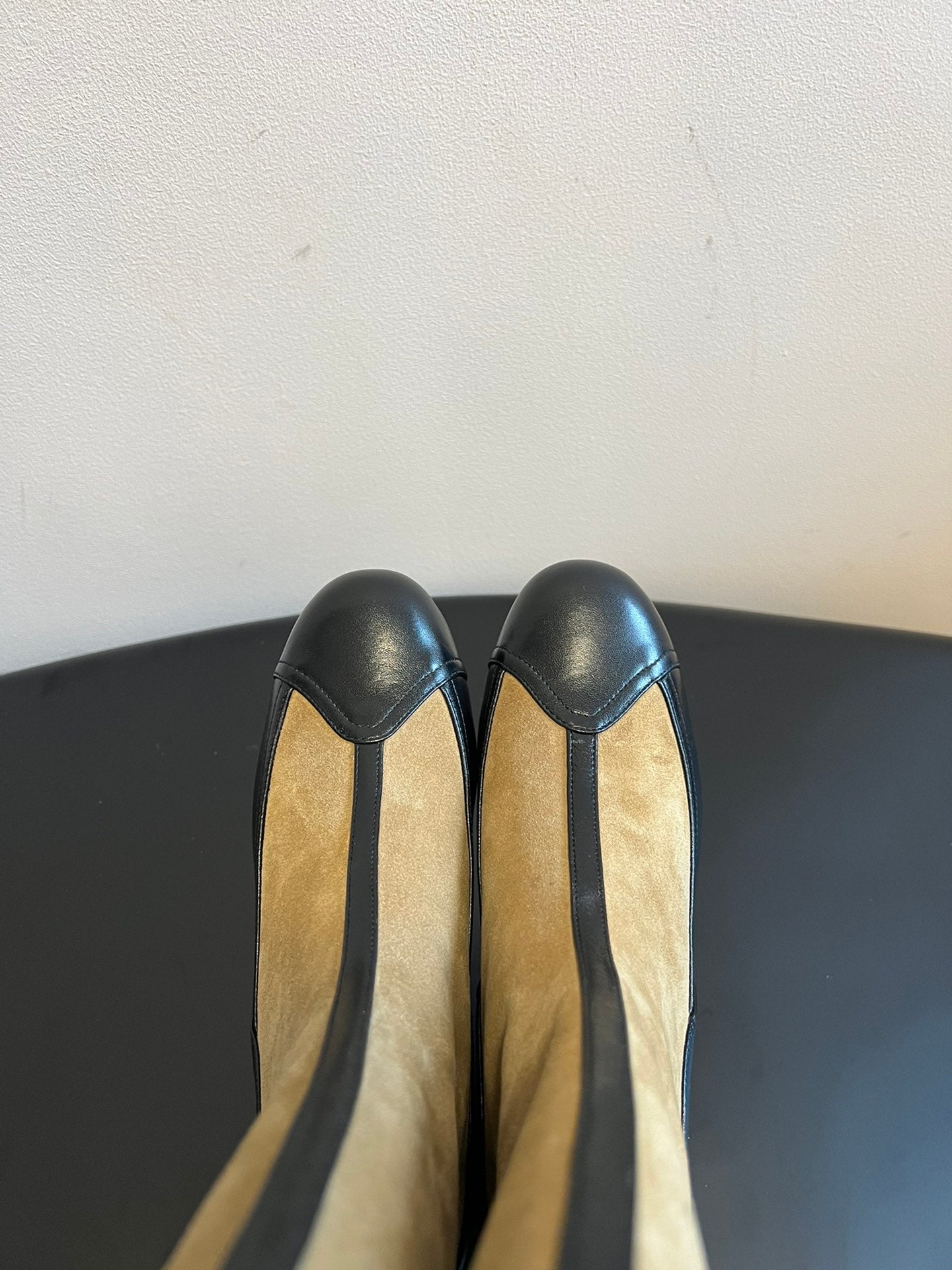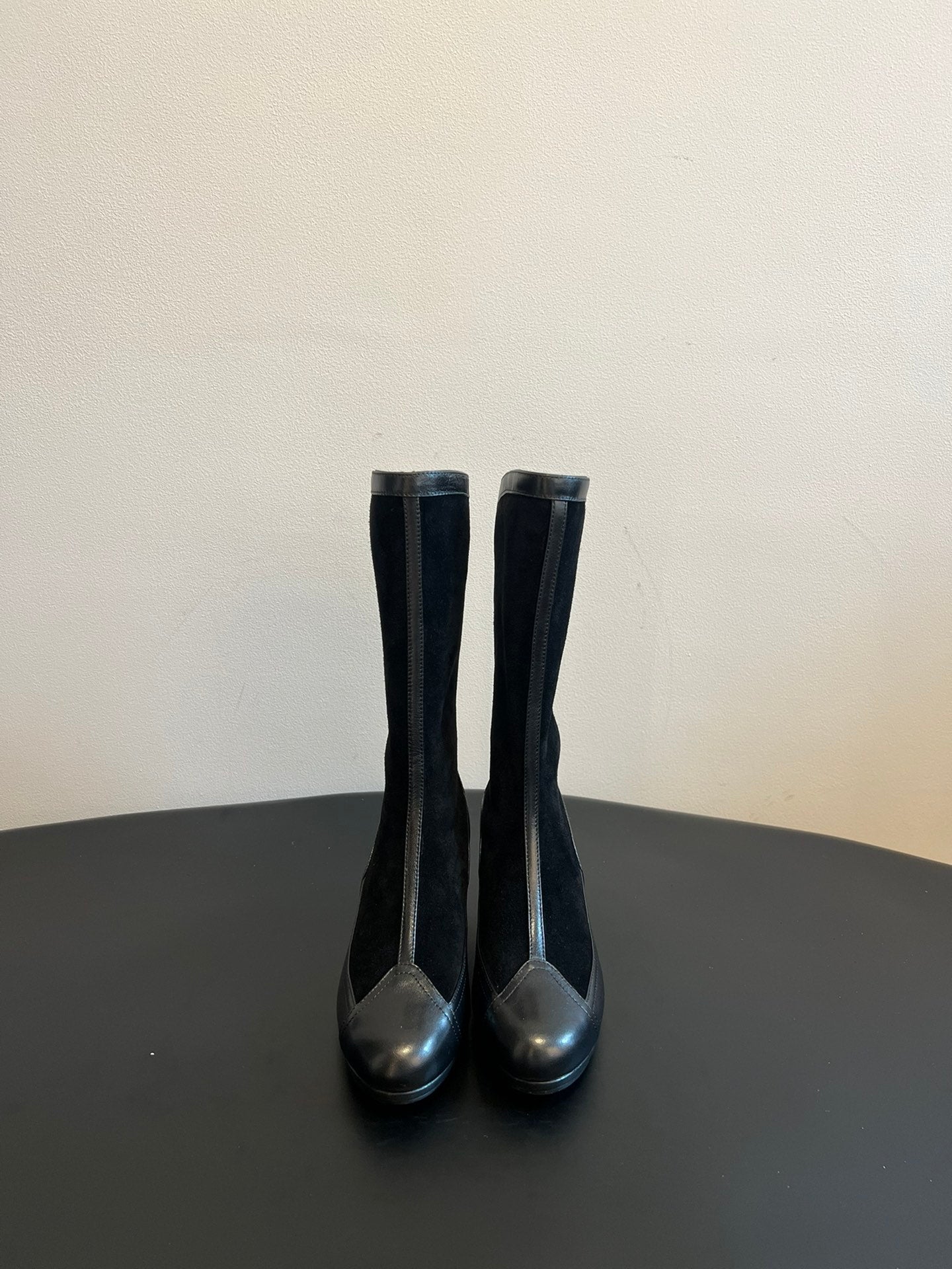 short boots beige black suede kidskin