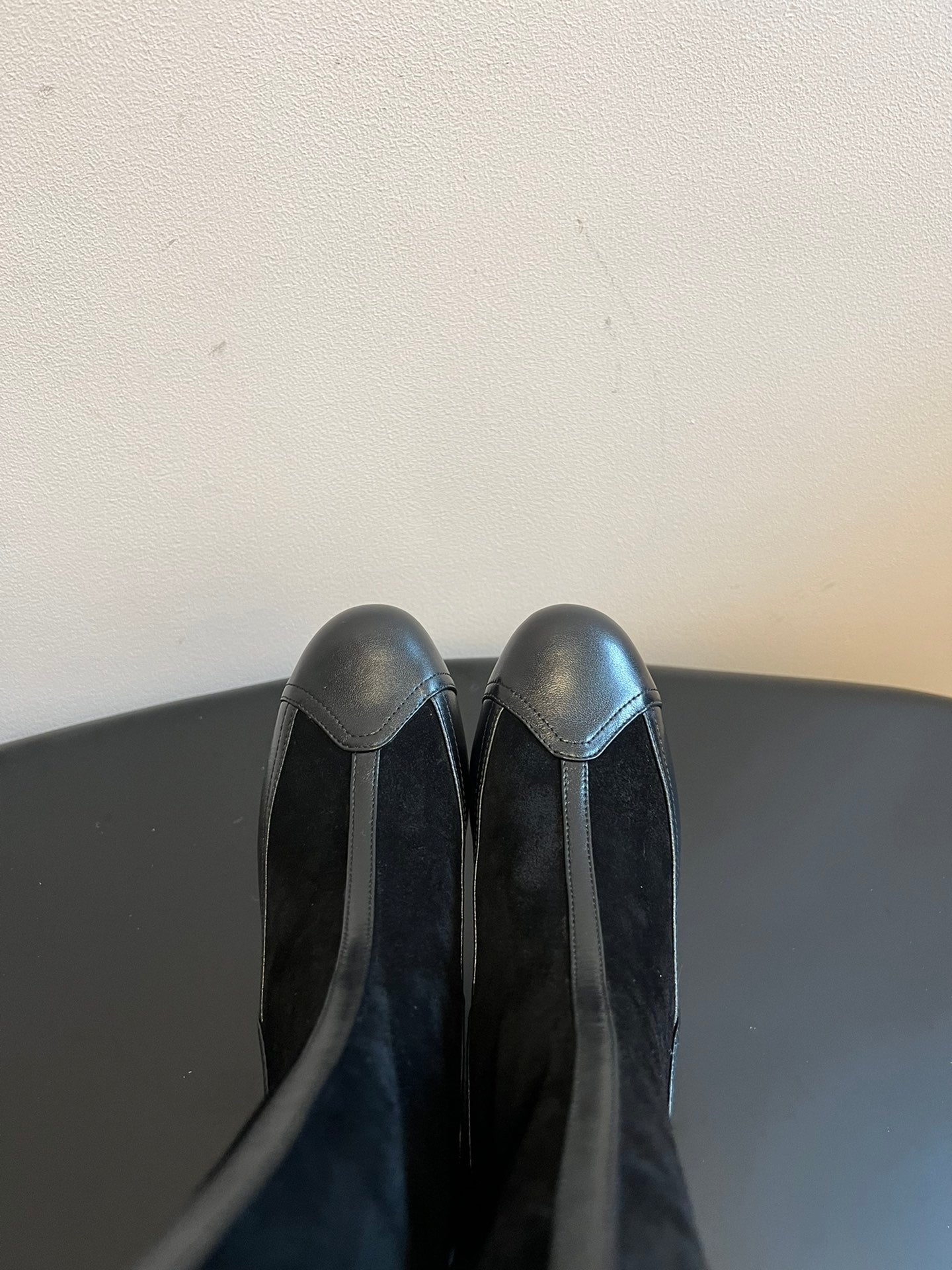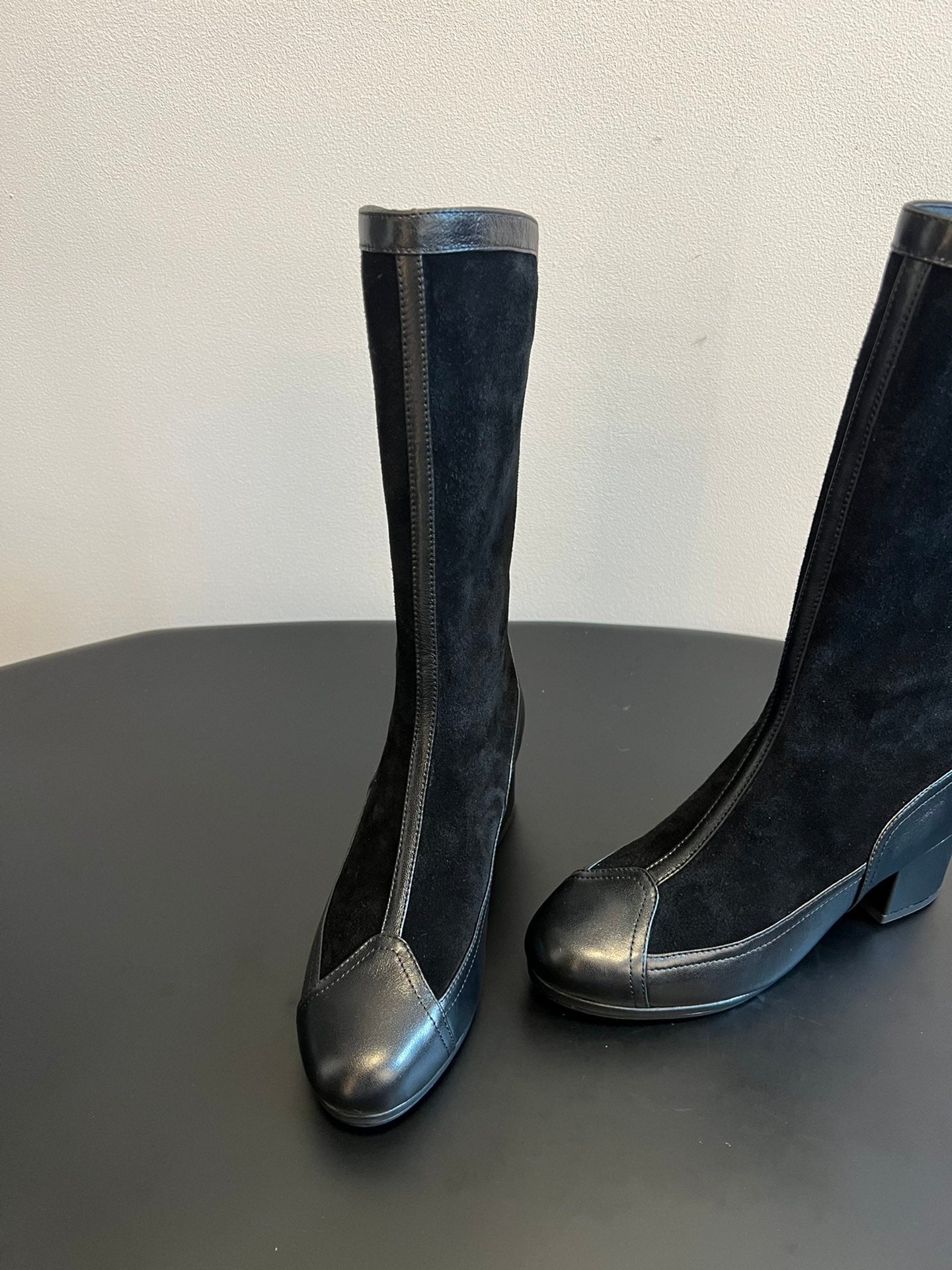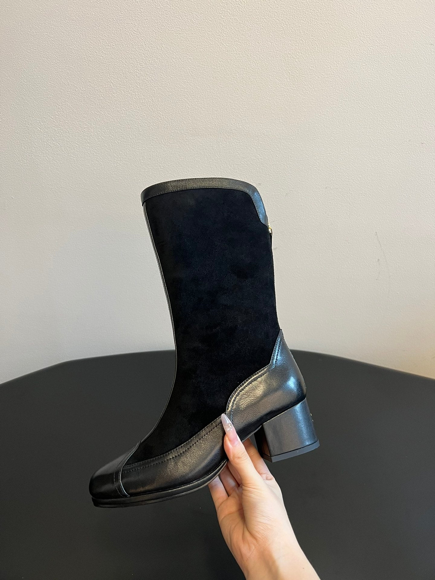 short boots beige black suede kidskin