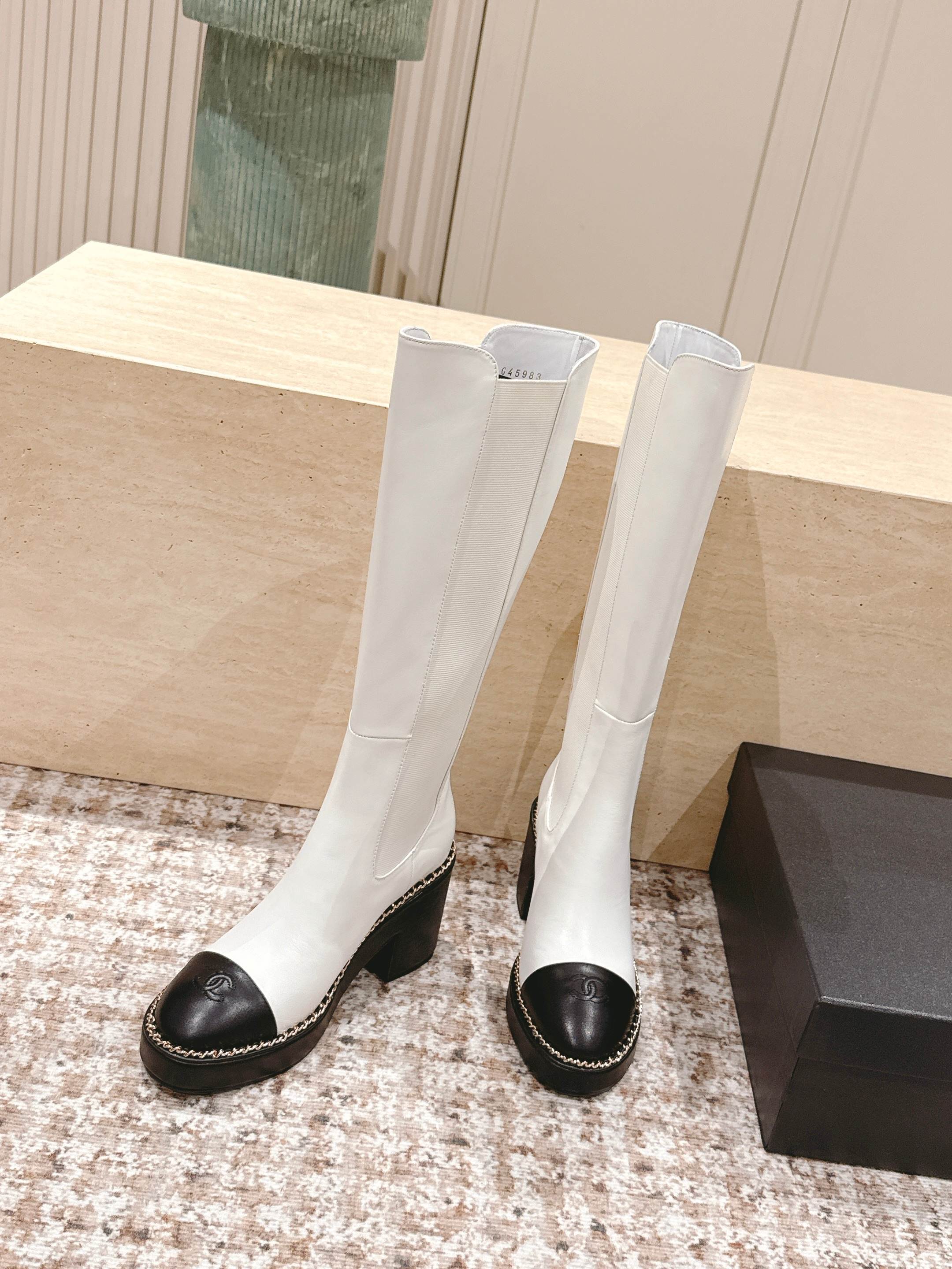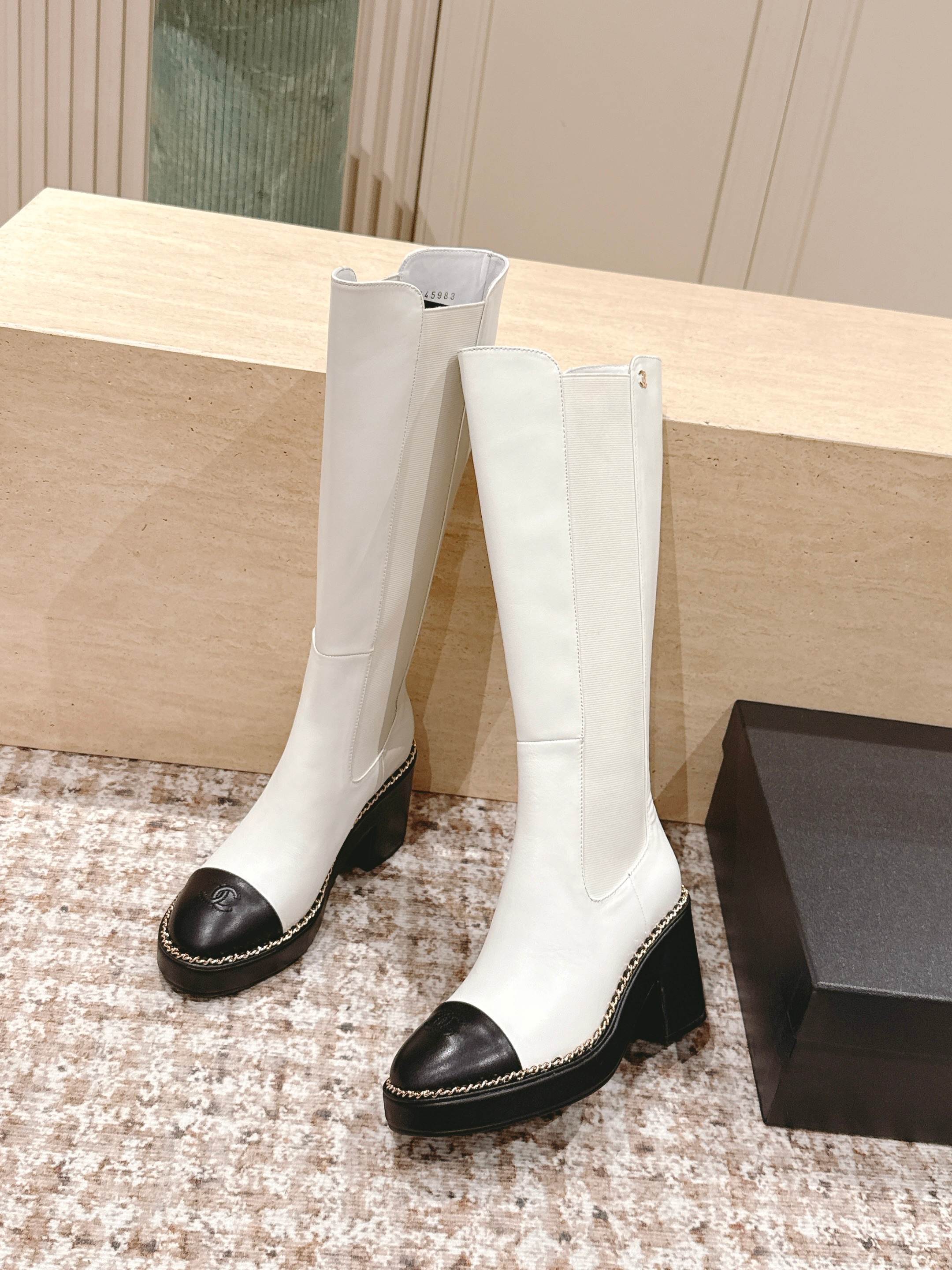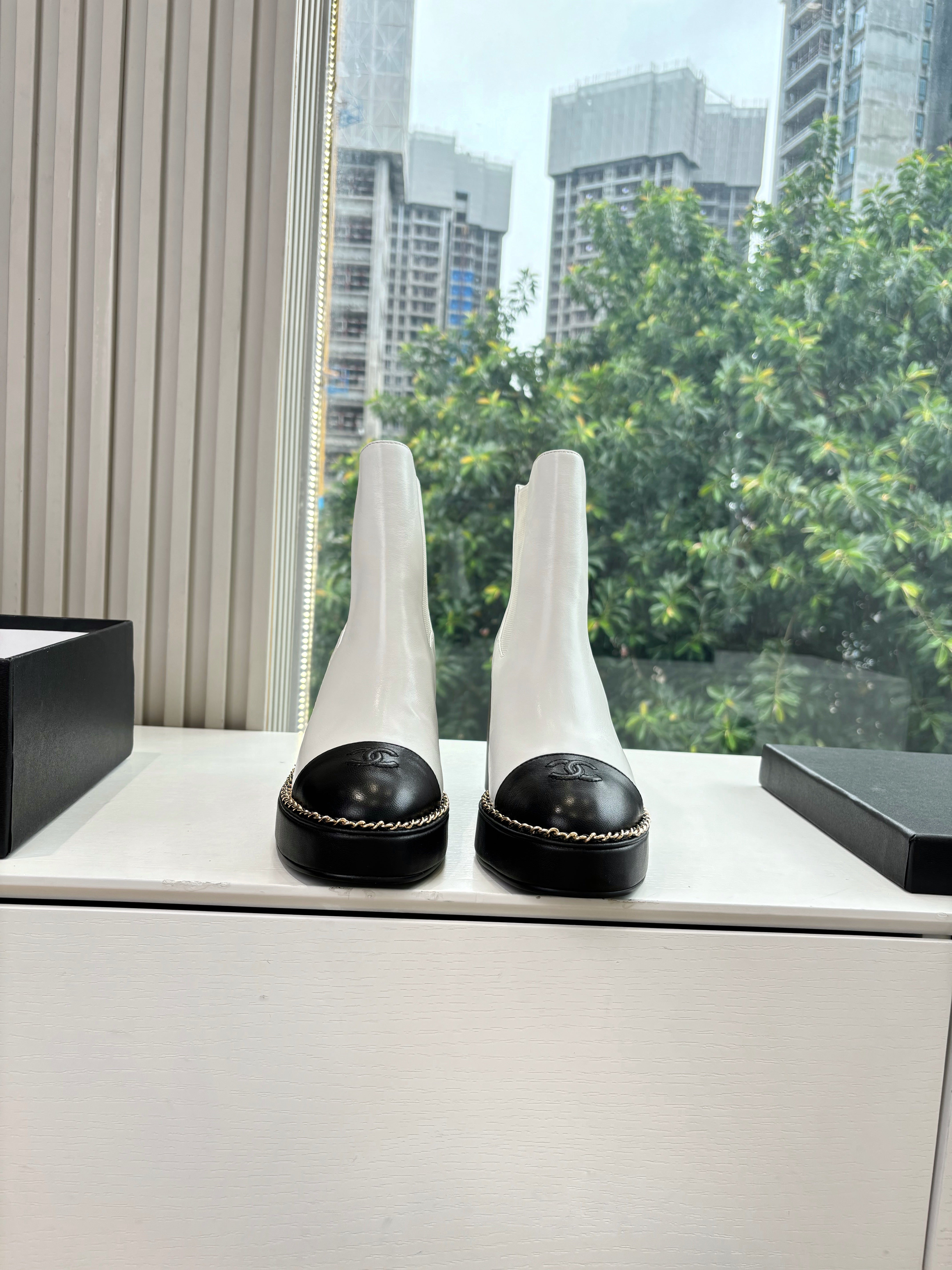 CC 25SS High Boot White Black Calfskin 431721
