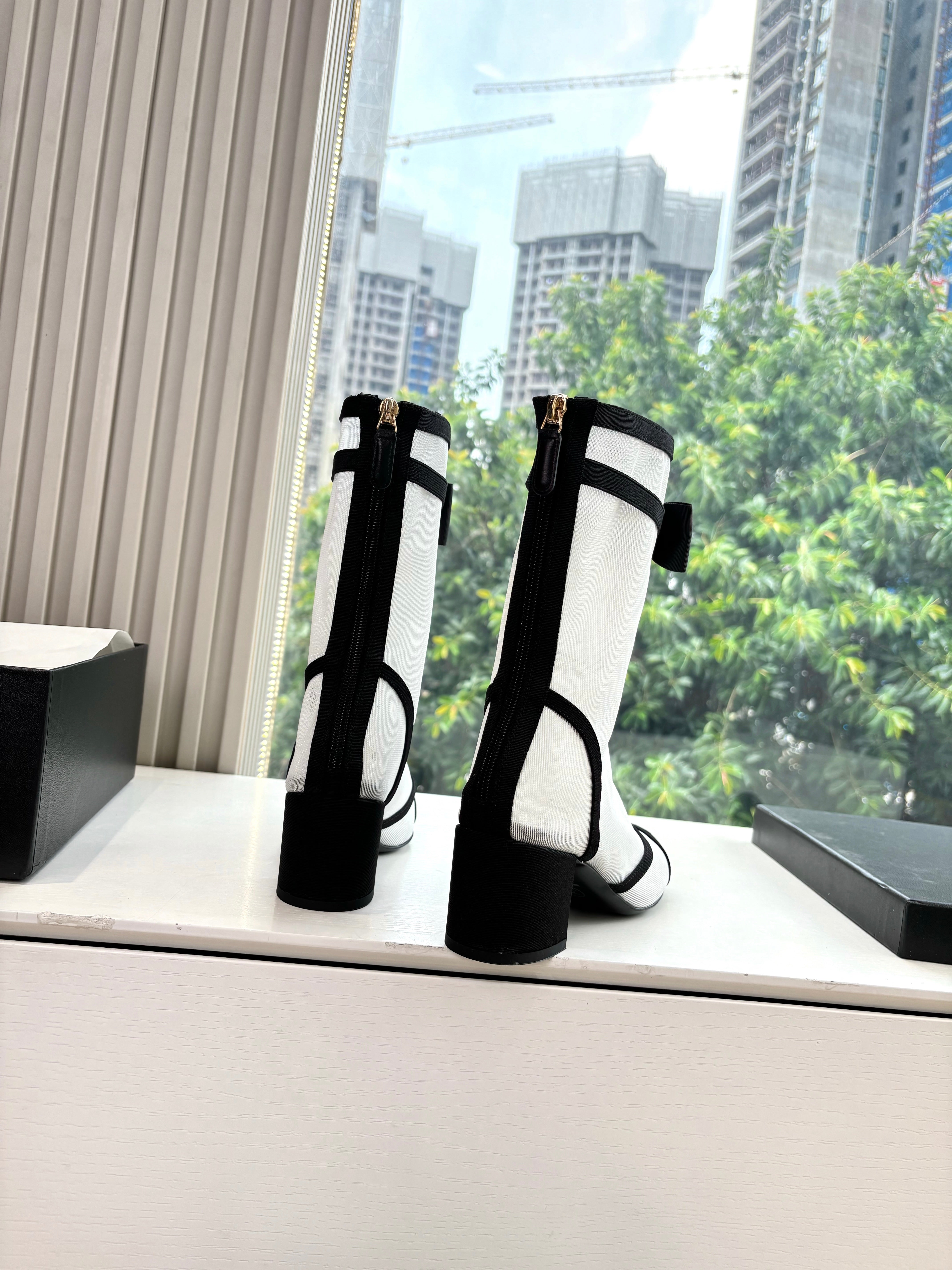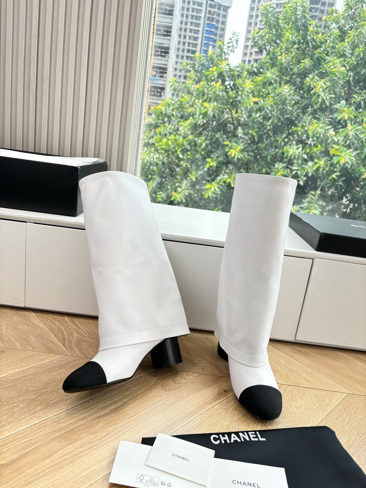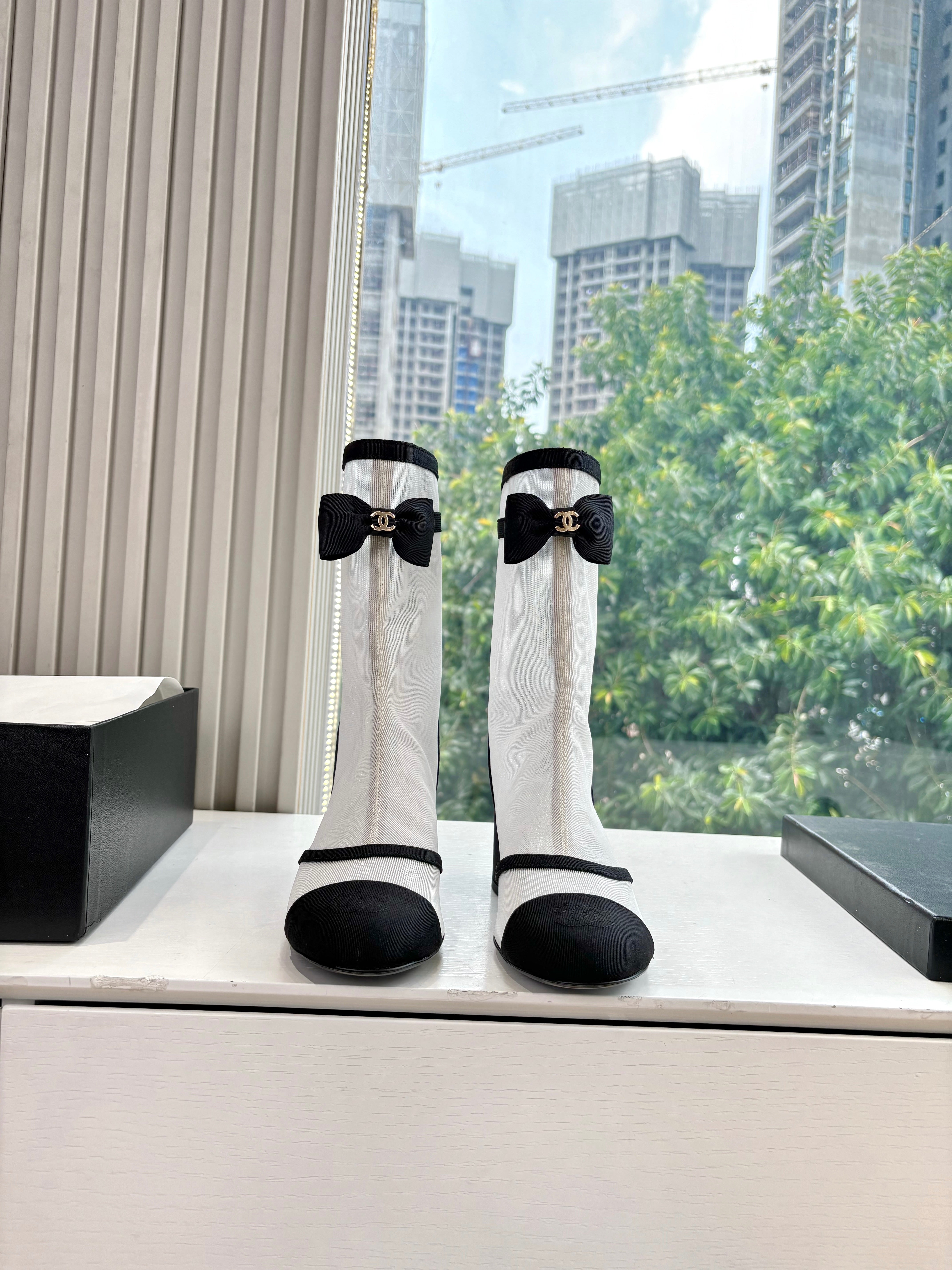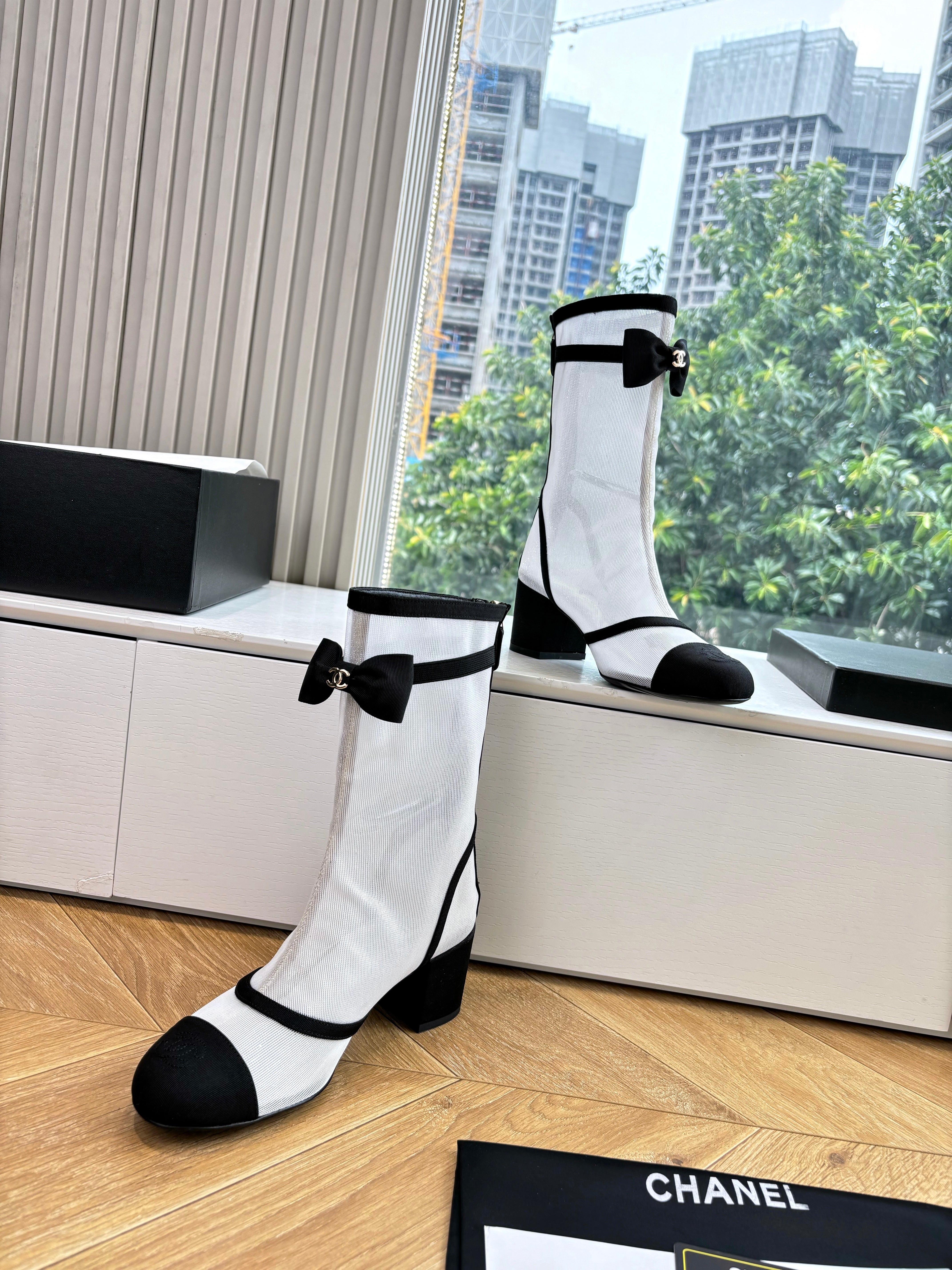 CC 25SS High Boot White Black Calfskin 431721