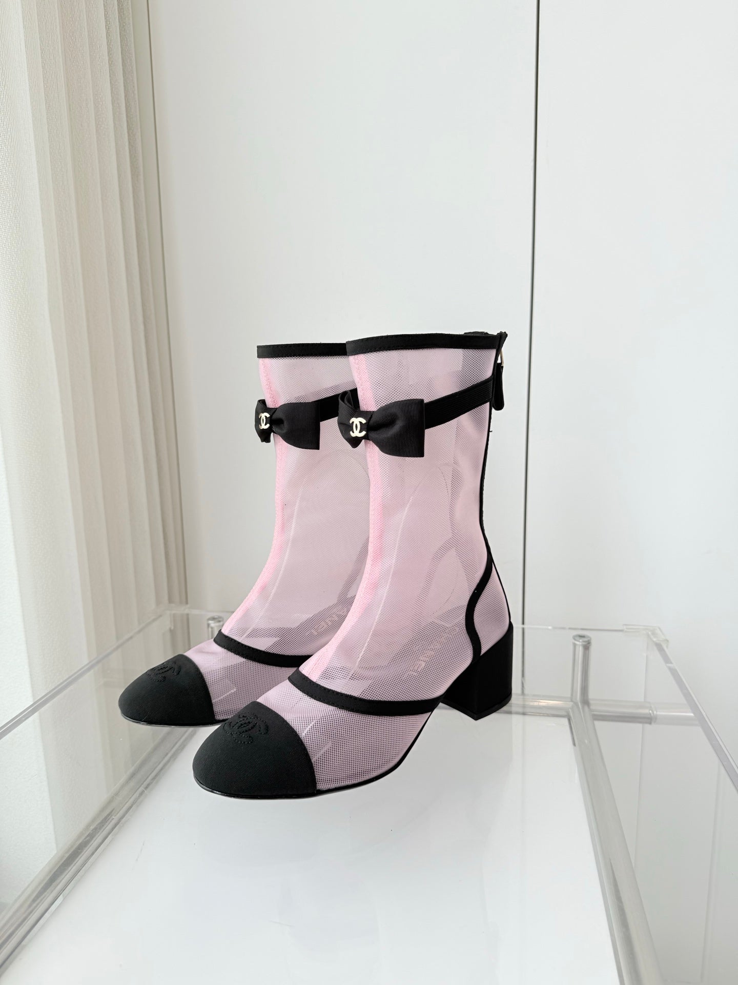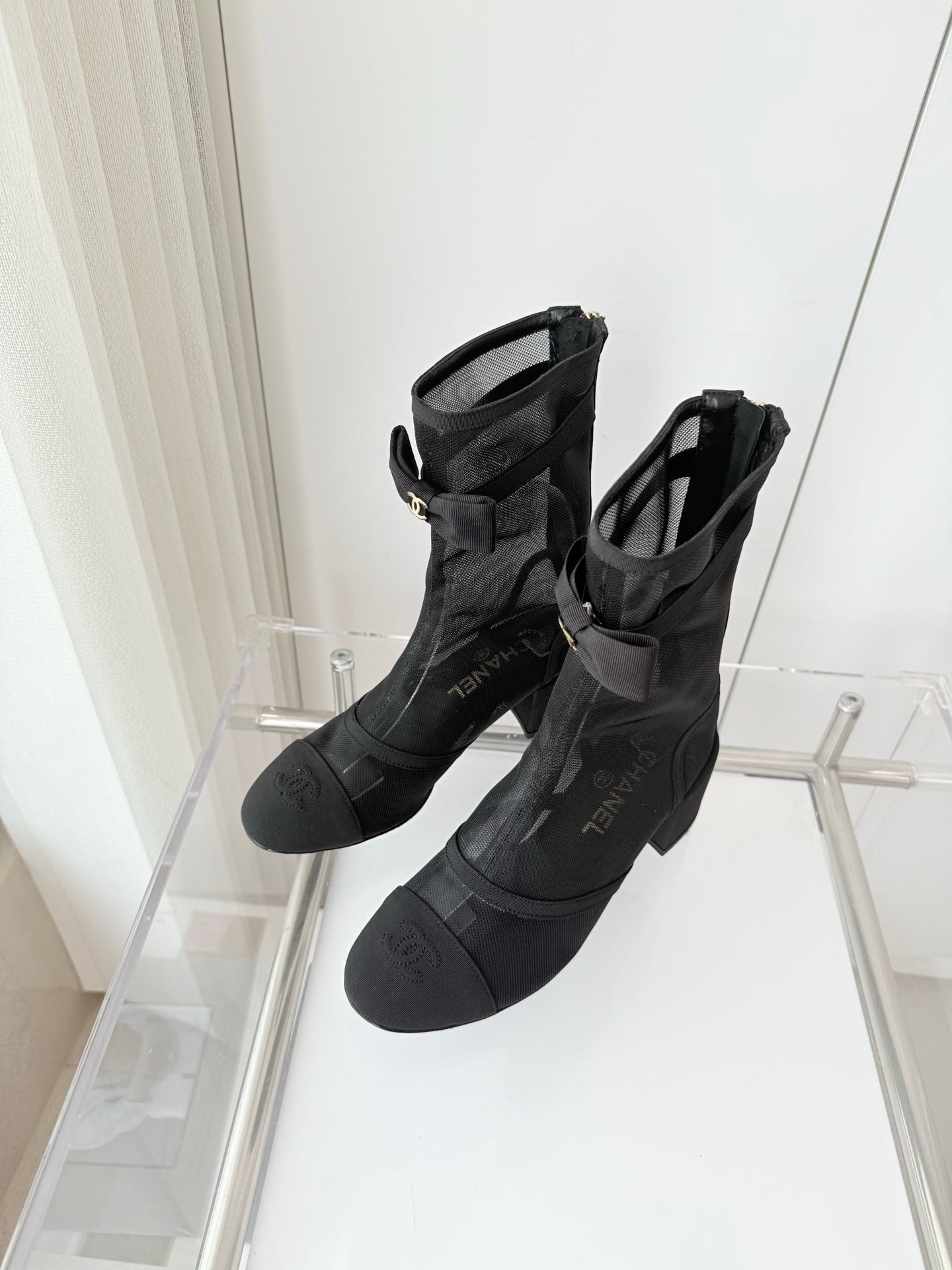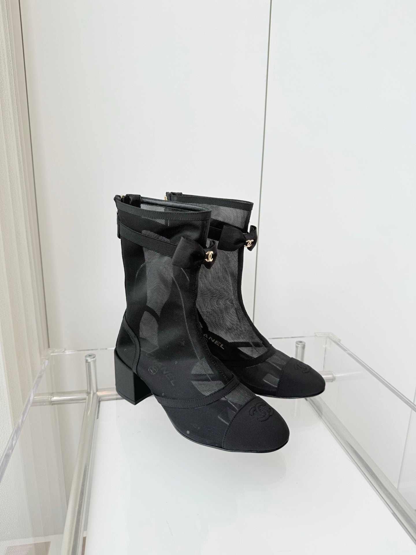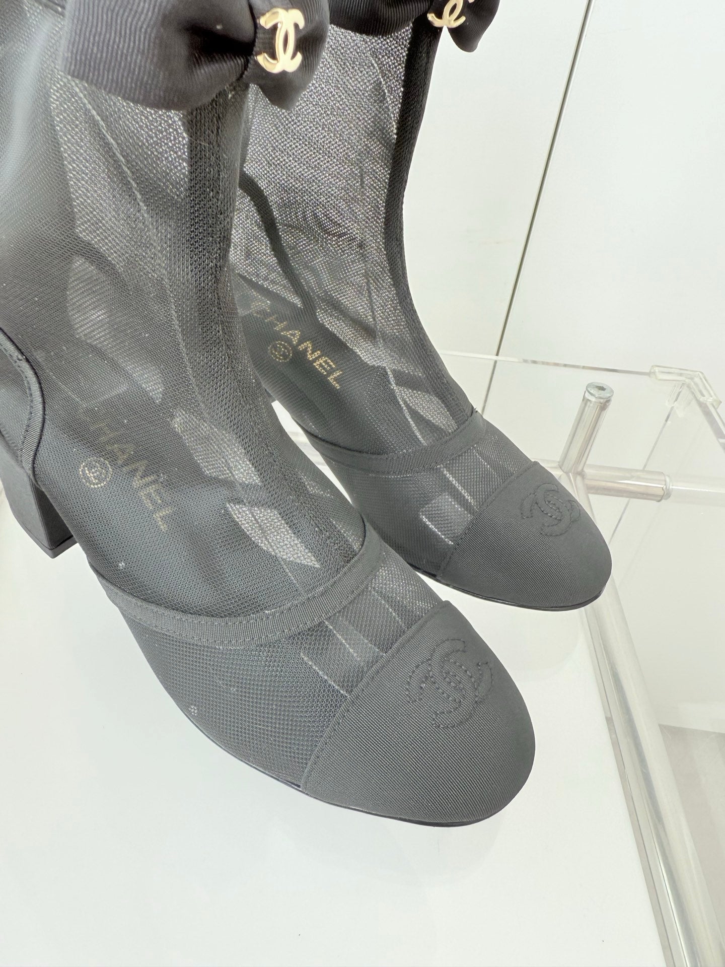 CC 25 Short Boot Black Mesh Calfskin Black Bow 430322