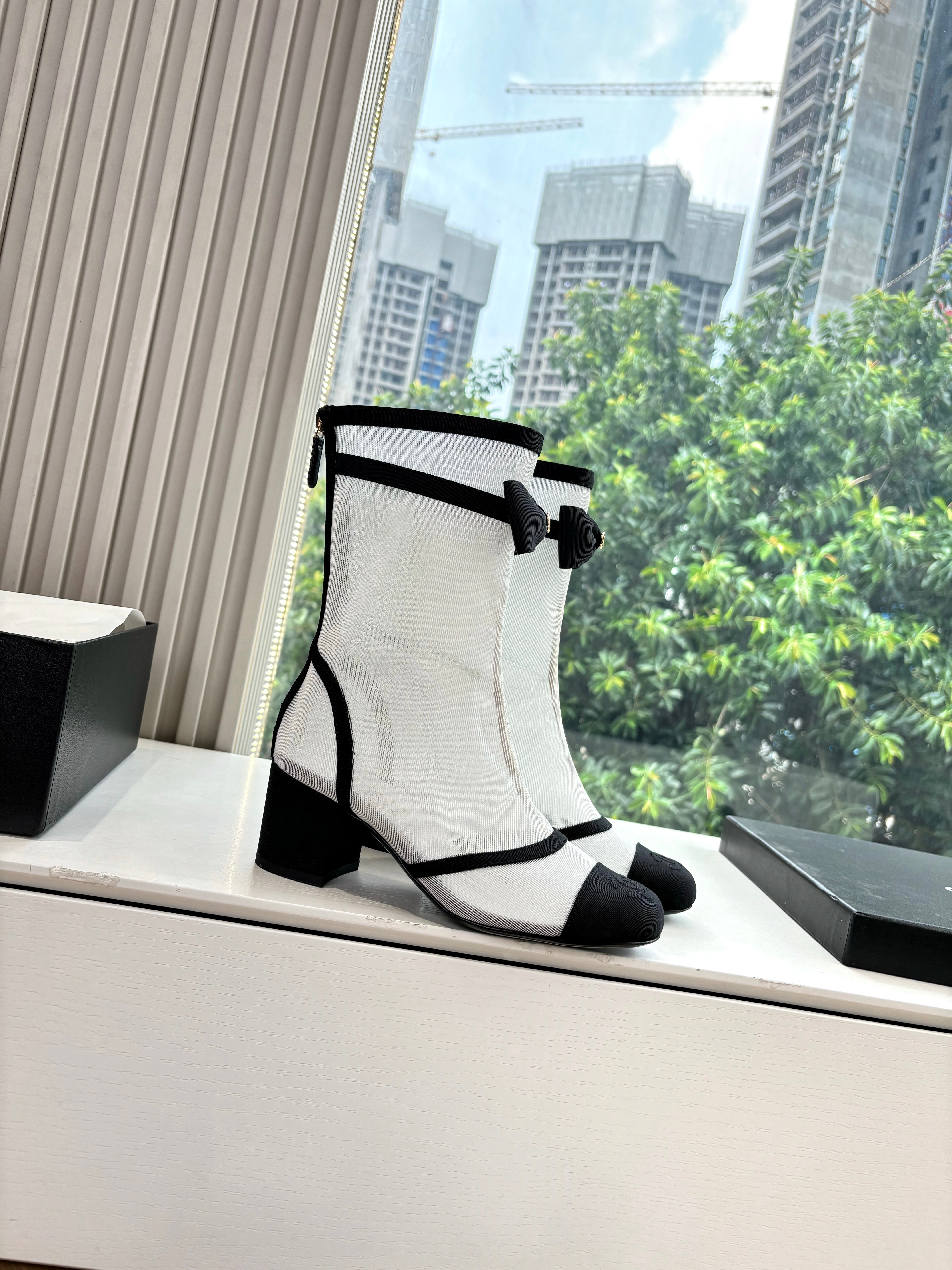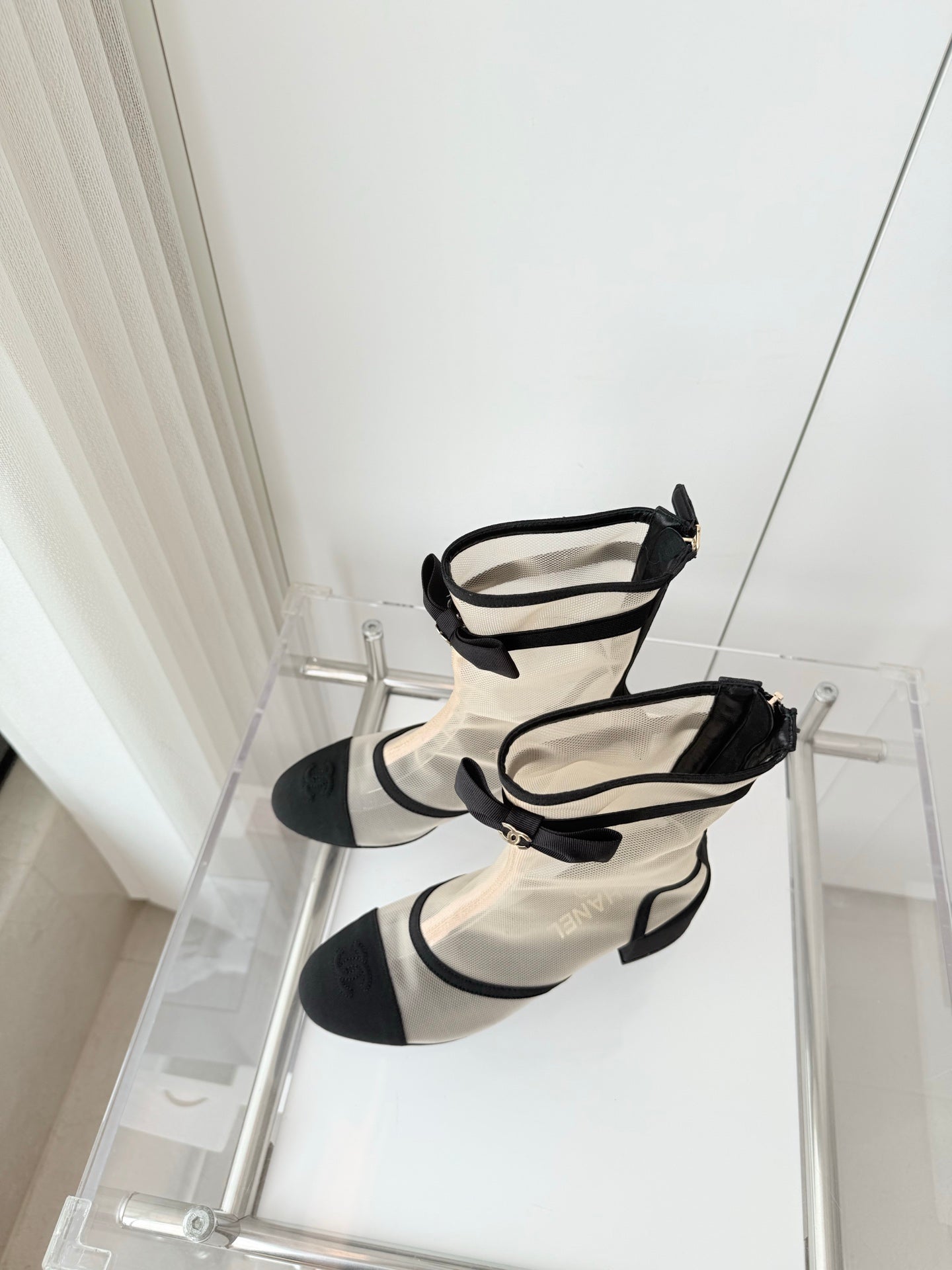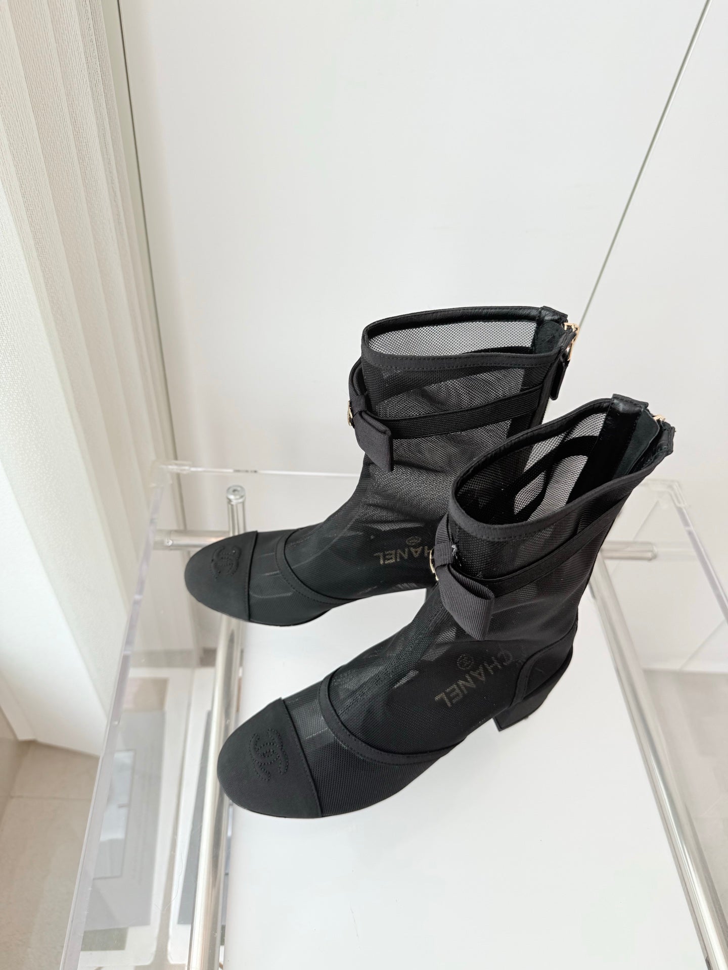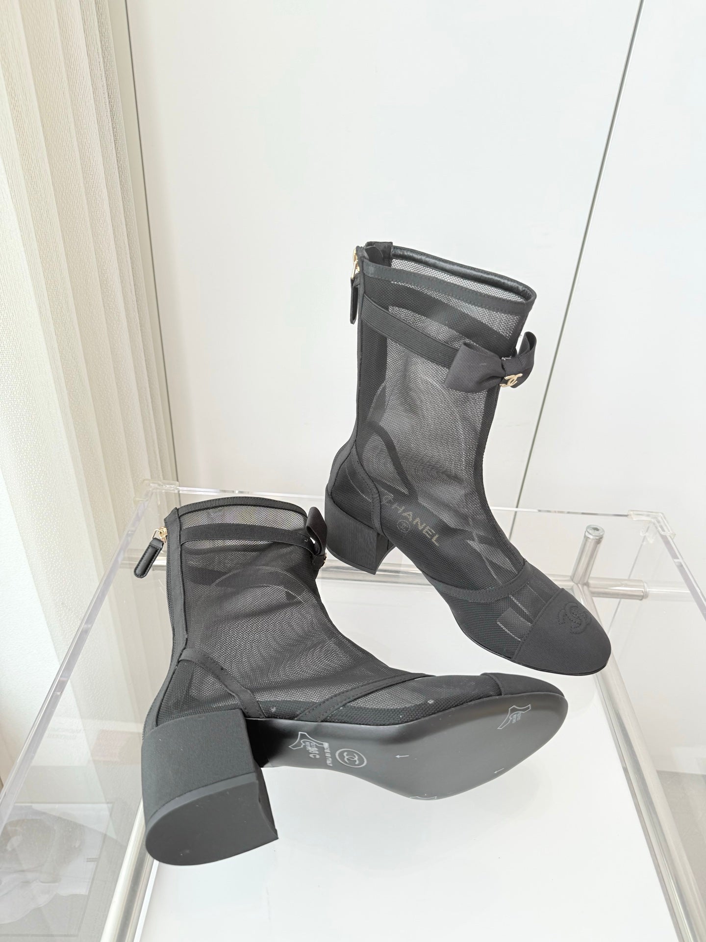 CC 25 Short Boot Black Mesh Calfskin Black Bow 430322