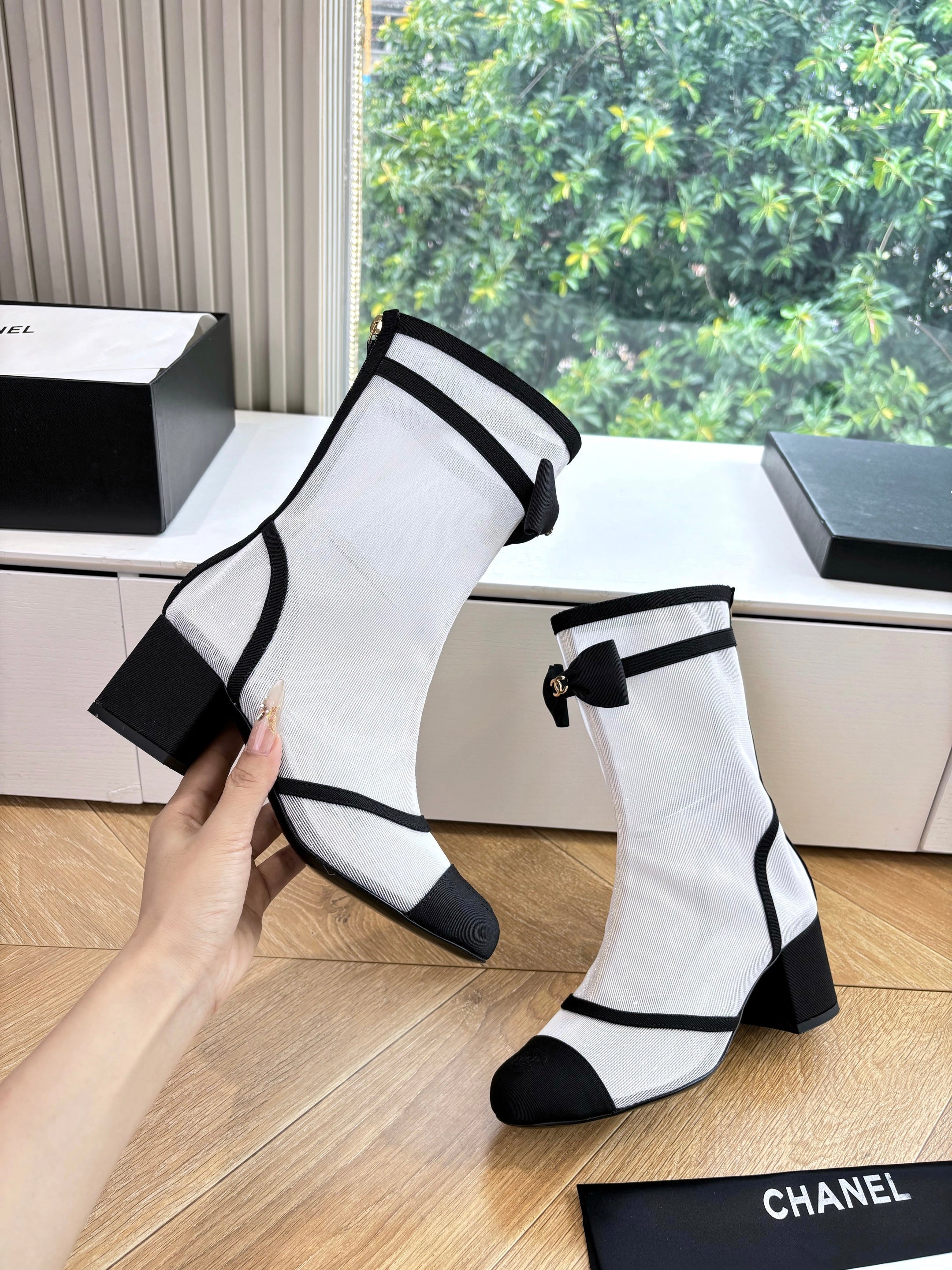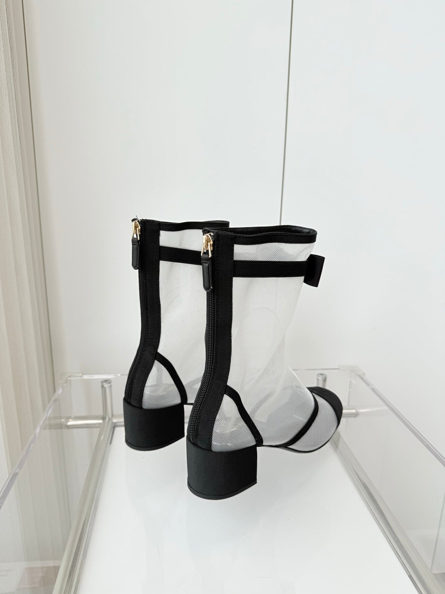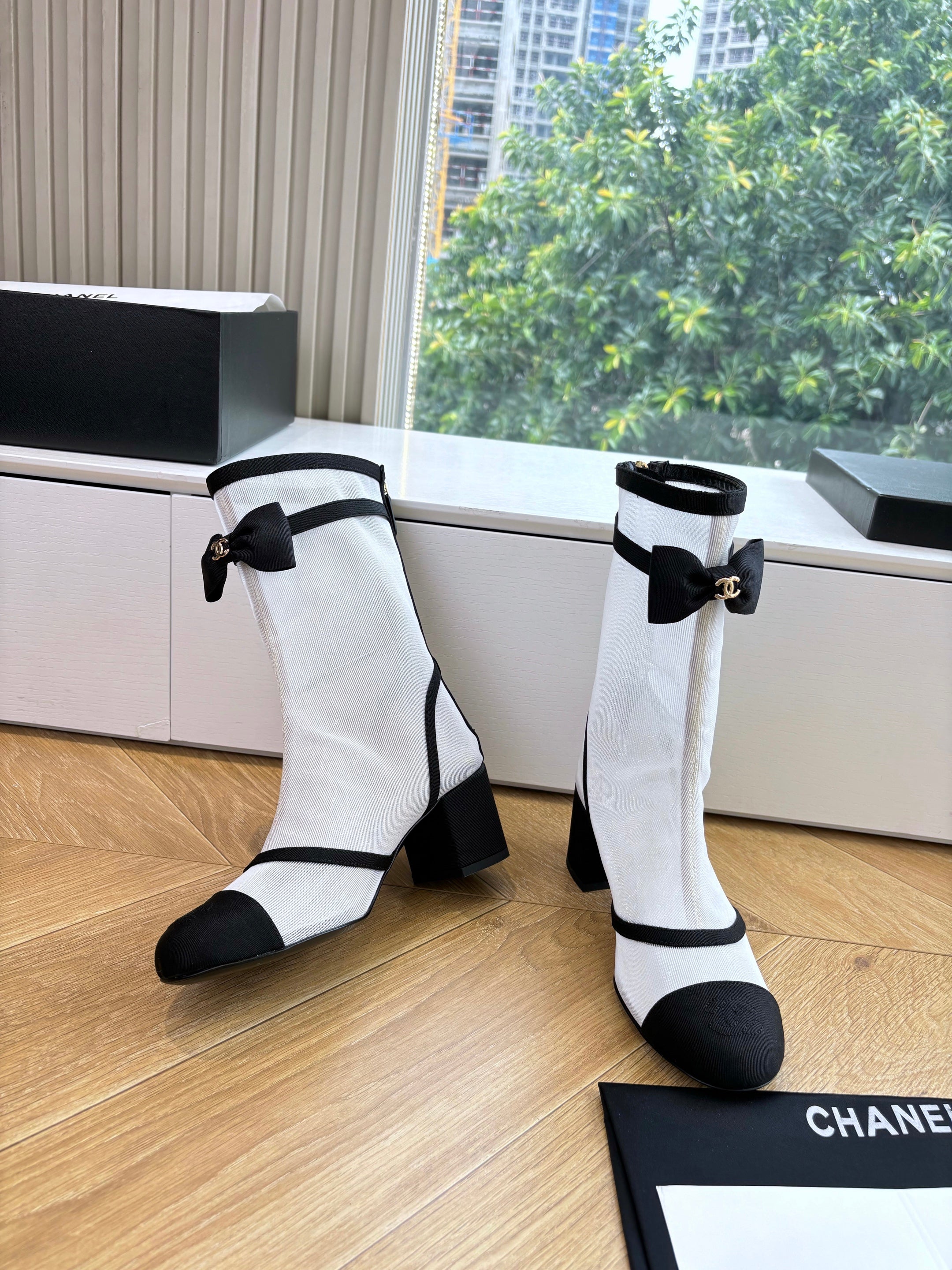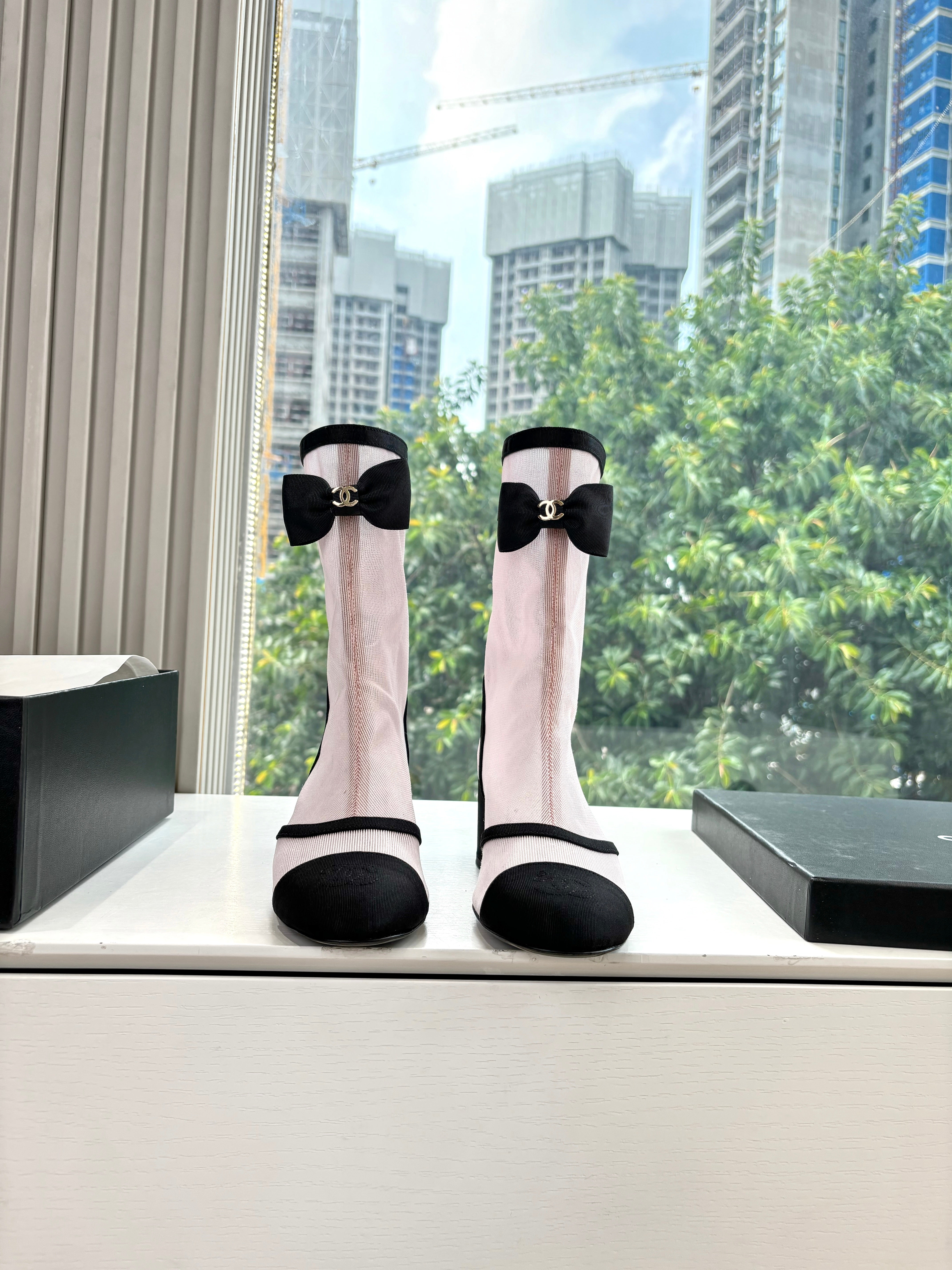 CC 25 Short Boot Black Mesh Calfskin Black Bow 430322