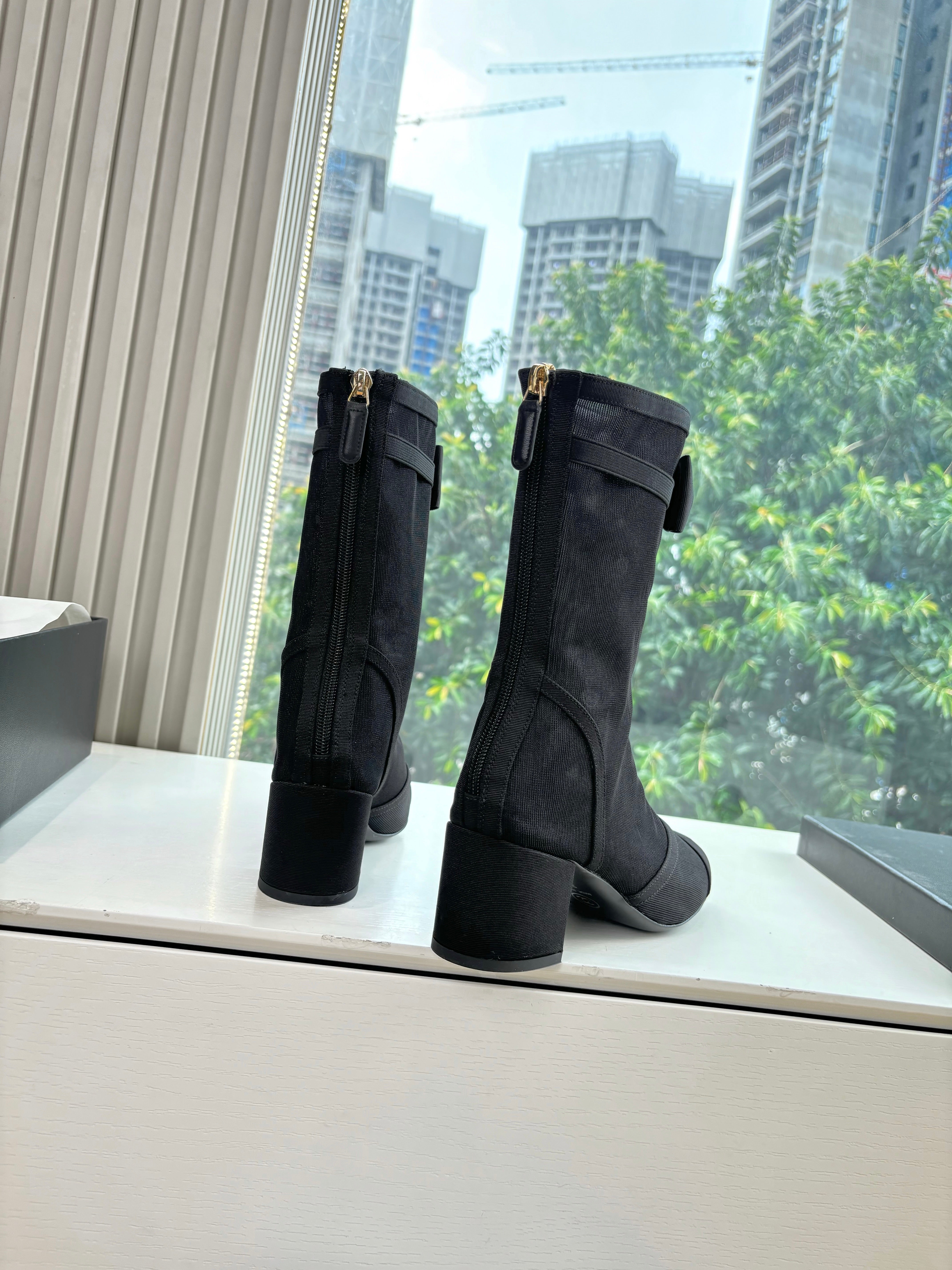 CC 25 High Boot Black Calfskin Grosgrain 430335