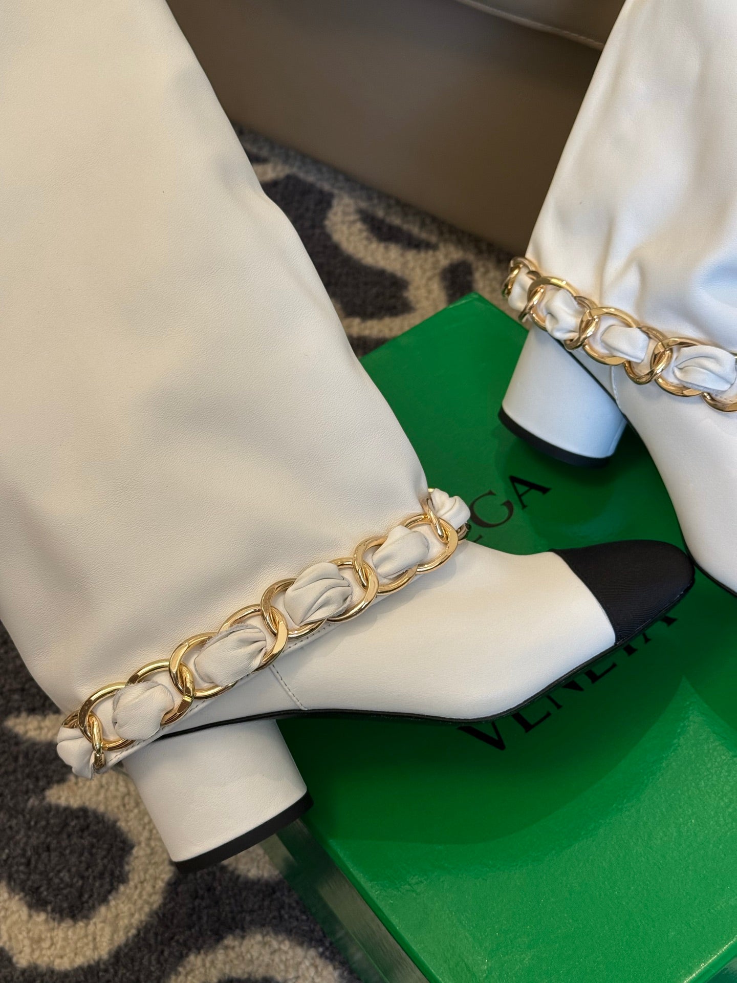short boots white black knit patent calfskin