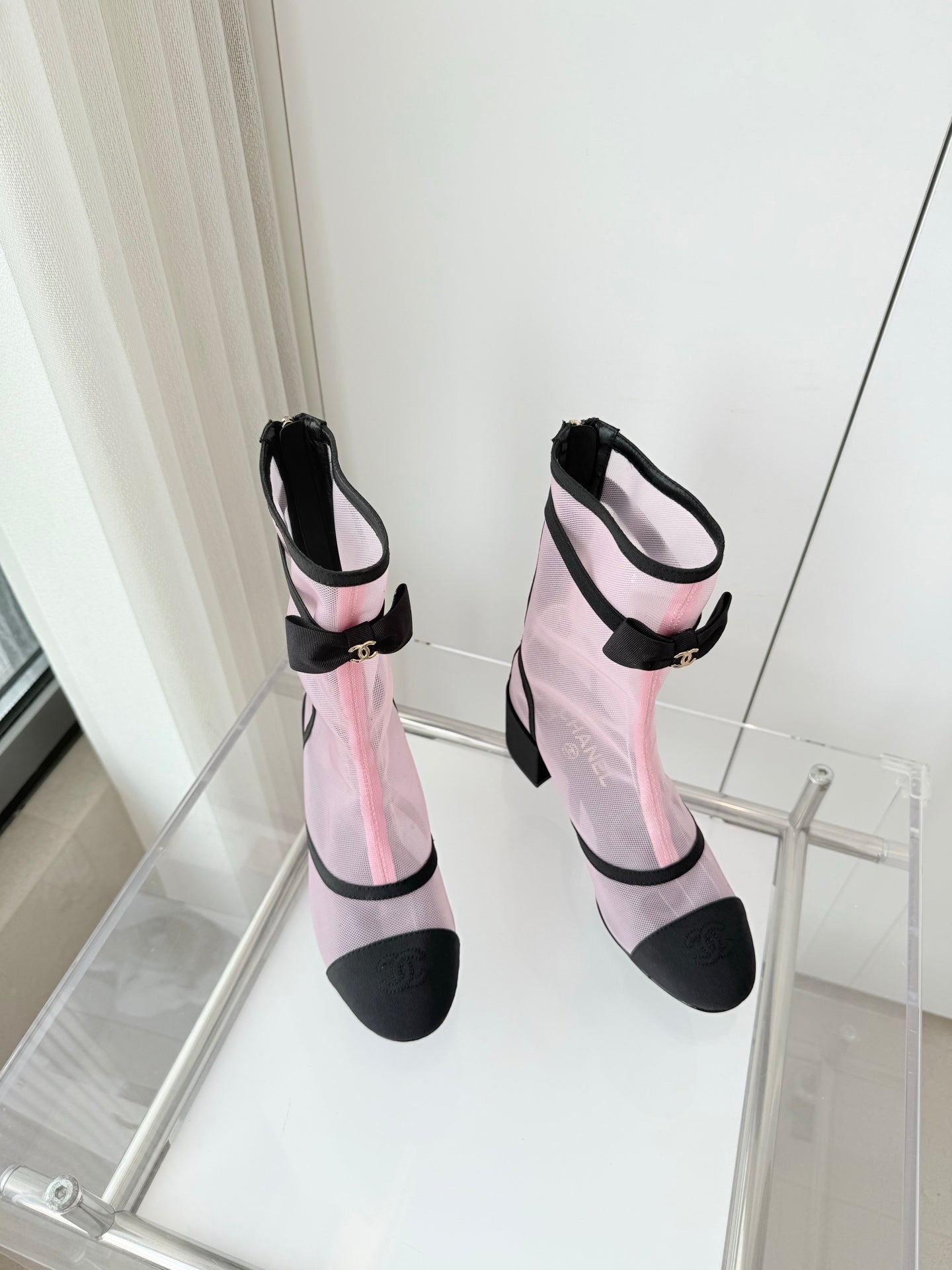 CC 25 Short Boot Light Pink Mesh Black Bow 430321