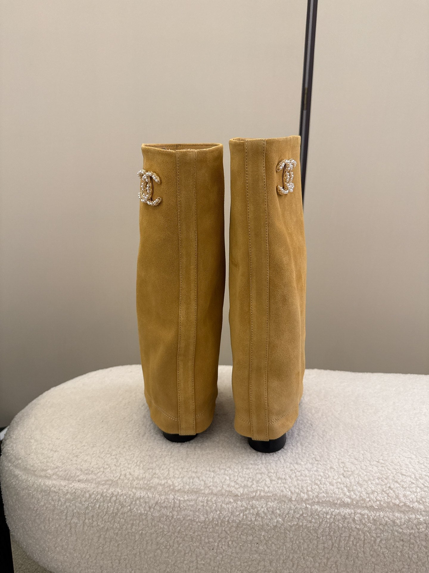 Chanel 25 Double C Giant Pearl Heel Long Boot Beige Black Sheepskin 465411