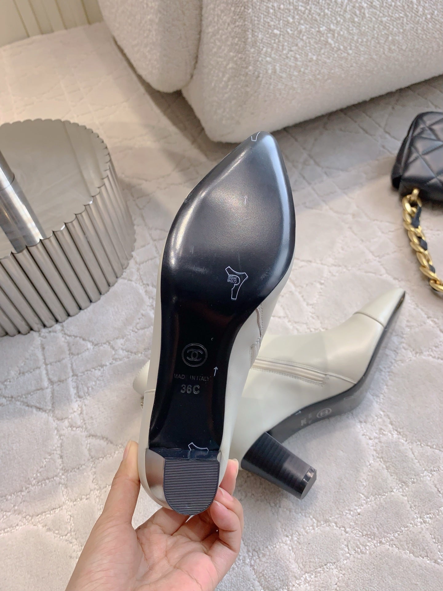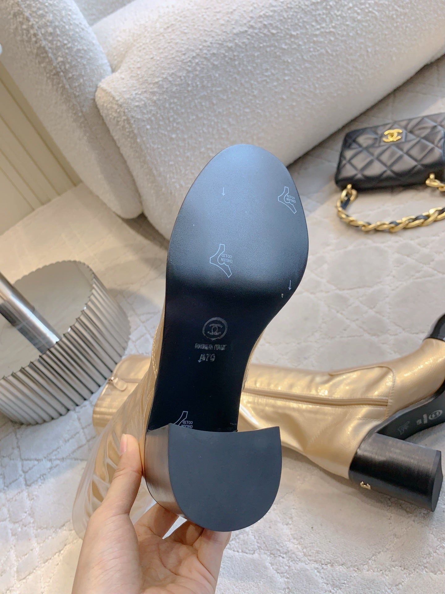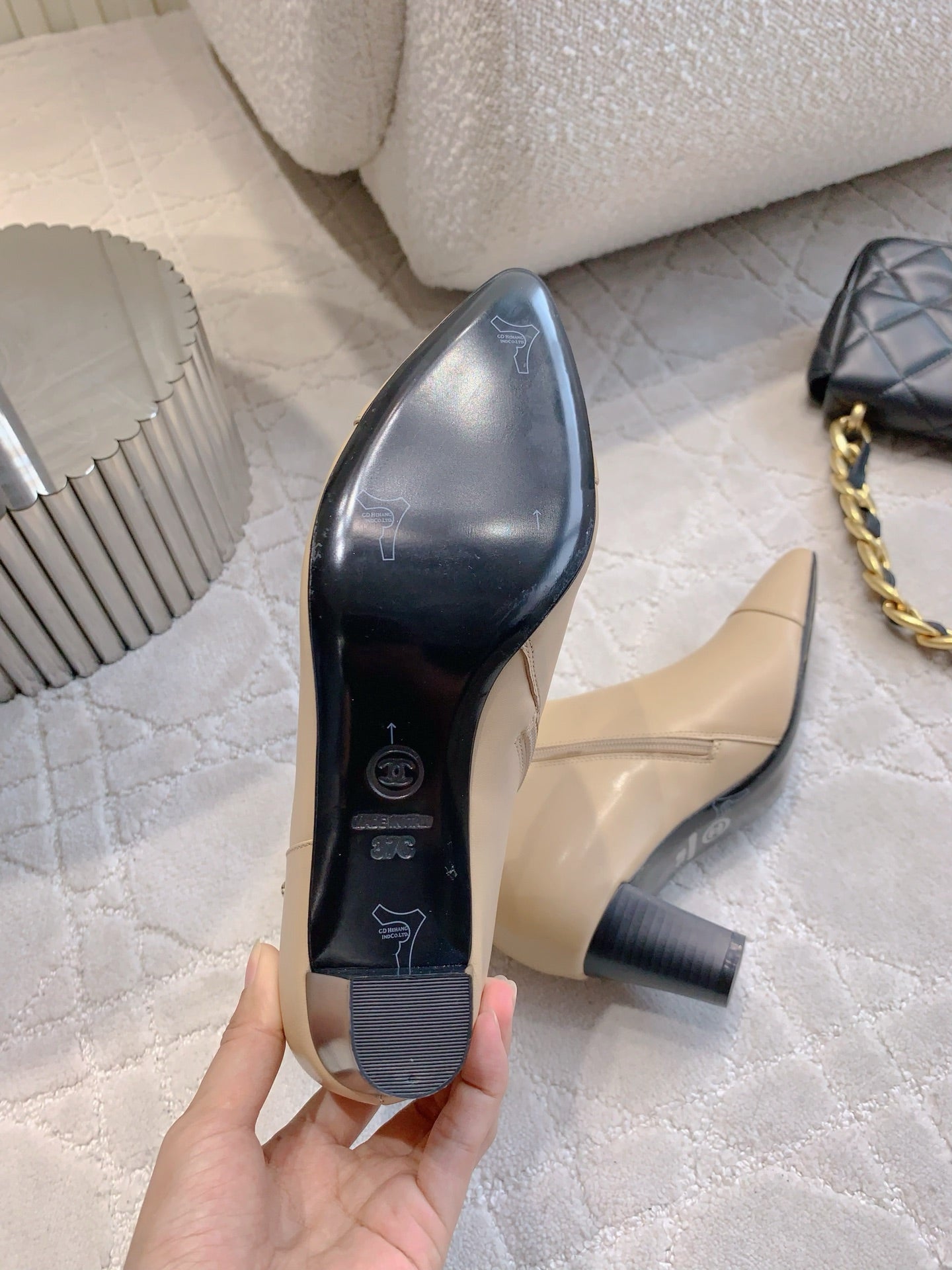 CC 25 Pearl Heel Boot Beige Calfskin 516655