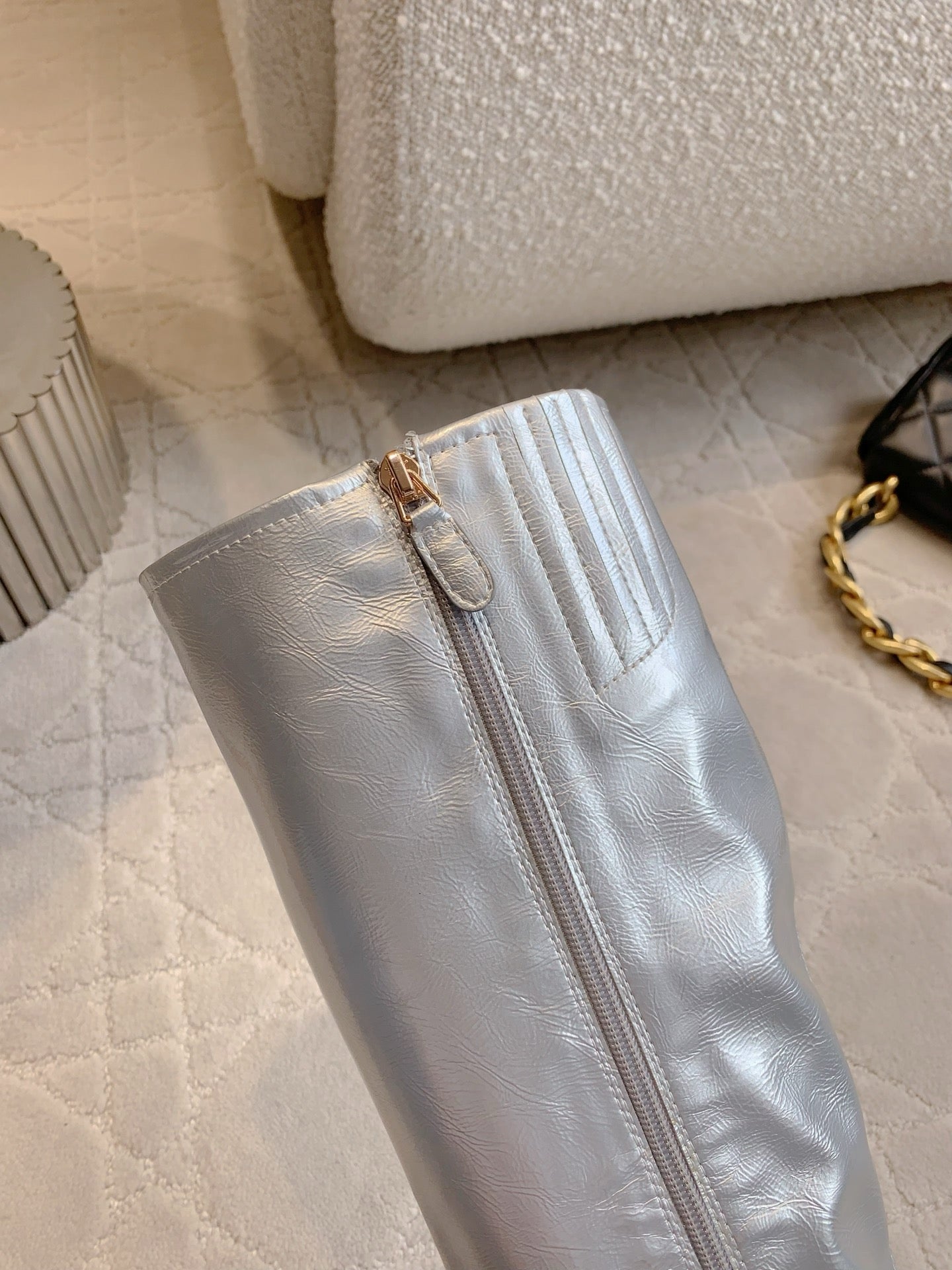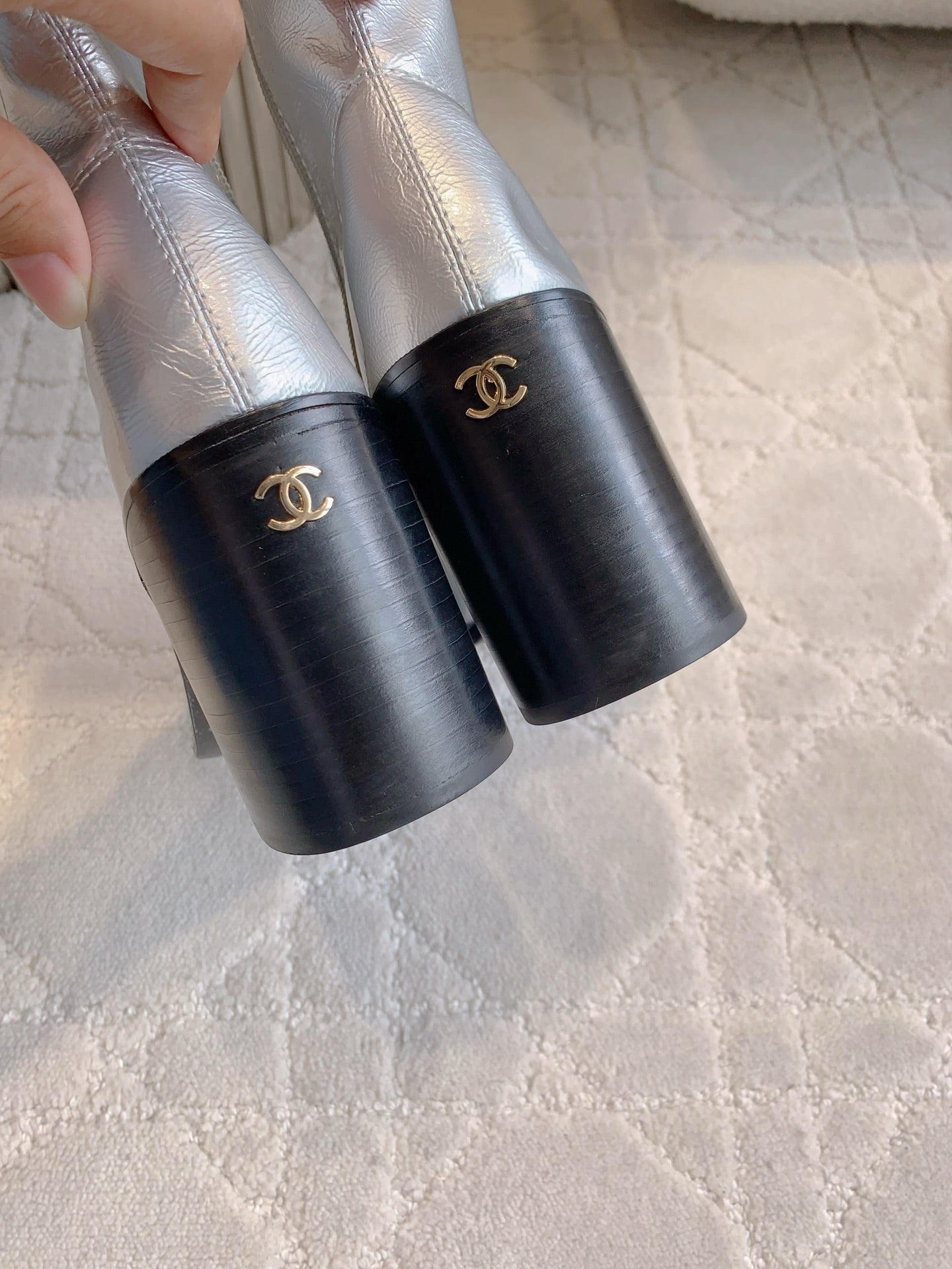 CC 25 Heeled Long Boot Silver mix Black Patent Leather 516680