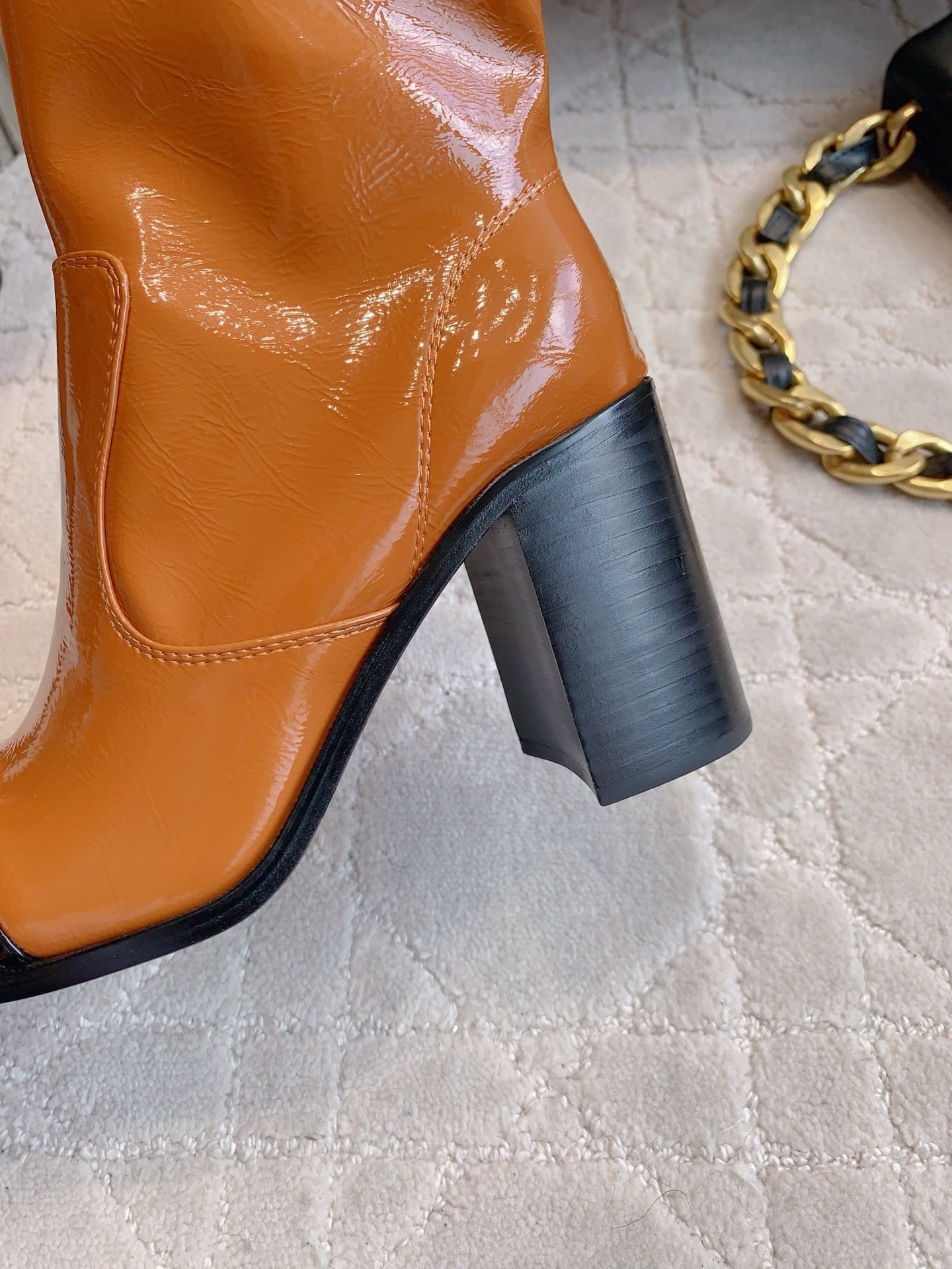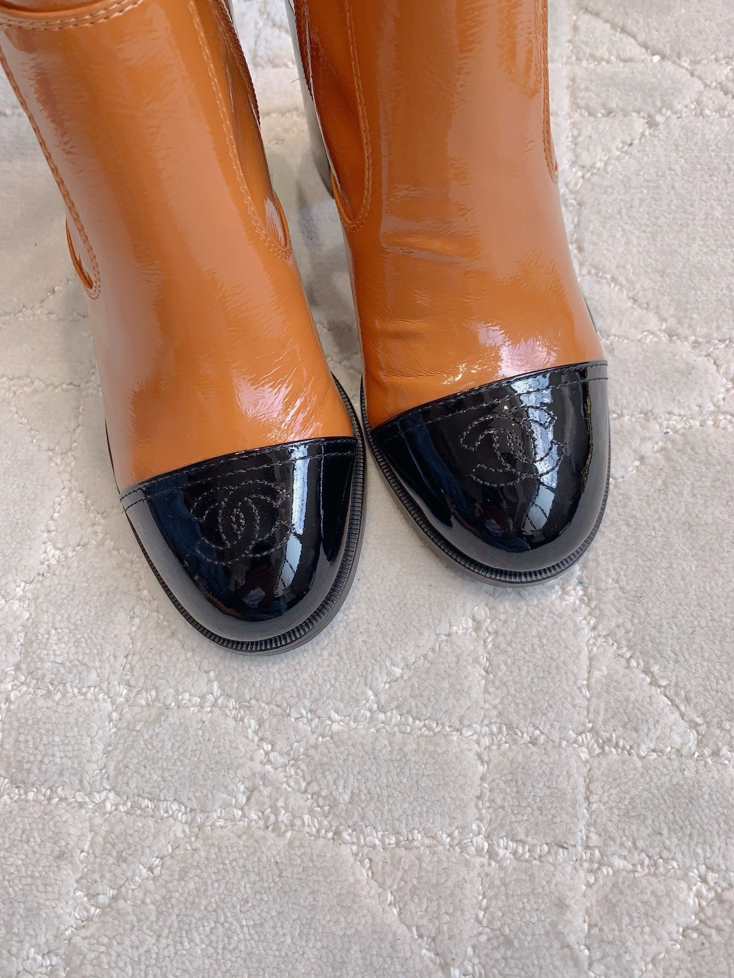 CC 25 Heeled Long Boot Caramel Brown mix Black Patent Leather 516682