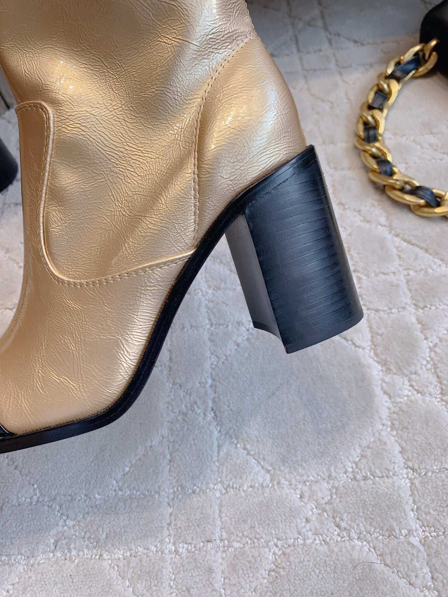 CC 25 Heeled Long Boot Light Gold mix Black Patent Leather 516681