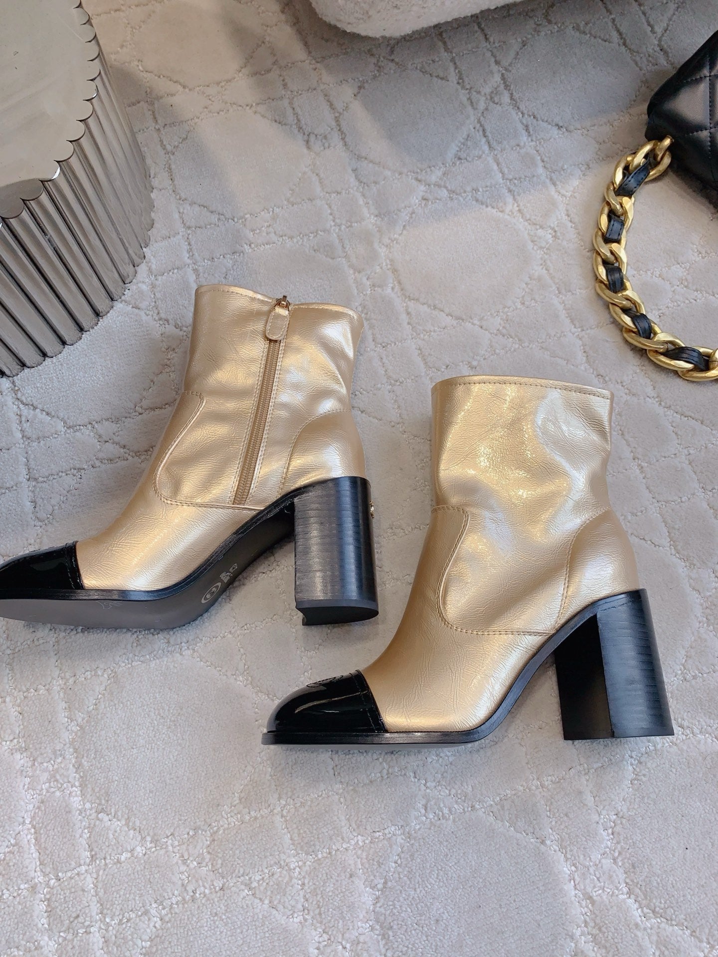 CC 25 Heeled Short Boot Light Gold mix Black Patent Leather 516677