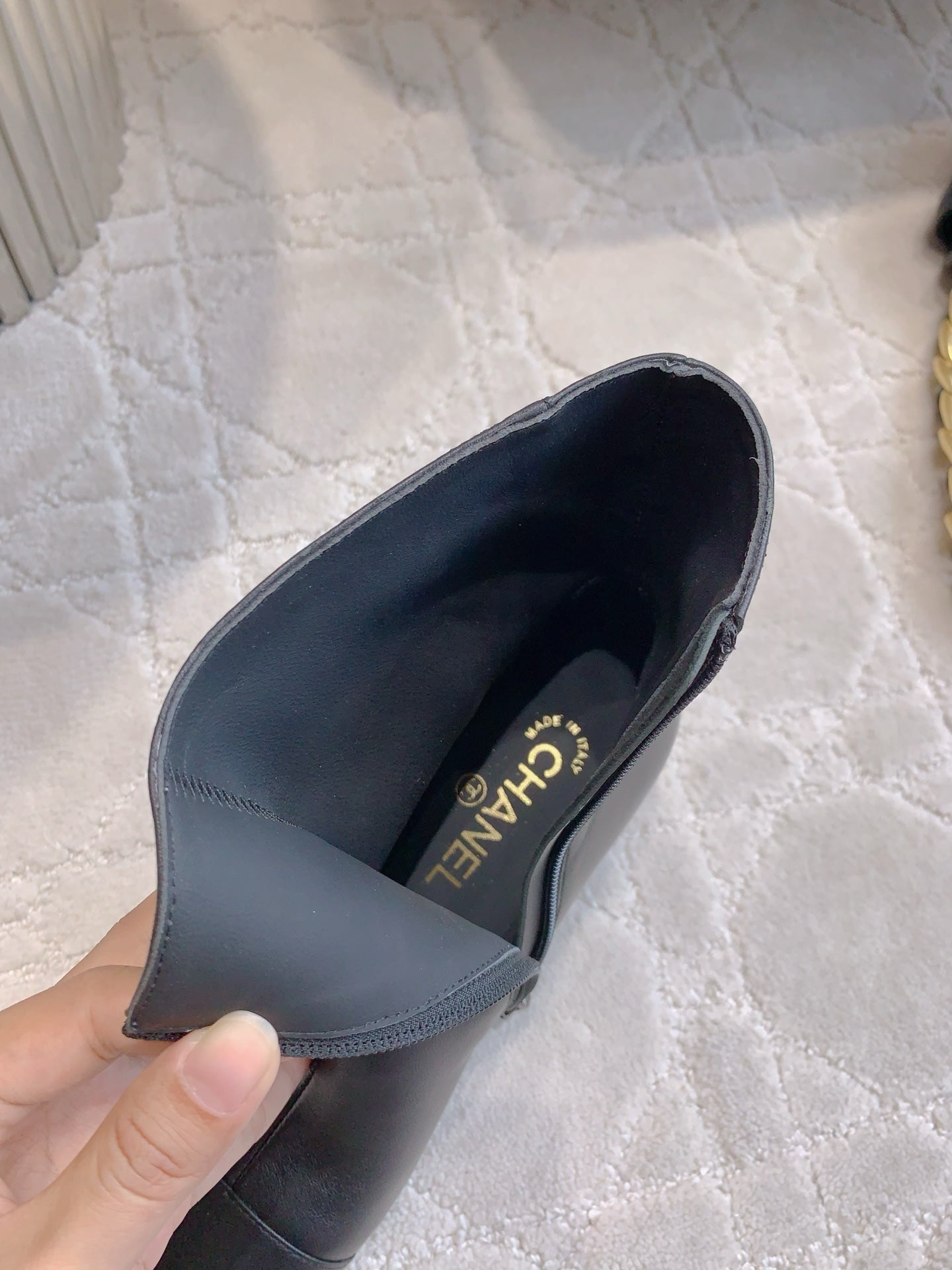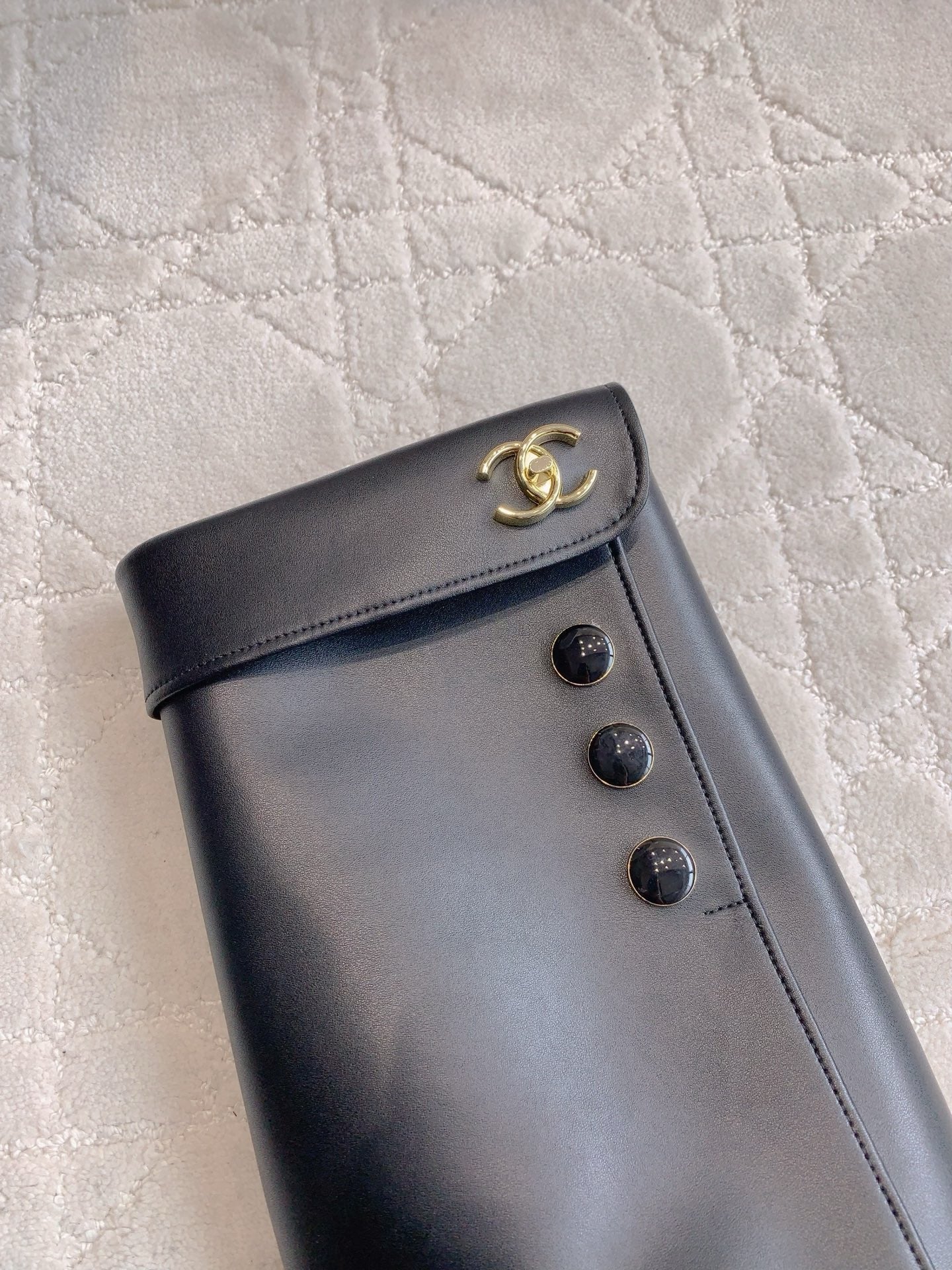 CC 25 Pearl Heel Boot Black Calfskin 516653