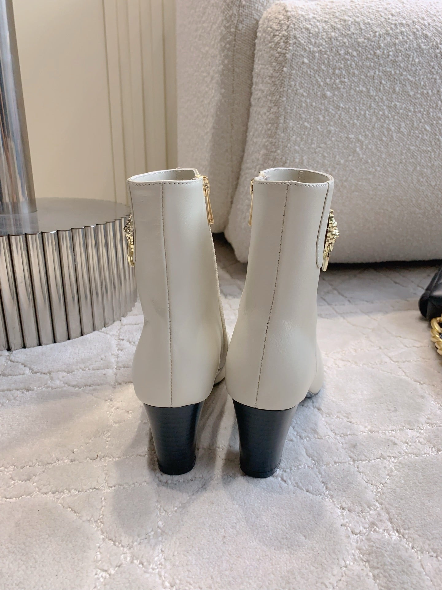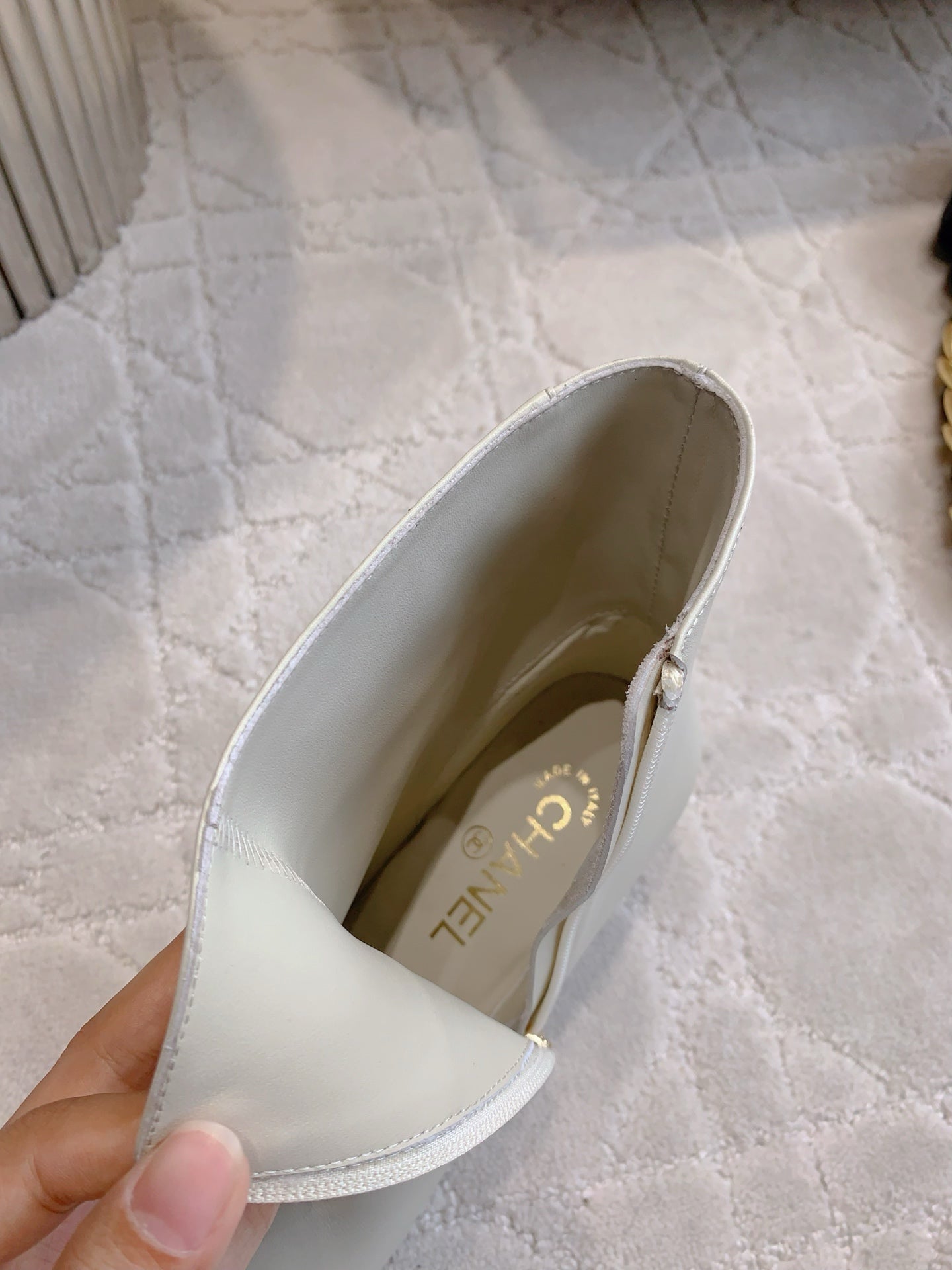 CC 25 Chunky High-heeled Ankle Boots White Calfskin 516658