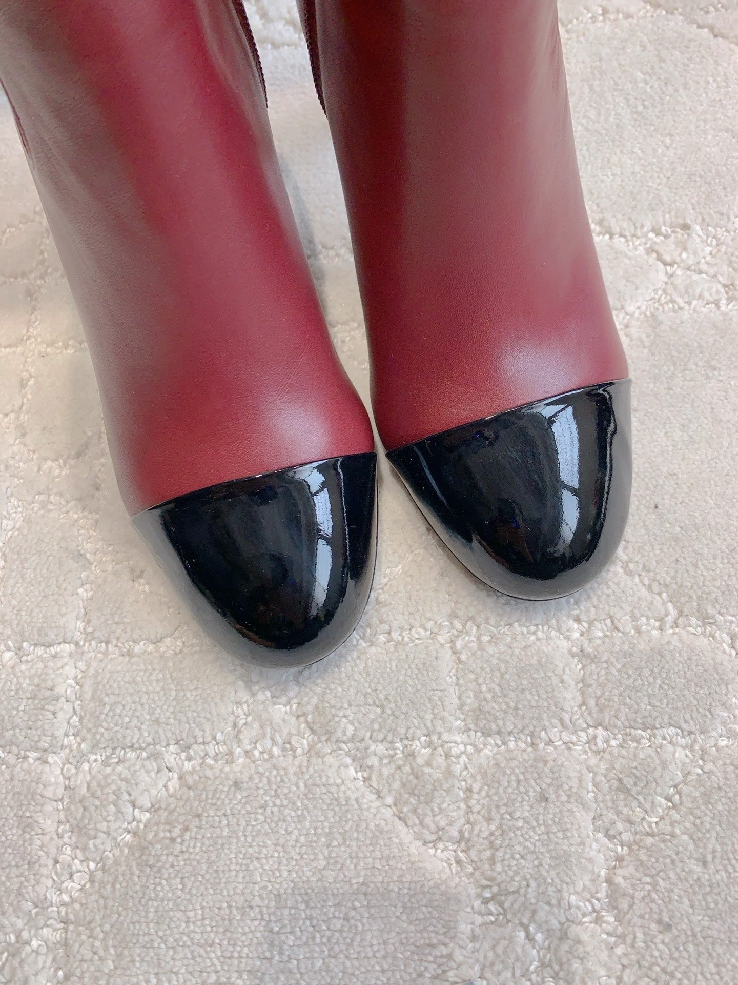 CC 25 Pearl Heel Boot Burgundy Black Calfskin 516654
