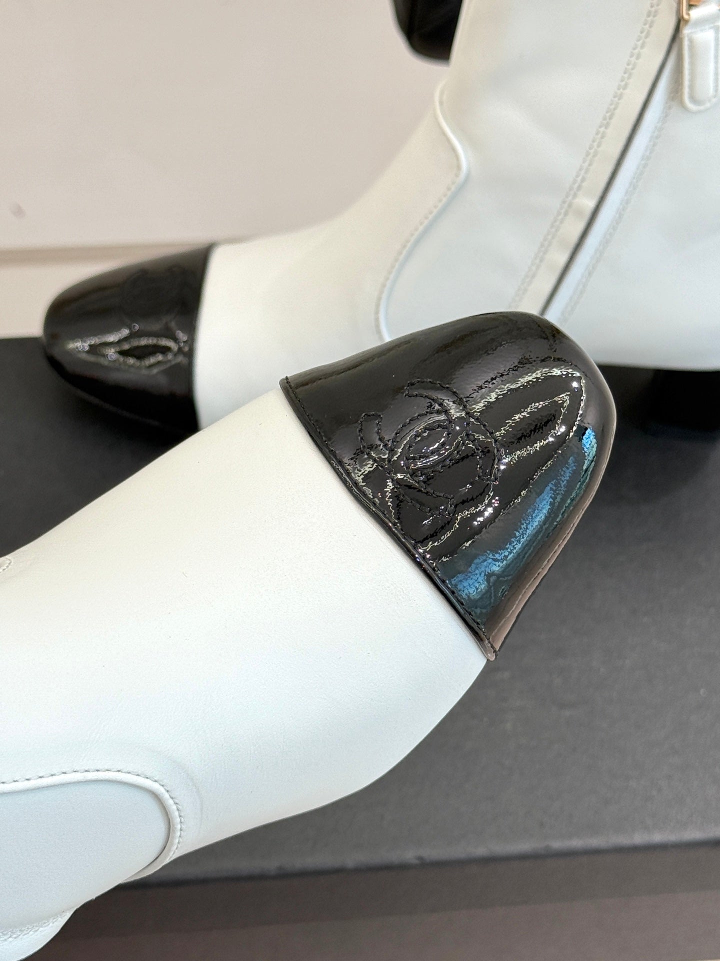 Chanel Double C Colorblock Heel Boot White Sheepskin 465415