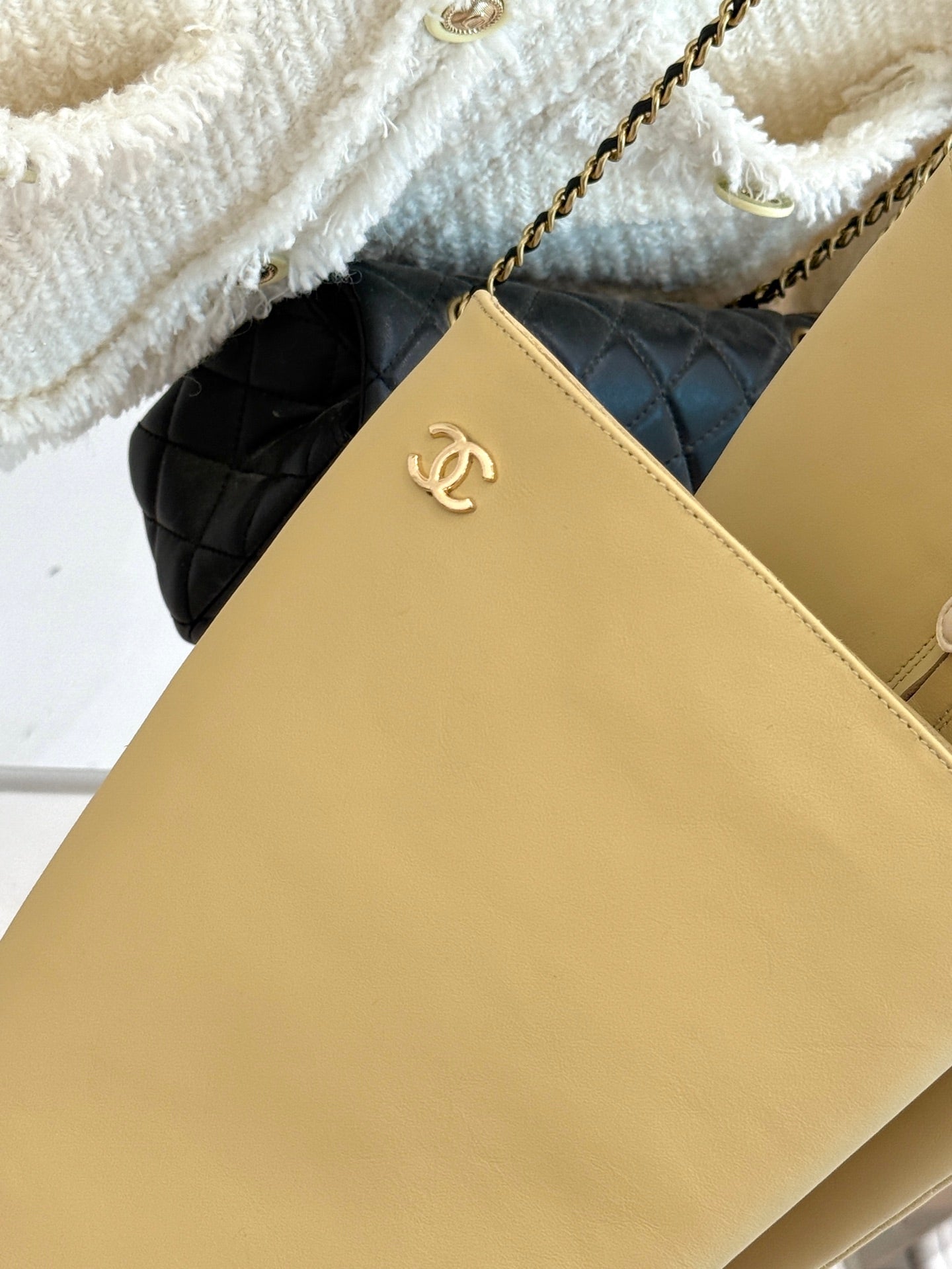 Chanel 25 Large Chain Flat-solved Boot Beige Black Lambskin 465421