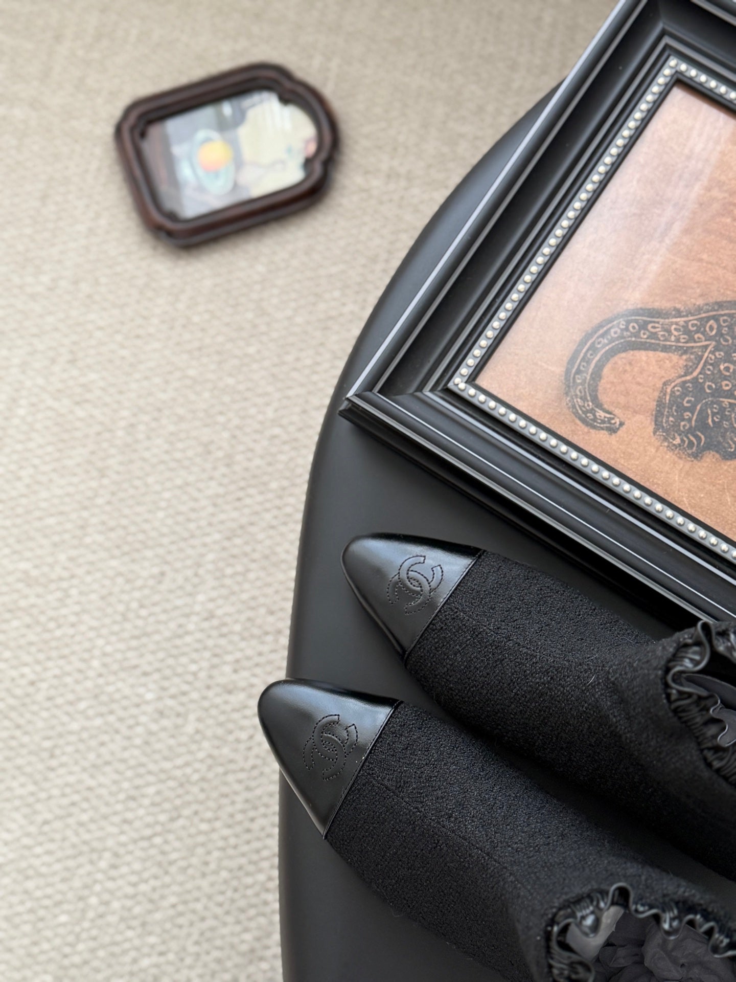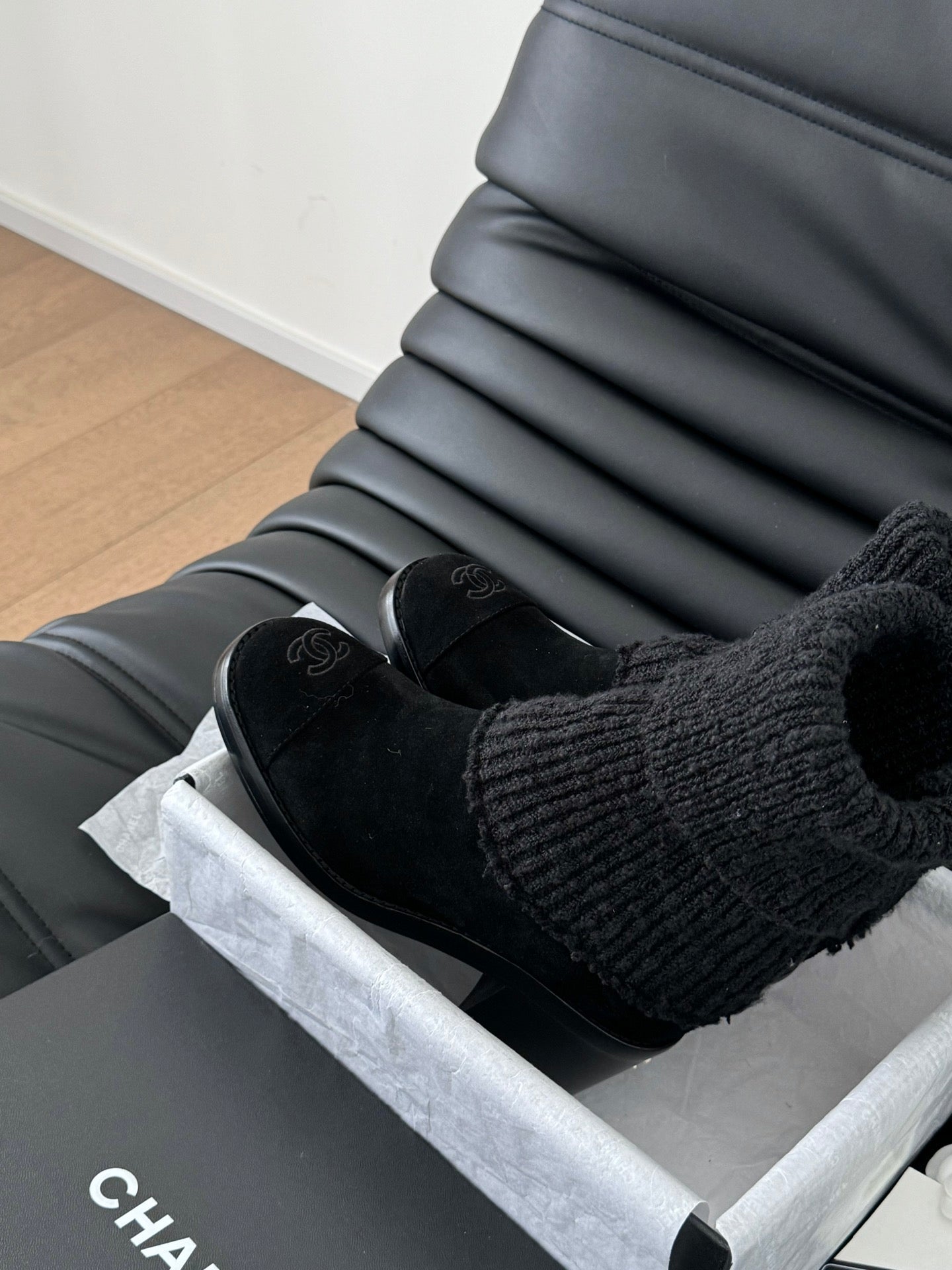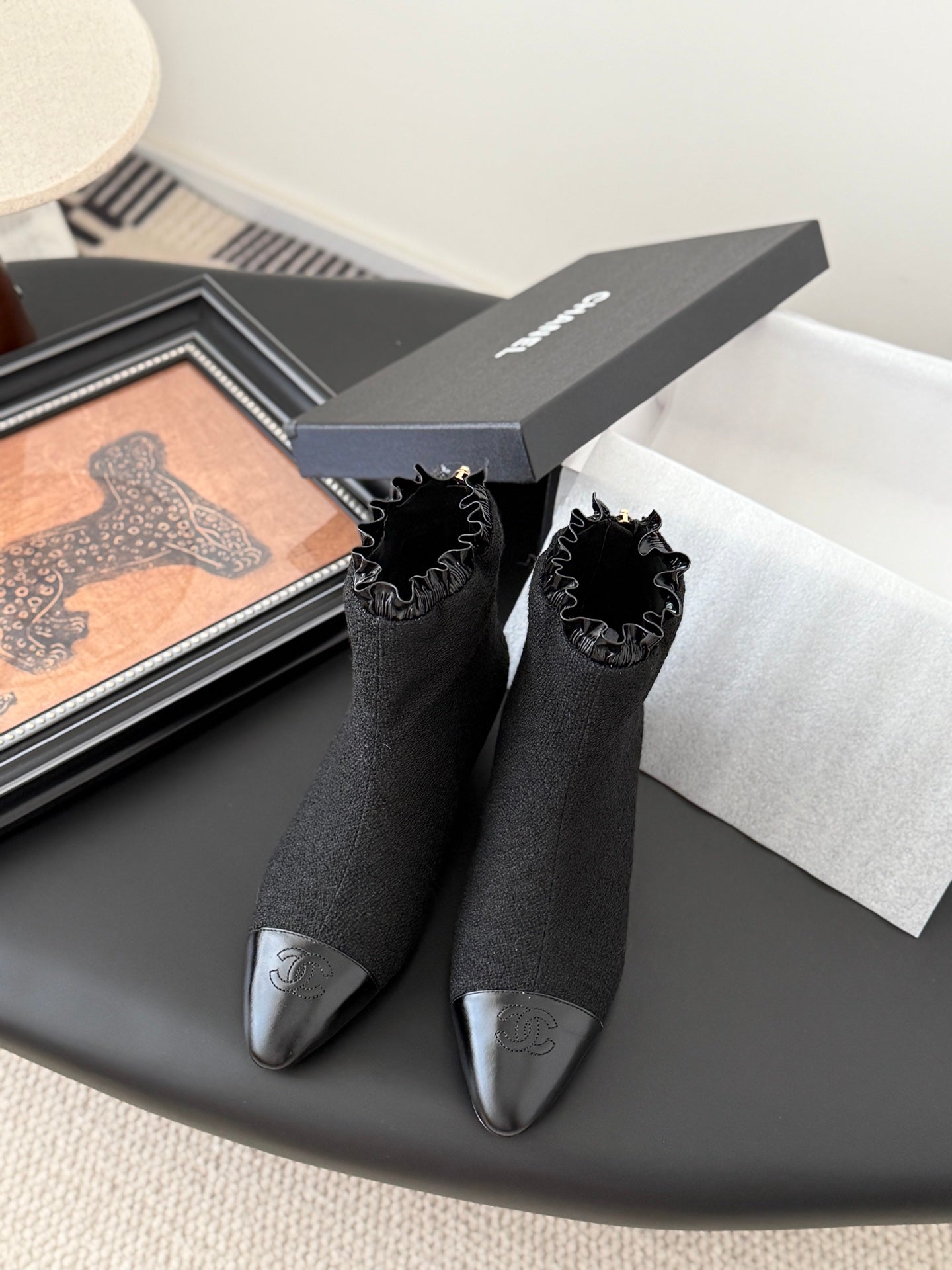 Chanel Double C Colorblock Heel Boot Black Sheepskin 465416