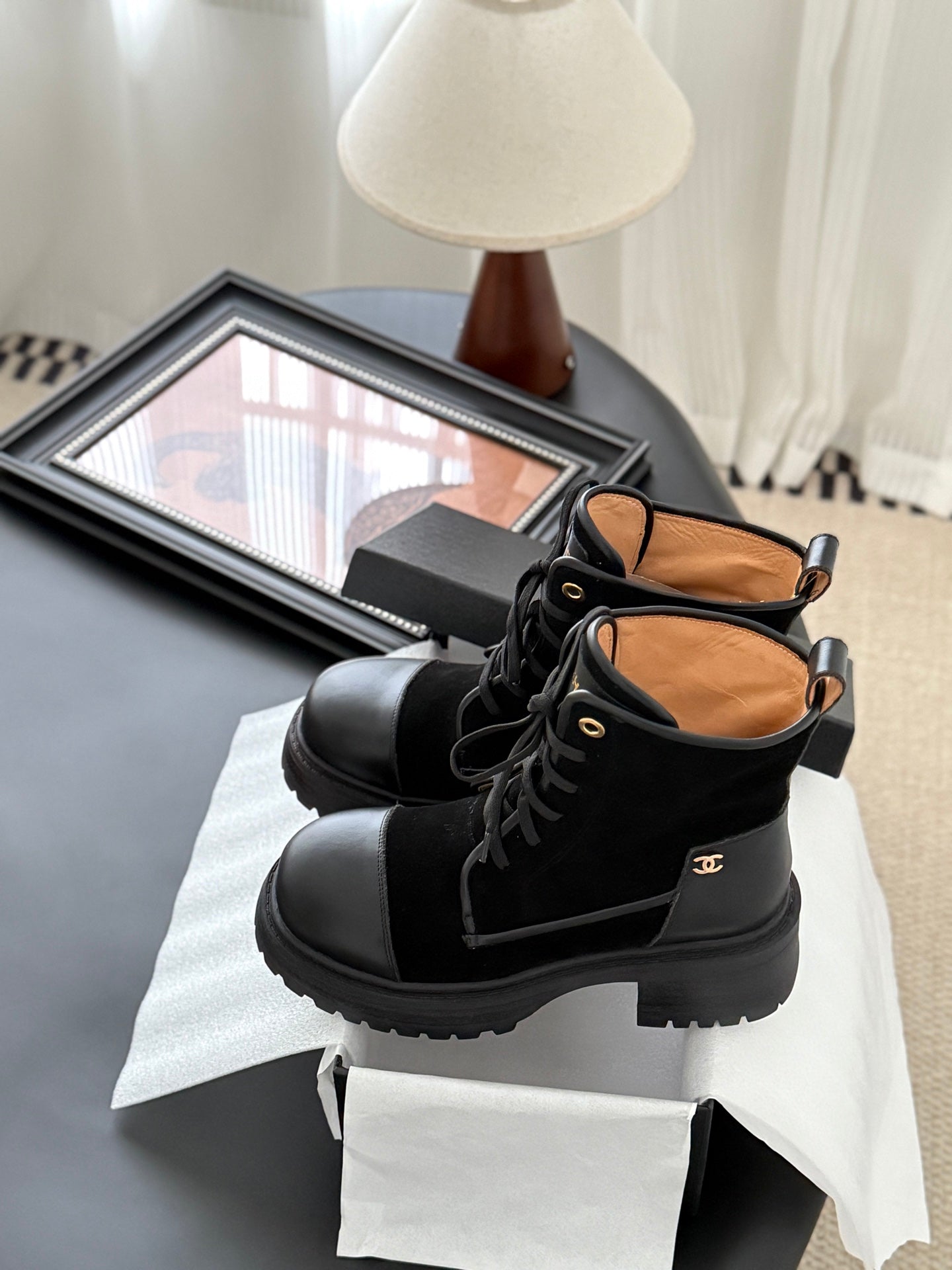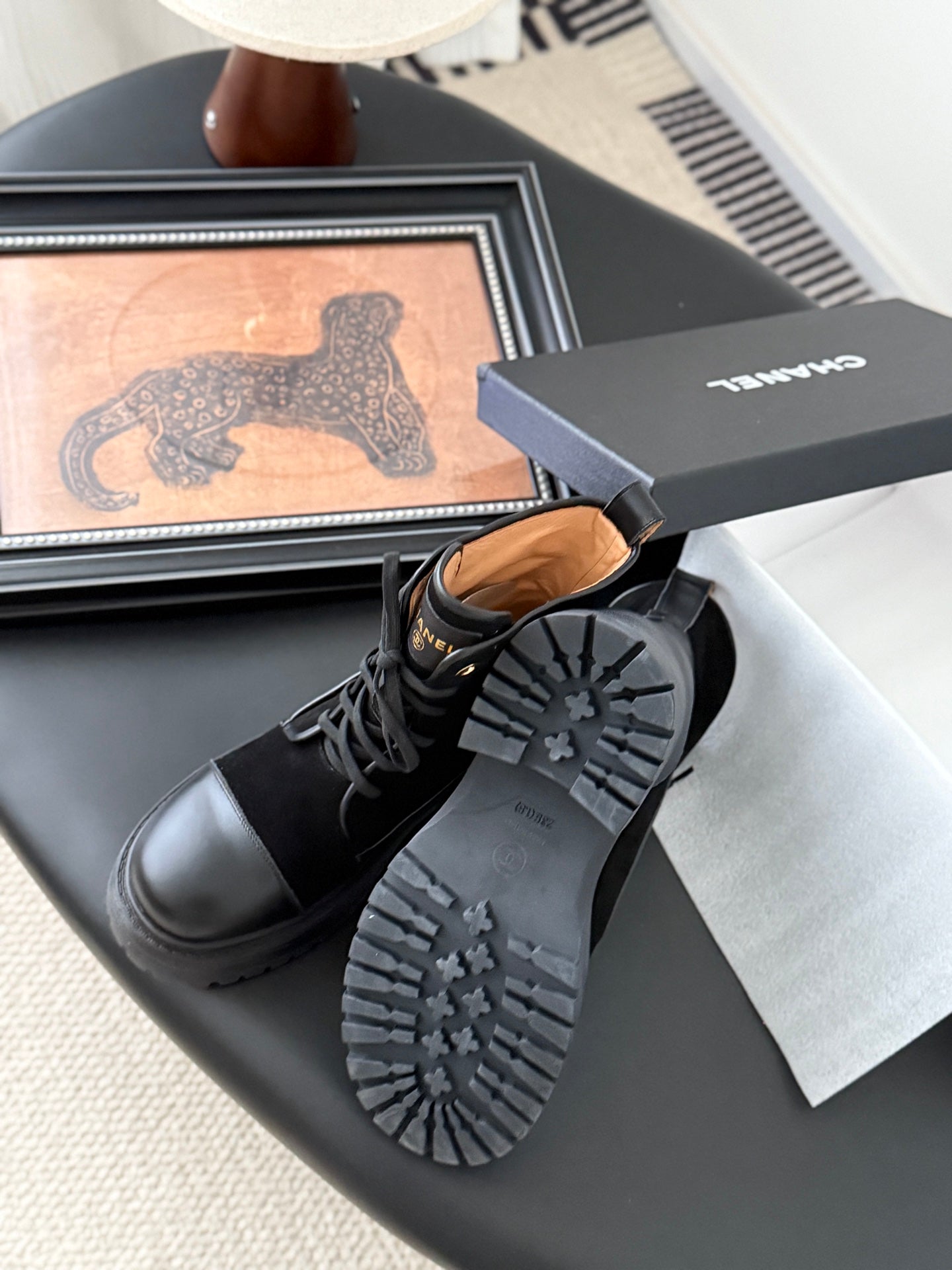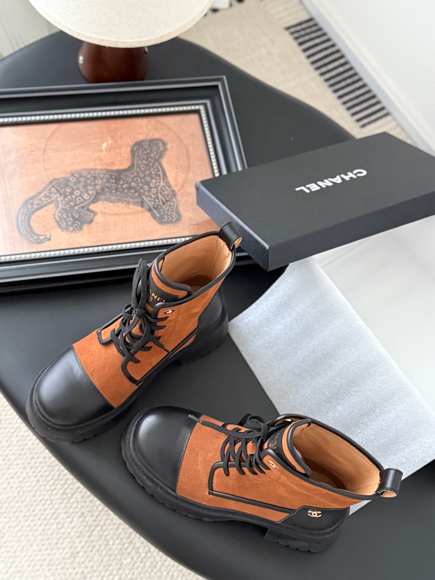 Chanel Boot 25 Beige mix Black Cowhide Suede 175368